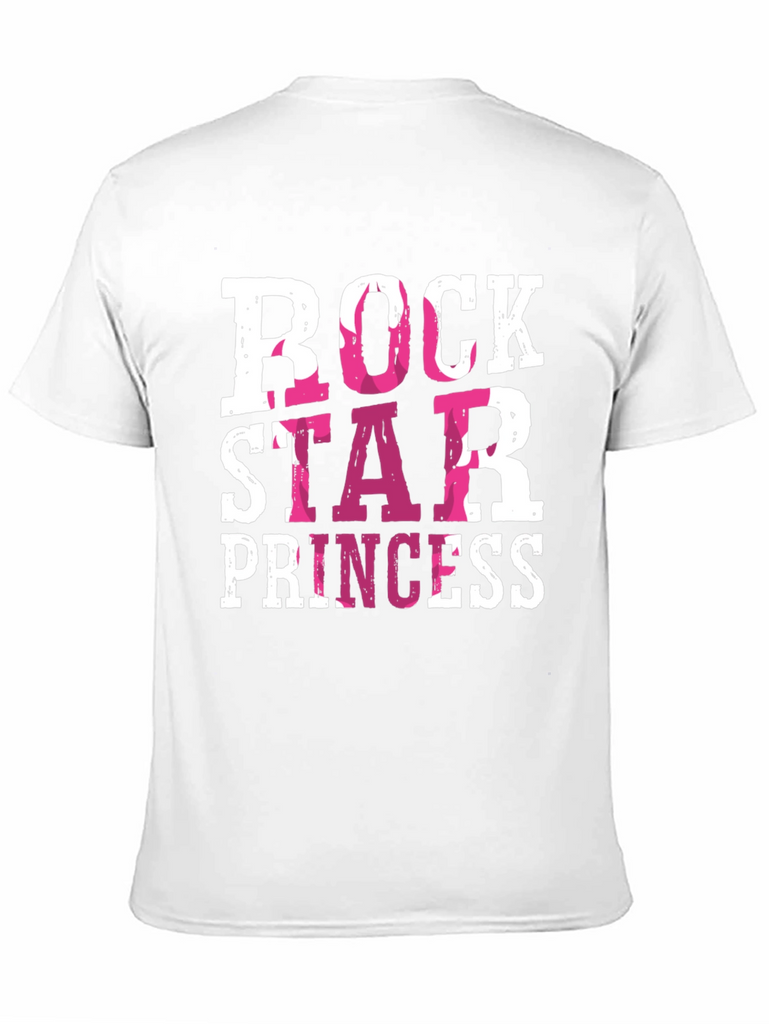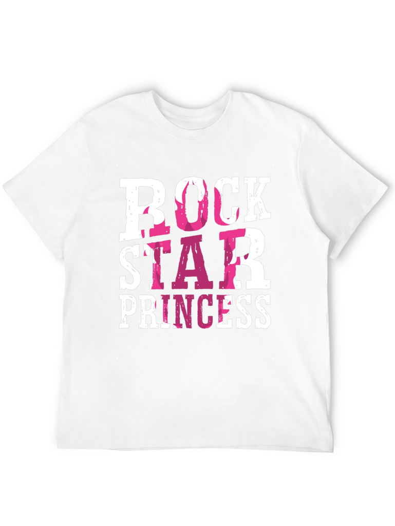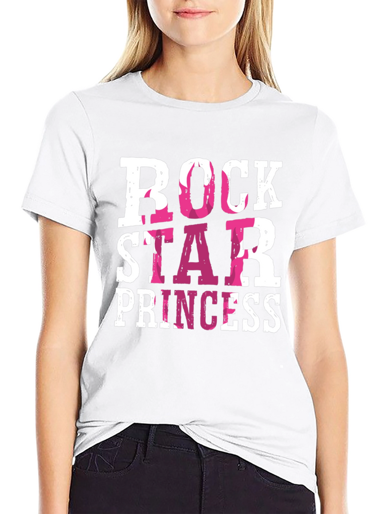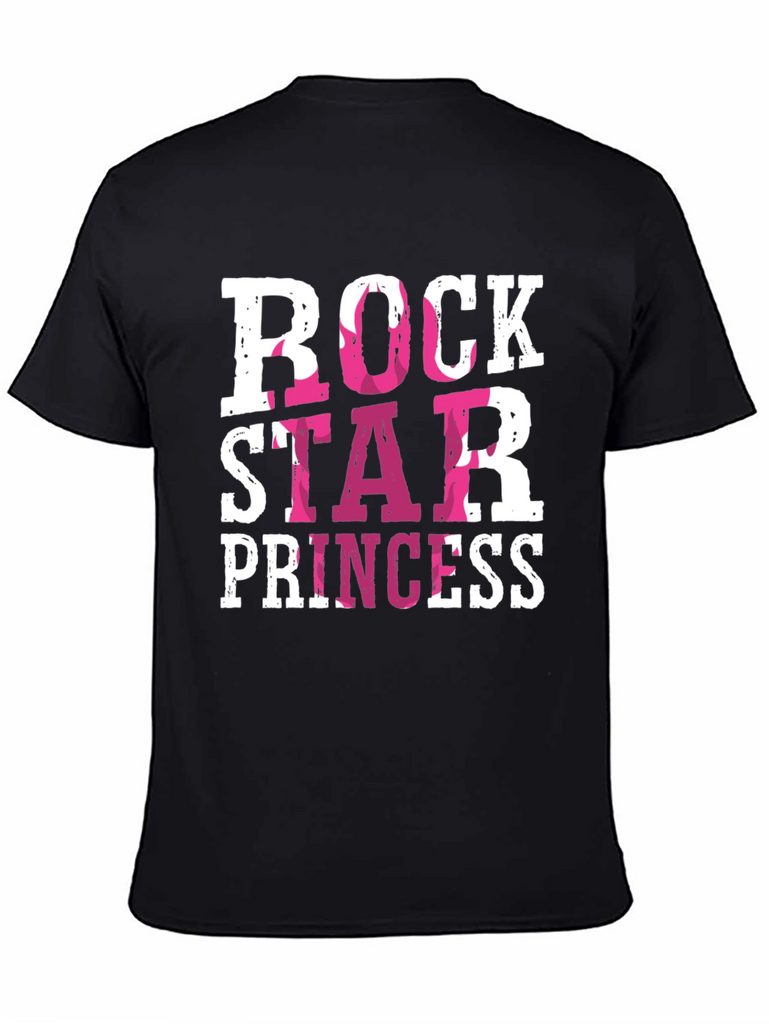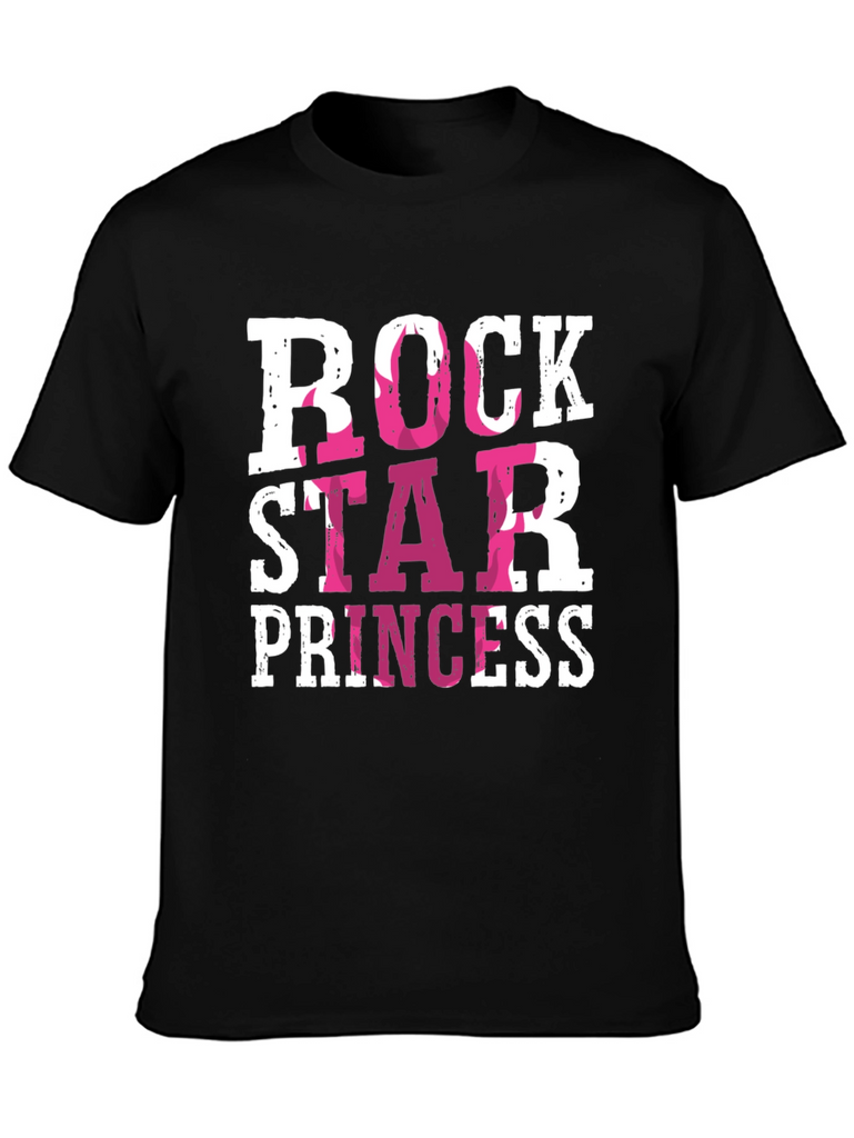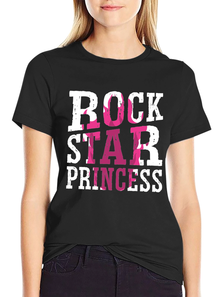 Show off your inner rocker and princess with this stylish black graphic T-shirt. Featuring bold lettering in distressed white and pink, the design reads "Rock Star Princess." The shirt appears to be made from a soft, comfortable material, perfect for everyday wear. It has a classic crew neck and short sleeves. Ideal for casual outings, concerts, or lounging at home. Let your unique personality shine with this trendy and comfortable T-shirt!