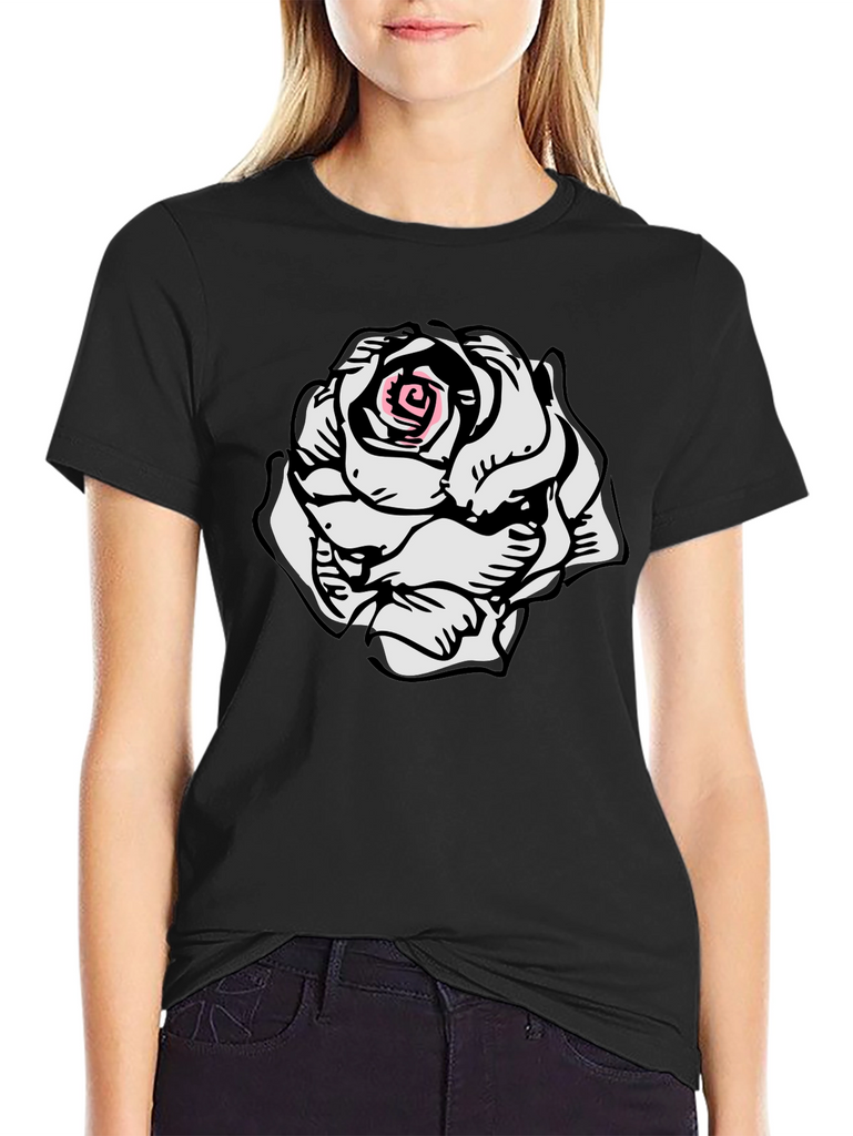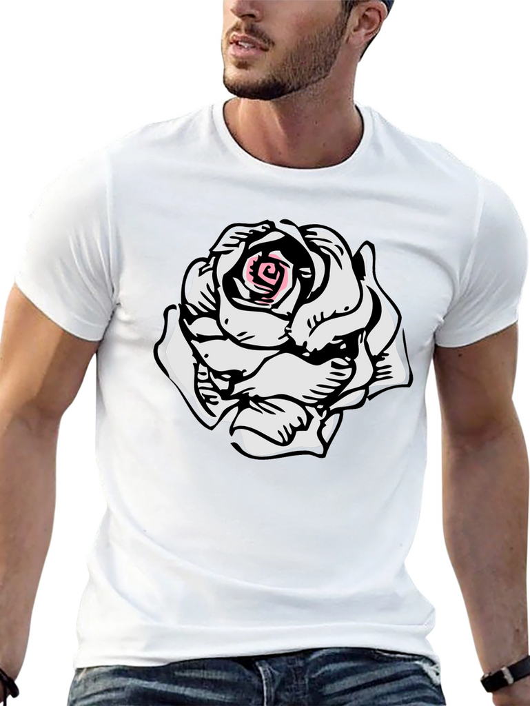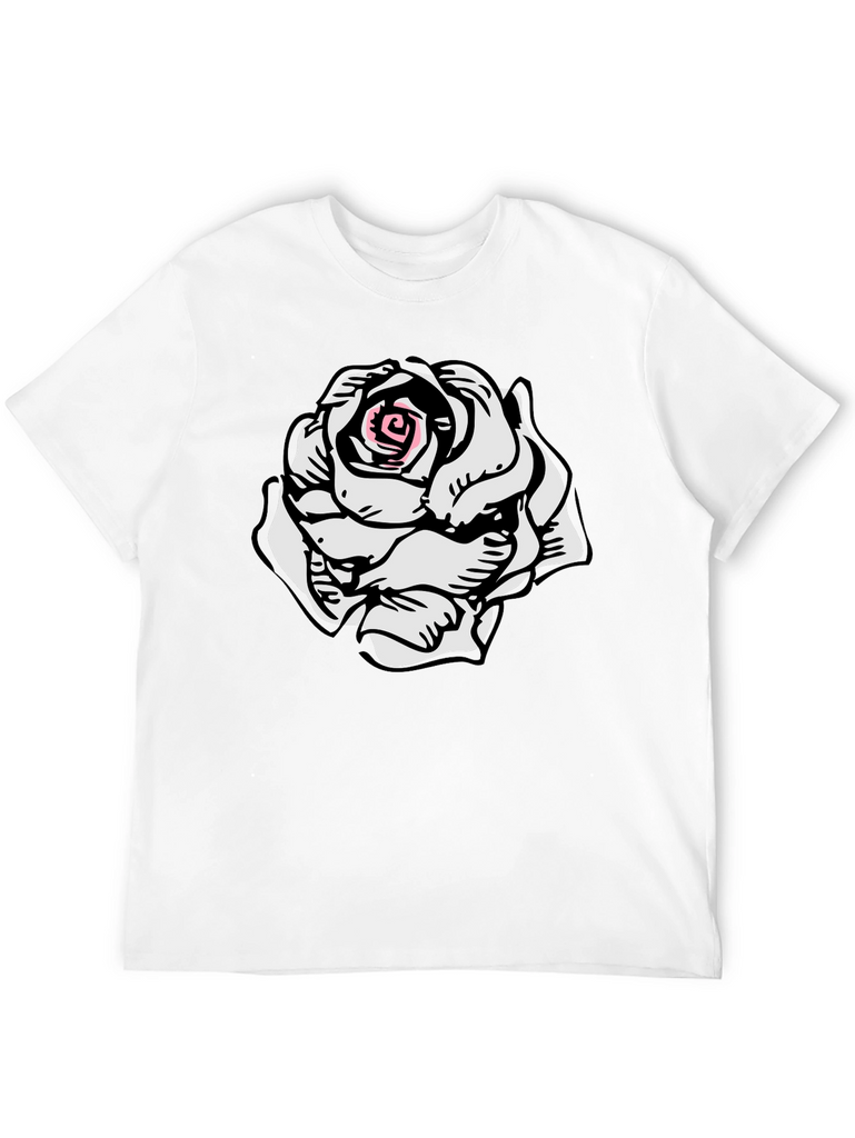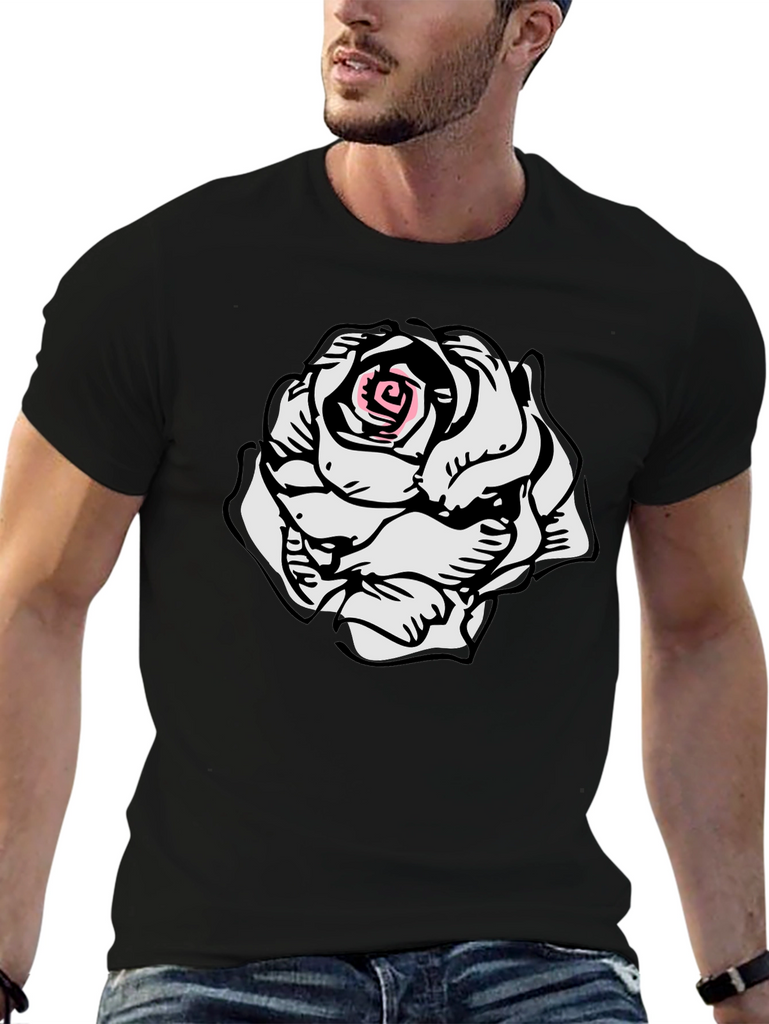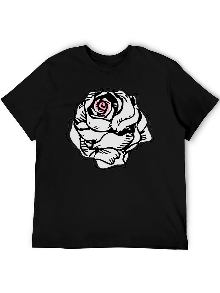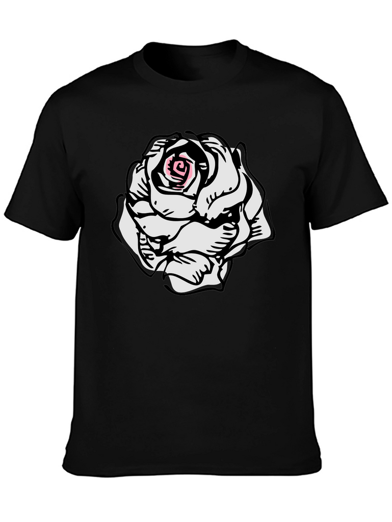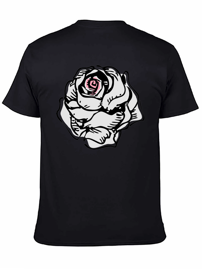 Showcase your style with this eye-catching black t-shirt featuring a bold rose graphic. The design is a unique blend of artistry and casual wear, making it a great fit for everyday style. Made from soft, breathable cotton, this tee ensures both comfort and durability. The contrasting design makes this piece stand out, perfect for adding an edgy touch to any outfit. Ideal for casual outings, concerts, or simply lounging around. Pair it with jeans, shorts, or a jacket for a variety of looks. Make a statement with this standout piece!