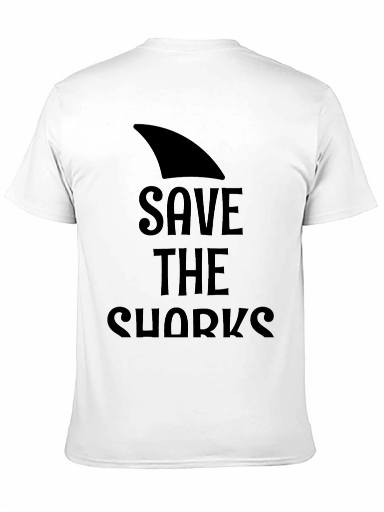 Show your support for marine conservation with this stylish black T-shirt. Featuring a bold 'Save the Sharks' graphic, this tee is perfect for ocean lovers. The design includes a stylized shark fin silhouette, adding a touch of visual appeal. Made from comfortable, breathable material, this shirt is ideal for everyday wear. Whether you're heading to the beach, running errands, or simply relaxing at home, this T-shirt allows you to make a statement while staying comfortable. Its classic fit makes it a versatile addition to any wardrobe. Support shark conservation and look good doing it!
