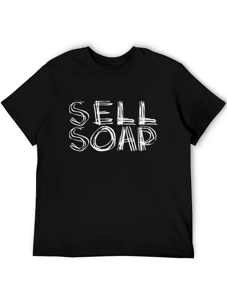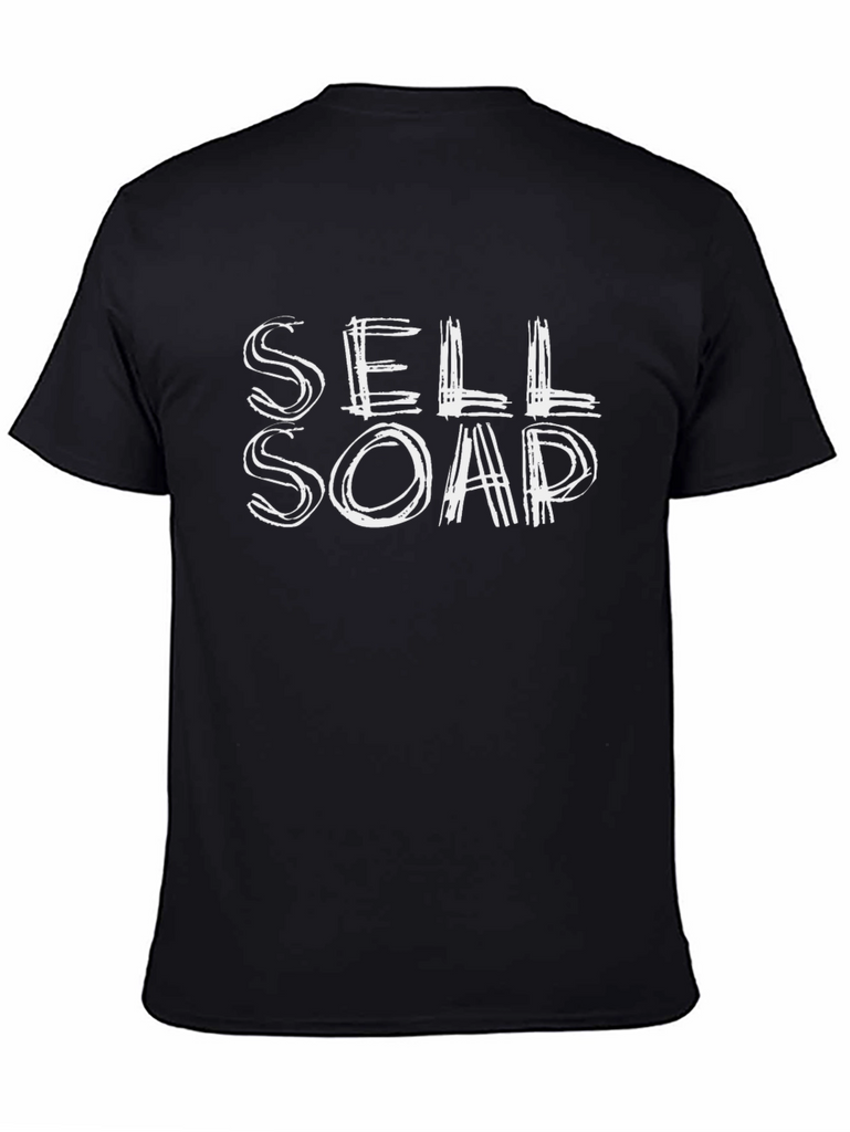 Make a statement with this bold, black t-shirt featuring the witty slogan "SELL SOAP" in a distressed, white font. The eye-catching design is sure to spark conversations and add a touch of humor to your wardrobe. Made from a soft and comfortable fabric, this tee is perfect for casual wear, workouts, or even a fun night out. Pair it with jeans, shorts, or your favorite joggers for a relaxed and stylish look. Show off your quirky side and grab this tee today!
