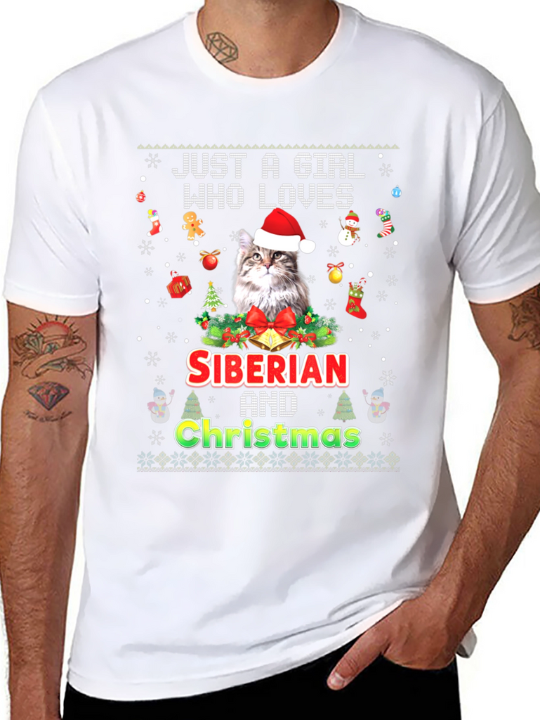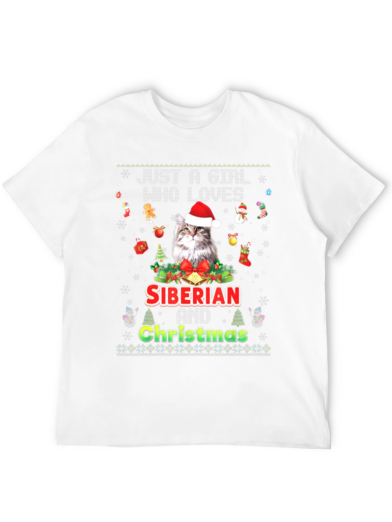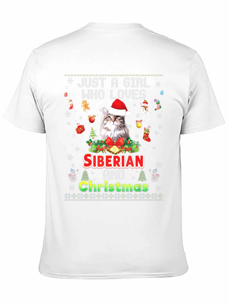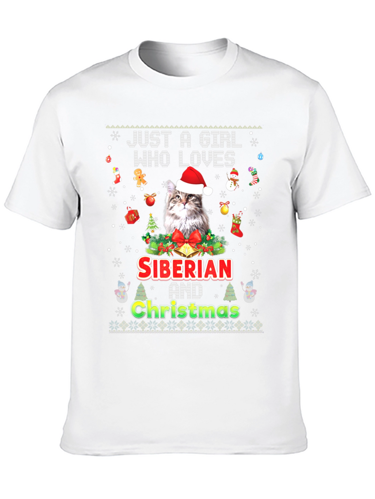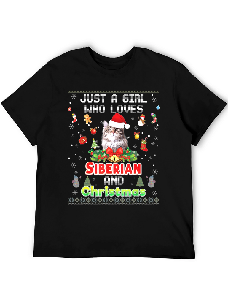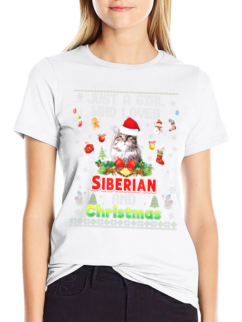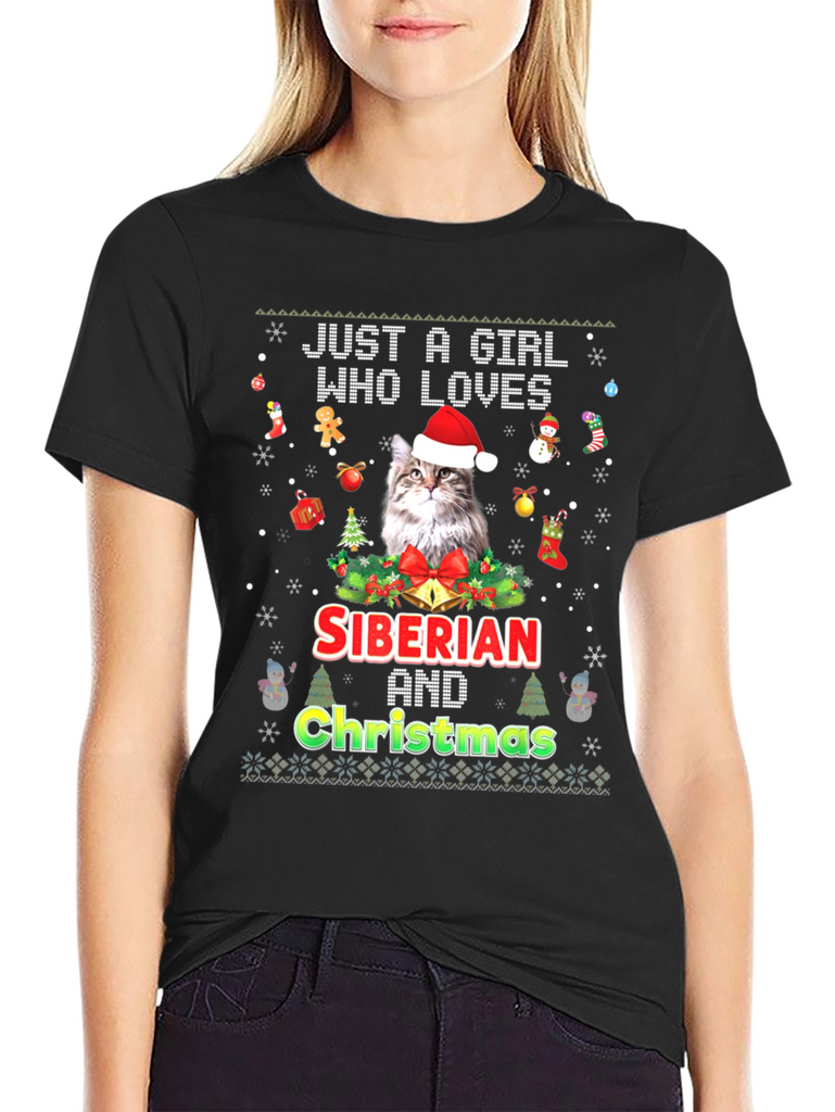 Get festive with this unique "Just a Girl Who Loves Siberian Cats and Christmas" themed T-shirt! This black tee features a cheerful holiday design, complete with a Siberian cat wearing a Santa hat, Christmas ornaments, and decorative elements. Perfect for Siberian cat lovers and Christmas enthusiasts alike. Made from comfortable materials, this t-shirt is ideal for holiday parties, family gatherings, or simply spreading Christmas cheer. A must-have for anyone who wants to showcase their love for their furry friend and the holiday season.