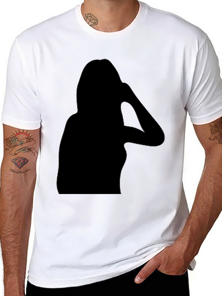 Show off your unique style with this eye-catching black t-shirt. Featuring a bold silhouette graphic, this tee is perfect for making a statement. The solid black color provides a versatile backdrop, allowing the design to truly stand out. Made from comfortable, breathable fabric, this t-shirt is ideal for everyday wear. Dress it up with jeans and a jacket for a night out, or keep it casual with shorts for a relaxed weekend look. This stylish graphic tee is a must-have addition to any wardrobe.