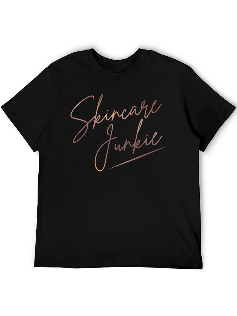 Show off your love for skincare with this stylish black graphic tee! This short-sleeved t-shirt features a rose gold-colored 'Skincare Junkie' design, perfect for casual wear or a fun statement piece. The shirt appears to be made from a comfortable, breathable material, ensuring all-day comfort. Ideal for skincare enthusiasts, beauty bloggers, or anyone who loves a good self-care day. Pair it with jeans, shorts, or leggings for a relaxed, effortless look. A must-have addition to any skincare lover's wardrobe!