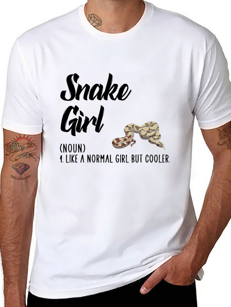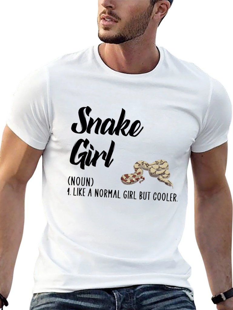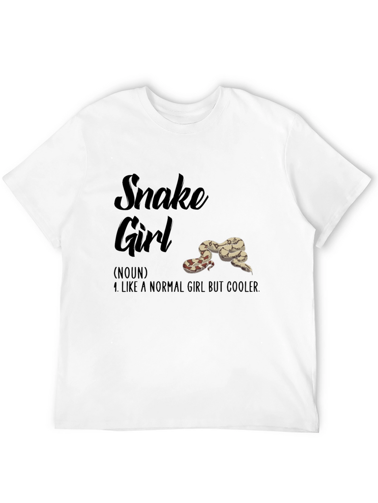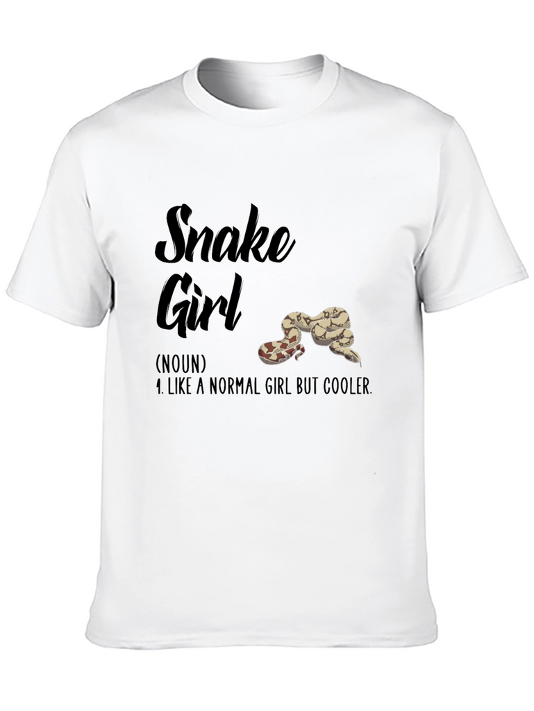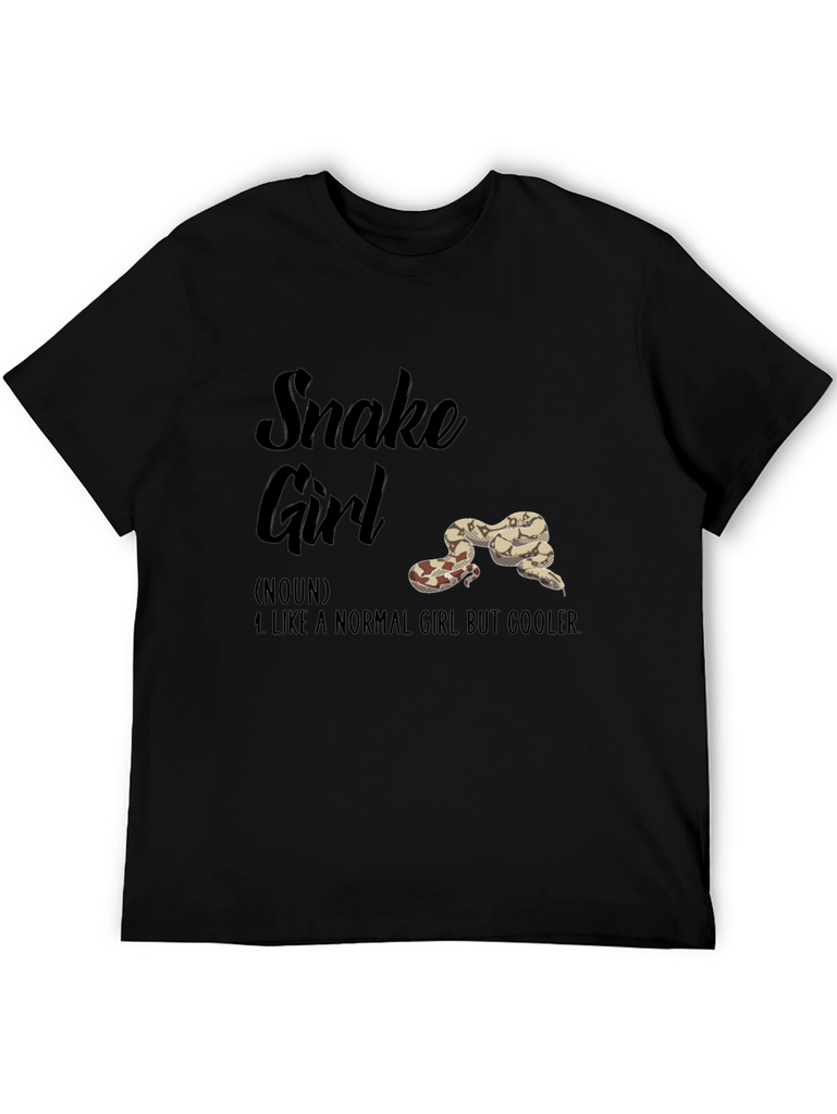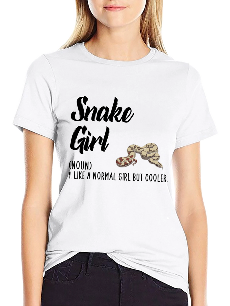 Show off your love for snakes with this unique "Snake Girl" t-shirt. Made from a comfortable, breathable fabric, this black tee features a playful graphic with the words "Snake Girl" in a stylish font, followed by a humorous definition. The design includes an illustration of a beautiful snake, adding a touch of cool to your wardrobe. Perfect for casual wear, reptile enthusiasts, or anyone with a quirky sense of humor, this t-shirt is sure to be a conversation starter. Whether you're heading to a reptile expo or just hanging out with friends, this tee is the perfect way to express your unique personality and love for all things serpentine.