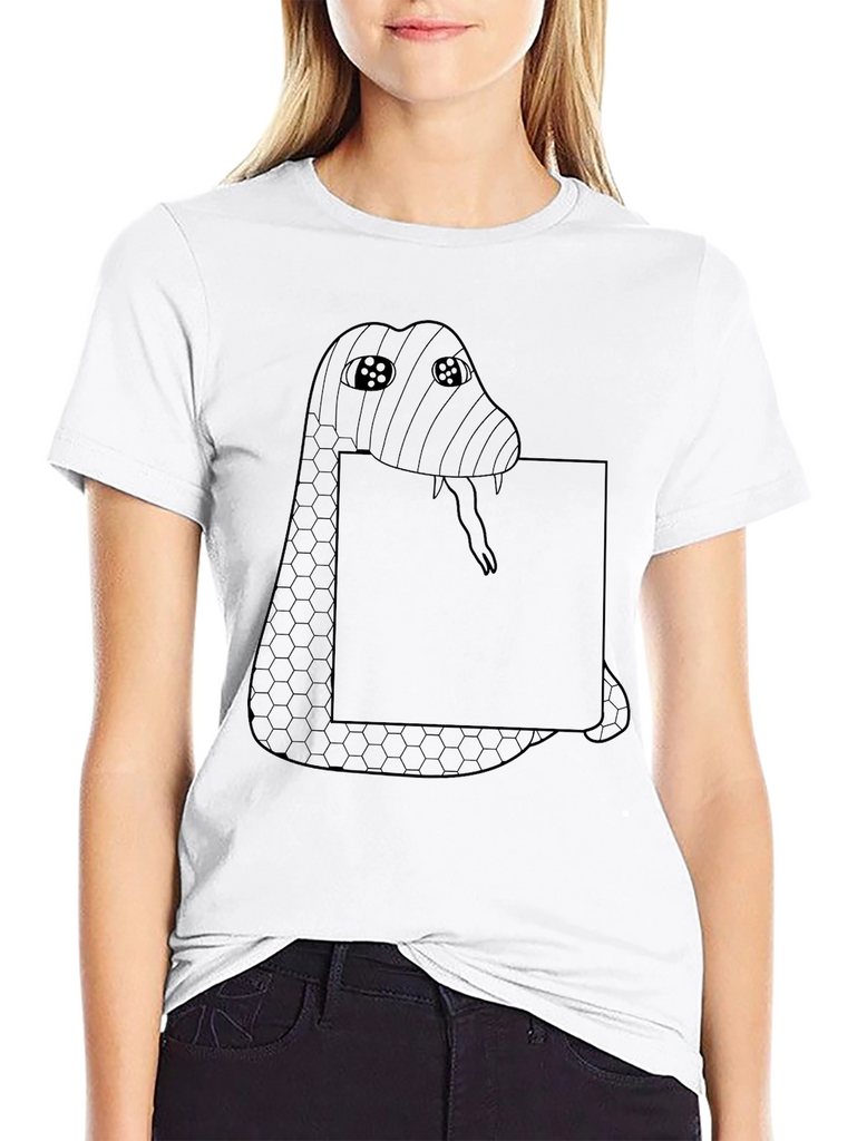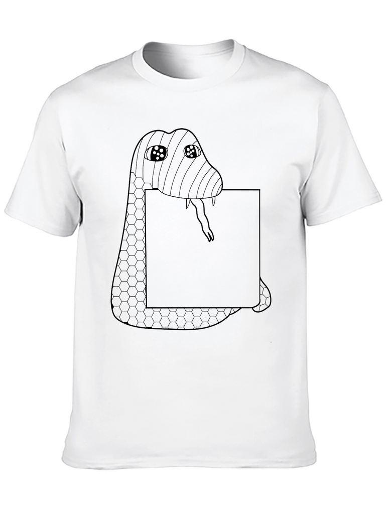 Make a bold statement with this striking black t-shirt featuring a unique snake and square design. The graphic showcases a stylized snake with intricate detailing, seemingly emerging from behind a dark square, creating an intriguing visual contrast. The shirt's classic fit makes it a versatile wardrobe staple. This tee is perfect for expressing your individuality or as a standout piece for casual outings. Its unique design is sure to spark conversations. Made with comfortable, breathable fabric, it is ideal for everyday wear. Add an edgy flair to your wardrobe with this must-have piece!