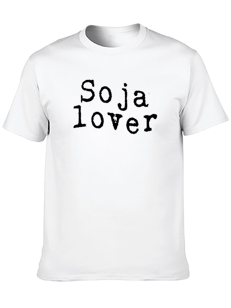 Show off your love for Soy with this eye-catching "Sojalover" T-shirt! This classic black tee features a bold, outlined white text design that's sure to turn heads. Made from a soft, comfortable fabric, this T-shirt offers a relaxed fit perfect for everyday wear. Its short sleeves and casual style make it ideal for pairing with jeans, shorts, or your favorite bottoms. Whether you're running errands, hanging out with friends, or simply lounging at home, this T-shirt is a stylish and effortless choice. A must-have addition to any casual wardrobe. Get yours today and express yourself!