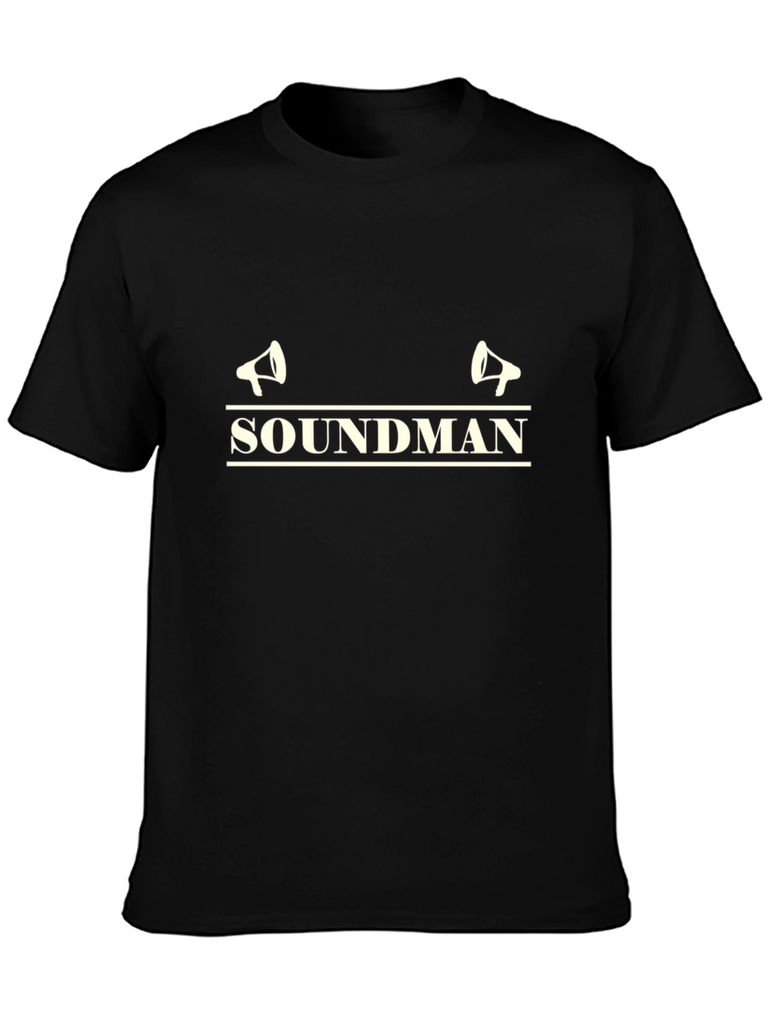 Show your passion for audio with this stylish Soundman T-shirt! This classic black tee features a bold, eye-catching design with two megaphones framing the word "SOUNDMAN" in a crisp, clean font. Made from what appears to be a soft and breathable cotton blend, this shirt offers both comfort and durability for everyday wear. It's the perfect way for audio engineers, sound technicians, and music lovers to express their dedication to the craft. Whether you're working a live gig, relaxing at home, or simply want to make a statement, this Soundman T-shirt is sure to turn heads and spark conversations. Grab yours today and let the world know you're serious about sound!