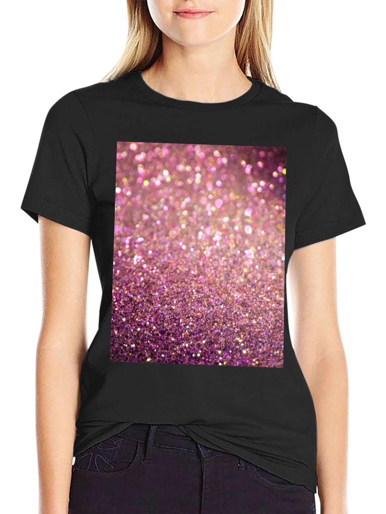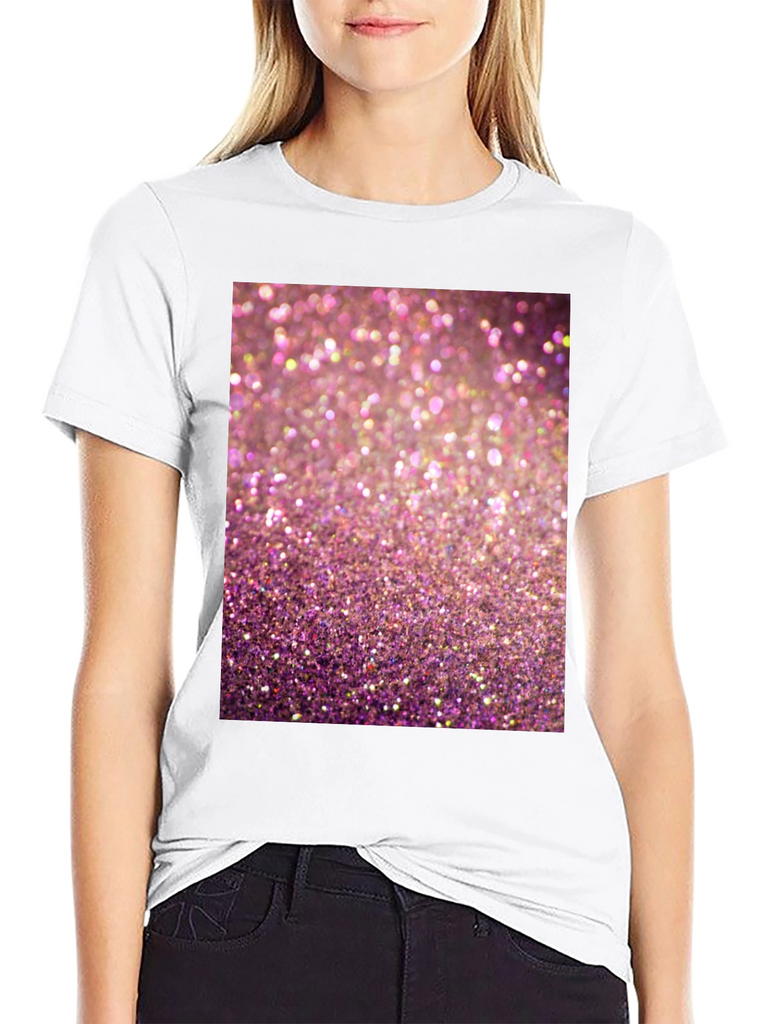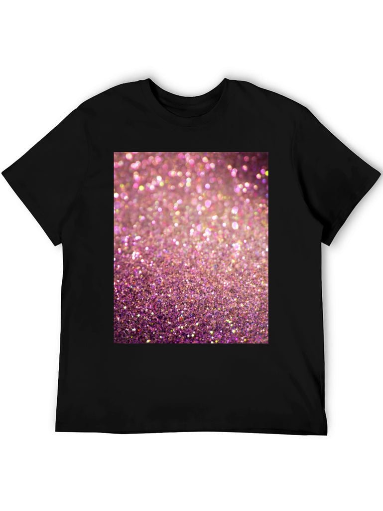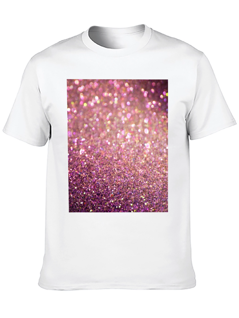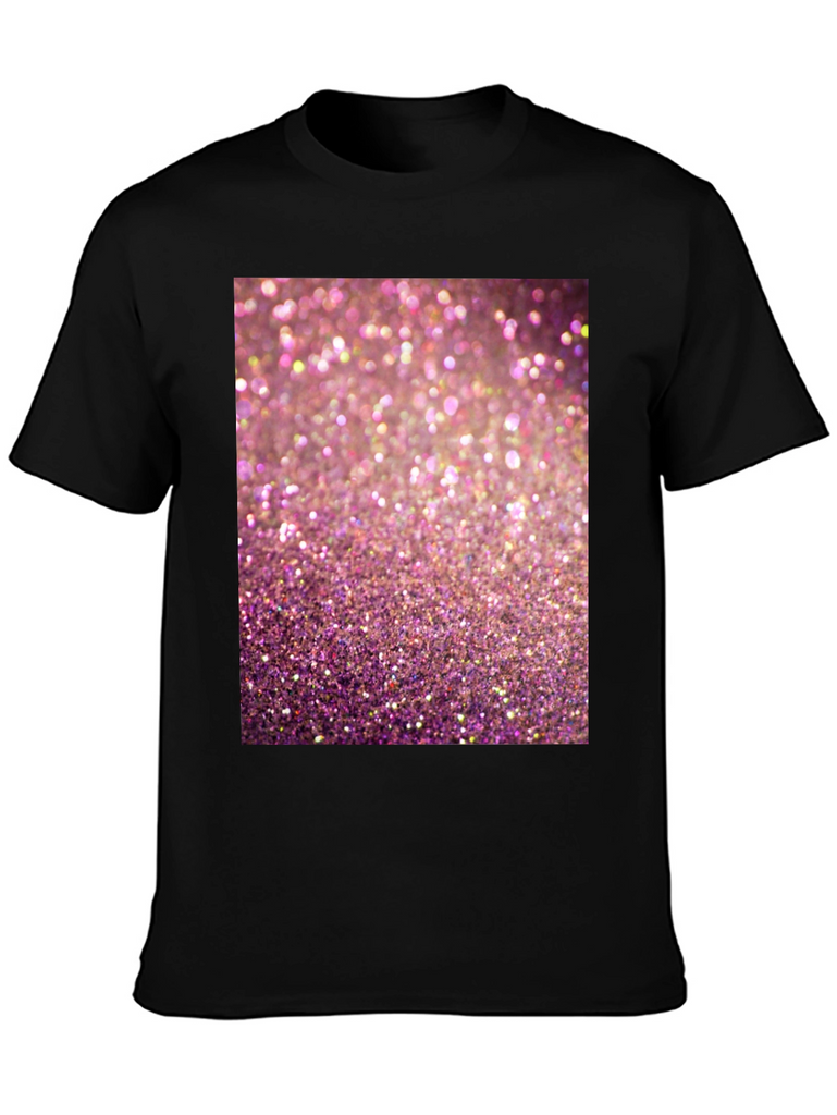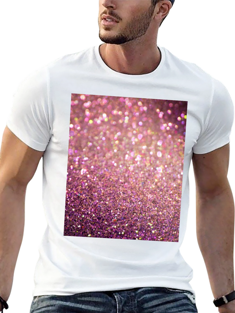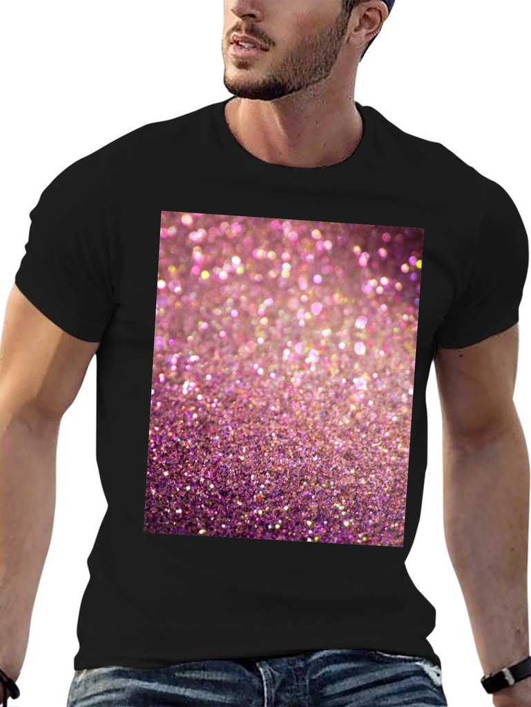 Add some sparkle to your wardrobe with this eye-catching graphic t-shirt! Featuring a vibrant pink glitter design, this tee is sure to turn heads. Made from a comfortable, breathable fabric, this short-sleeved shirt is perfect for casual wear. The high-quality print ensures the sparkling design stands out. Ideal for parties, concerts, or adding a touch of glamour to your everyday look. Show off your fun and playful side with this must-have t-shirt. Pair it with your favorite jeans or shorts for a stylish and comfortable outfit.