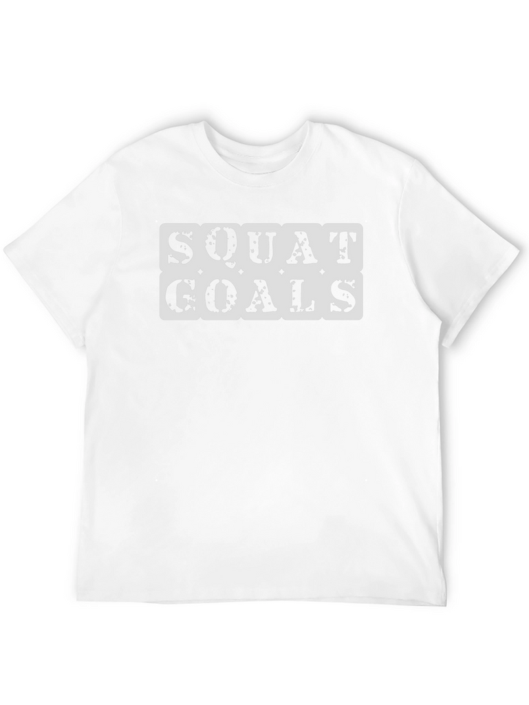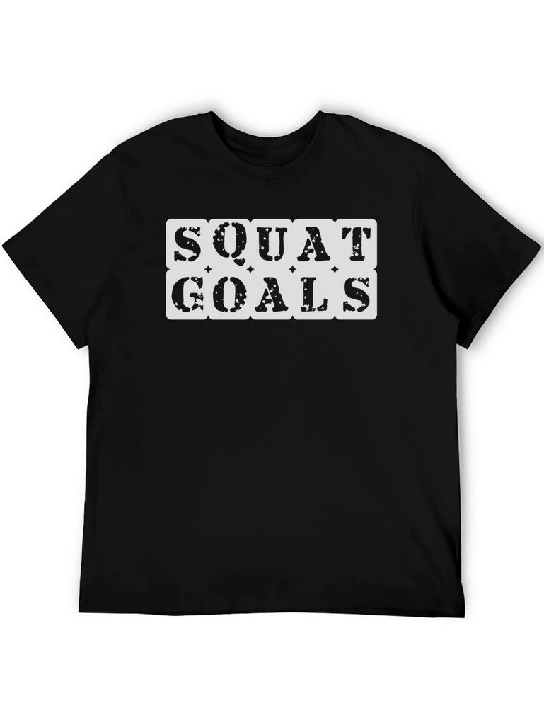 Show off your fitness motivation with this stylish black T-shirt. The bold "SQUAT GOALS" design is prominently displayed in a white block letter style, making a statement. Perfect for gym workouts, casual wear, or as a gift for fitness enthusiasts. Made from a soft, comfortable fabric, this shirt offers a relaxed fit that's ideal for active days or lounging. The classic black color ensures it pairs easily with any bottoms, while the eye-catching graphic adds a touch of personality to your look. Elevate your workout wardrobe with this must-have tee!