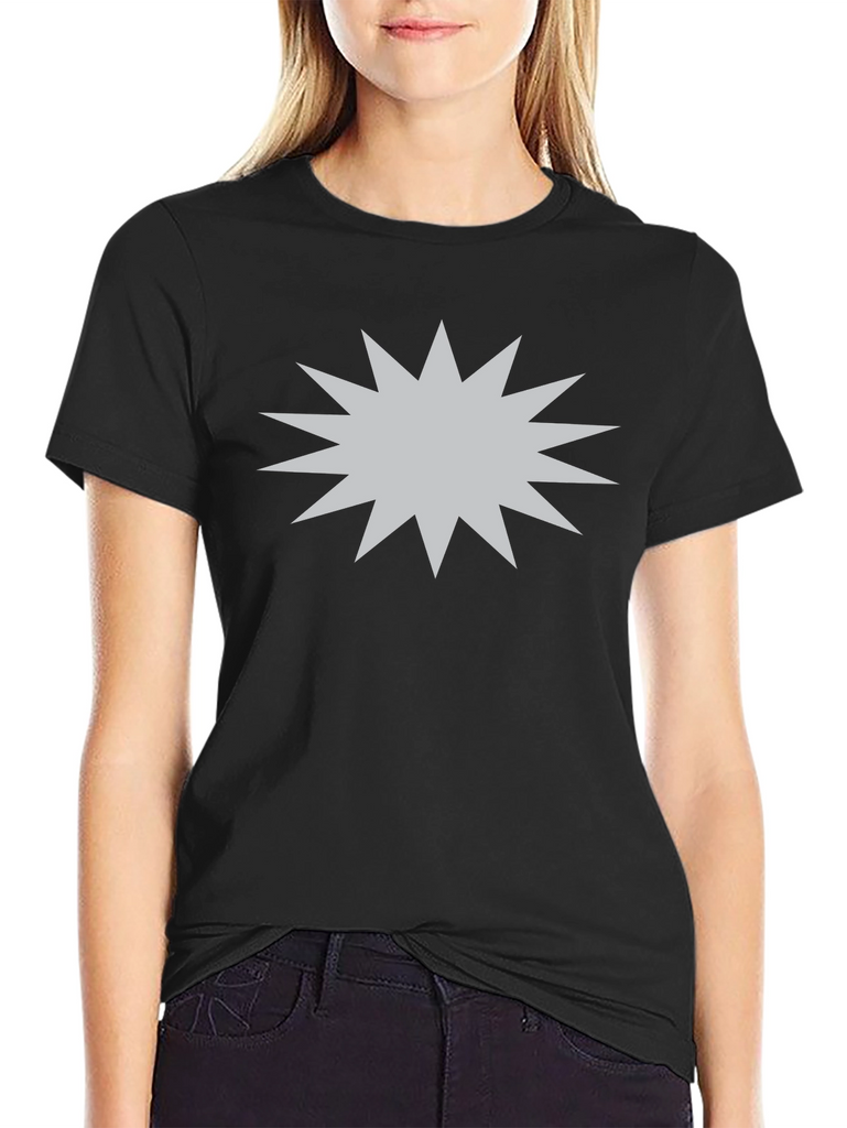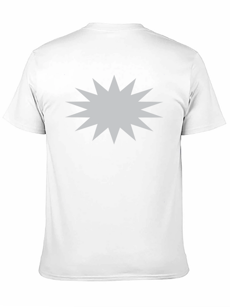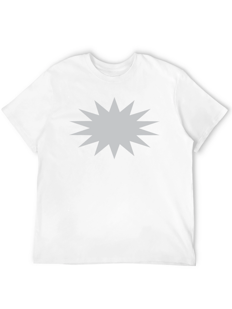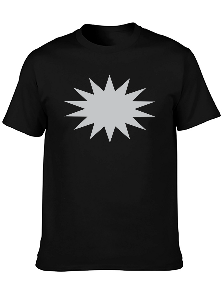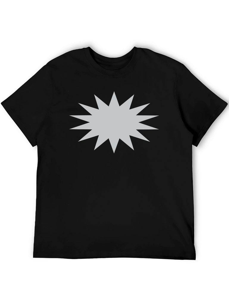 Make a statement with this classic black tee featuring a bold starburst graphic. The simple yet eye-catching design is printed front and center on a comfortable, everyday t-shirt. Perfect for casual wear, this versatile piece can be dressed up or down to suit any occasion. The clean lines and solid color make it easy to pair with jeans, shorts, or even a blazer for a more polished look. Add a touch of personality to your wardrobe with this must-have graphic tee.