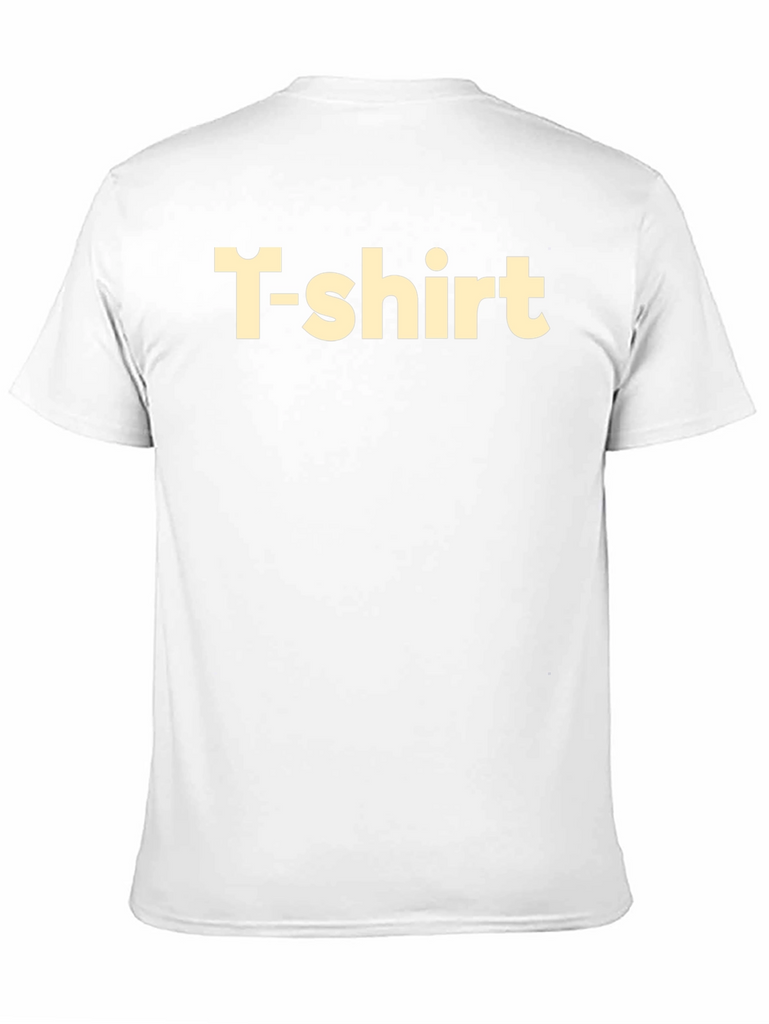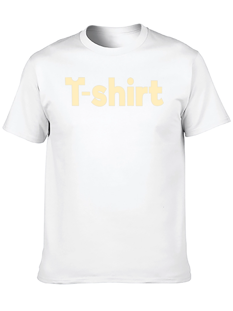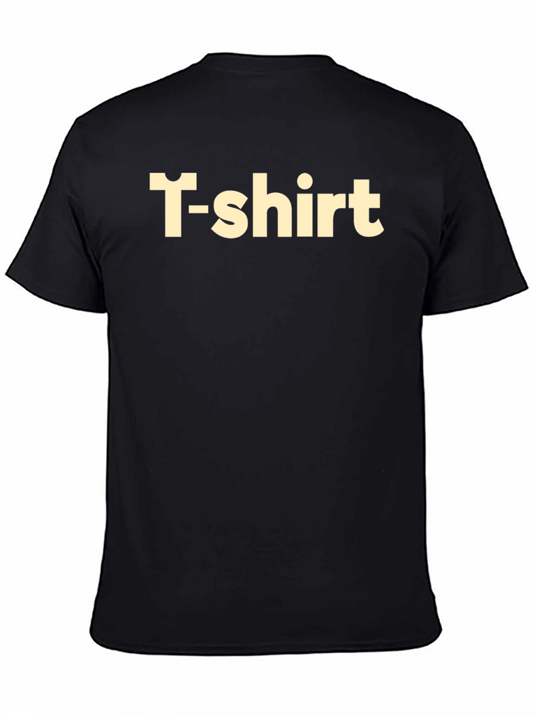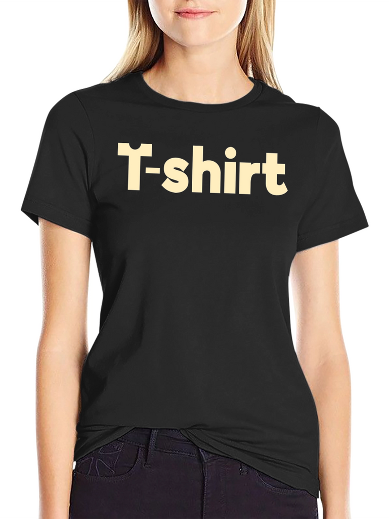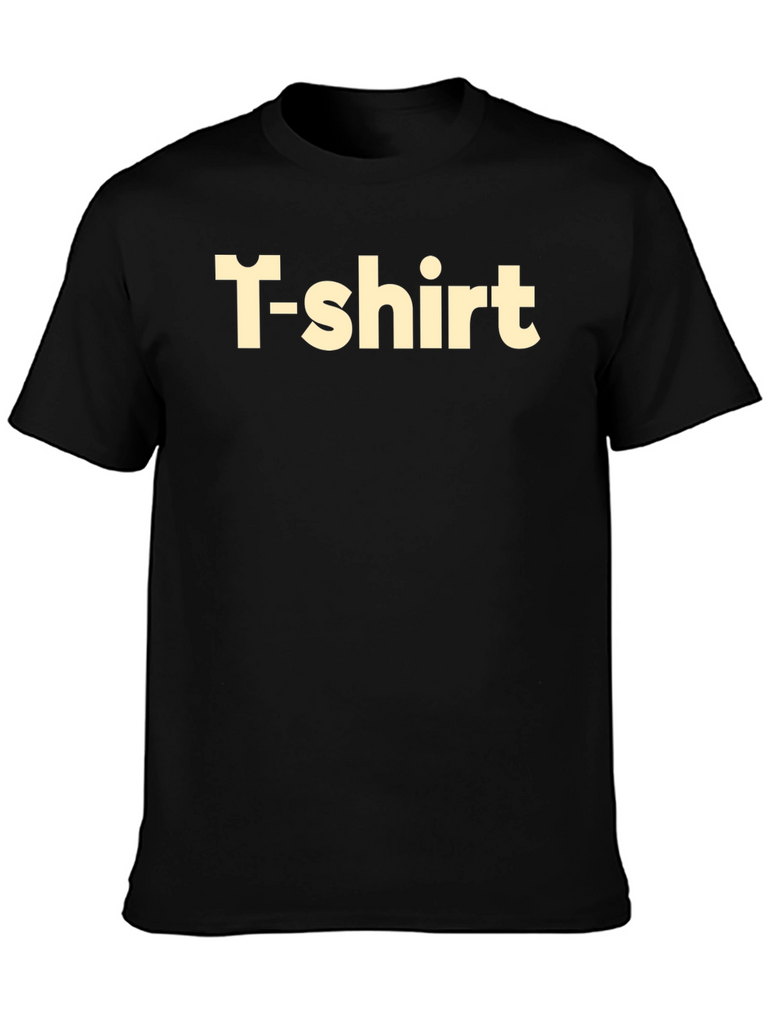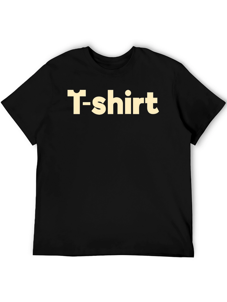 Make a statement with this bold and minimalist tee. This classic black t-shirt features a prominent 'T-shirt' graphic in a light cream color, creating a striking contrast. The shirt appears to be made from a soft, comfortable cotton or cotton blend, perfect for everyday wear. Its simple design and relaxed fit make it ideal for casual outings, layering, or lounging at home. Pair it with jeans, shorts, or joggers for an effortlessly cool look. This t-shirt is sure to turn heads and spark conversations.