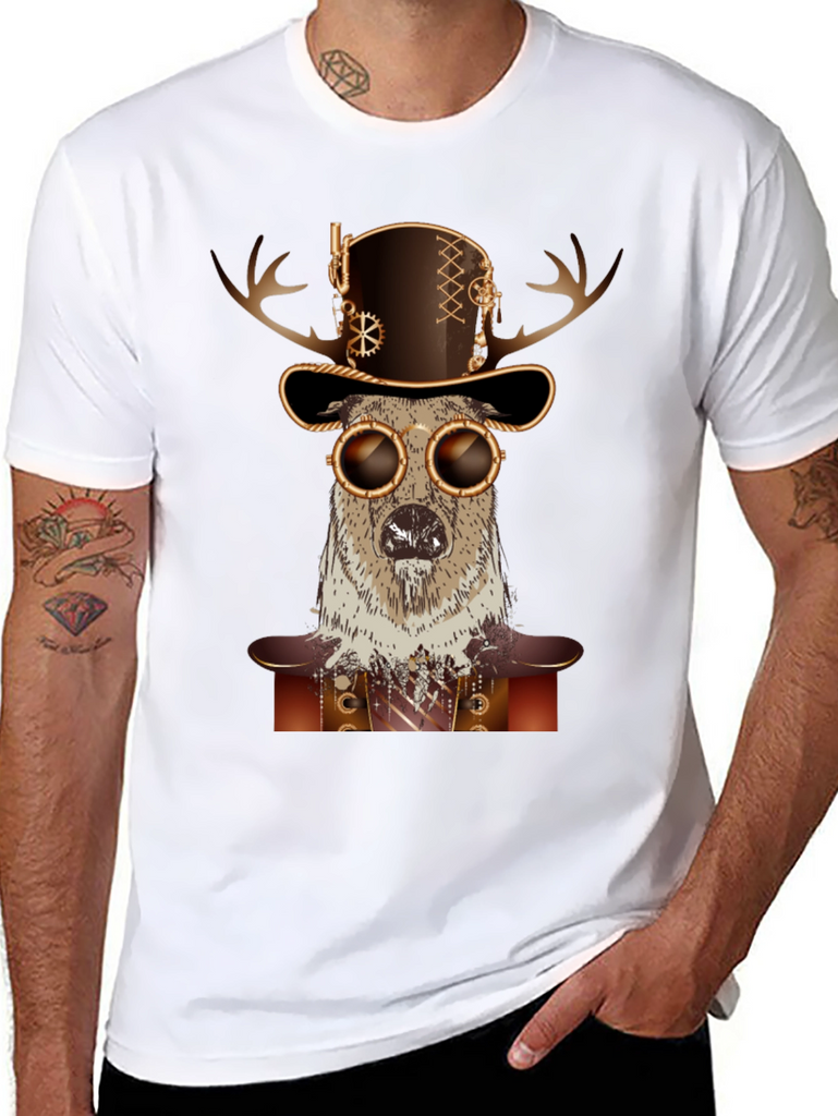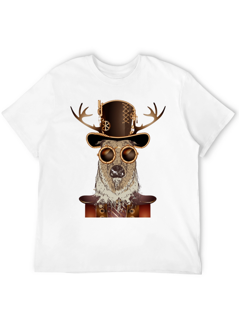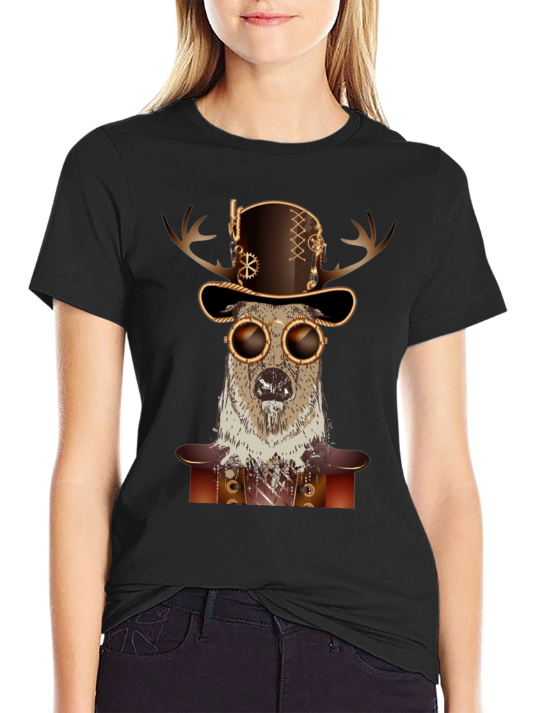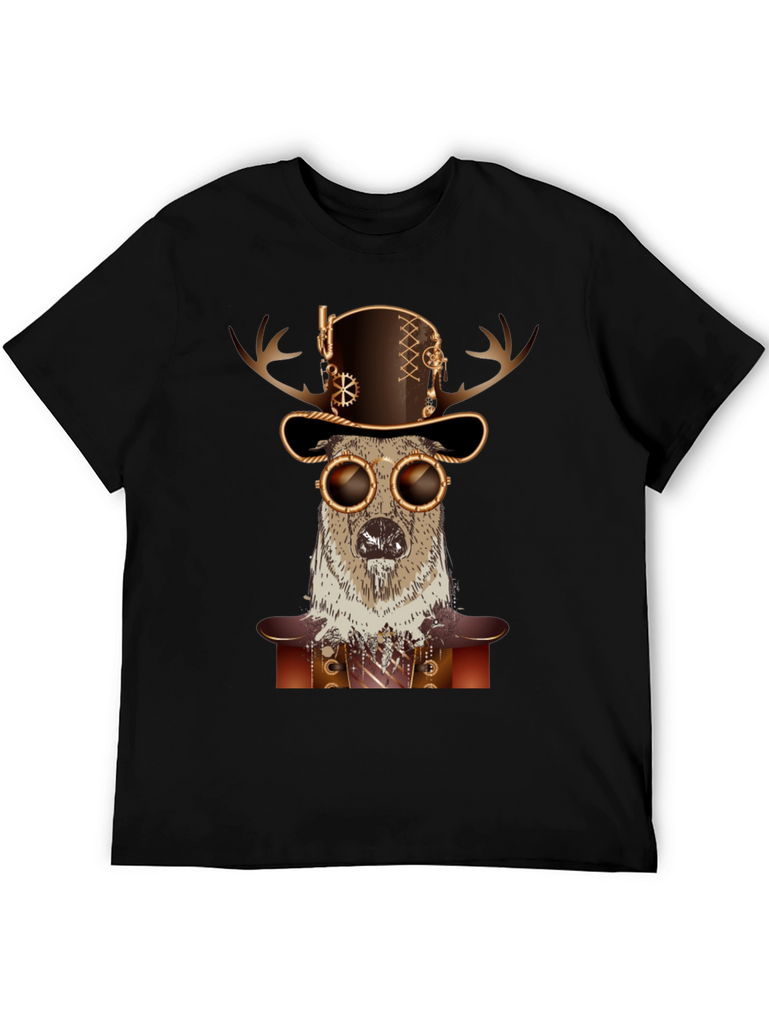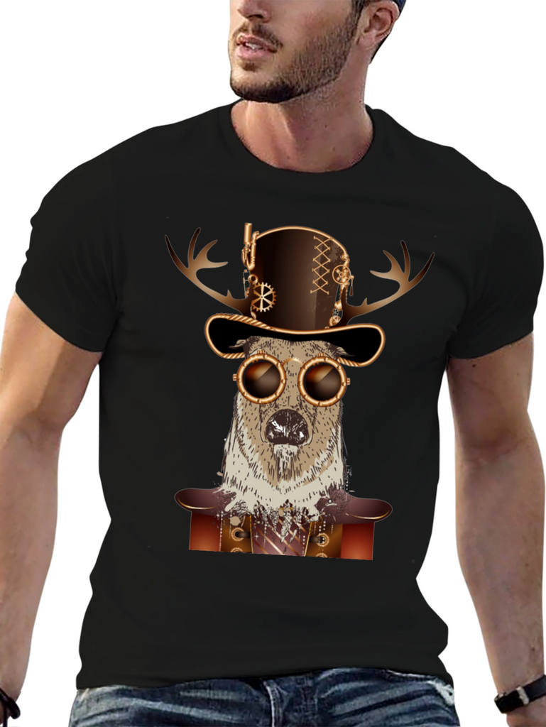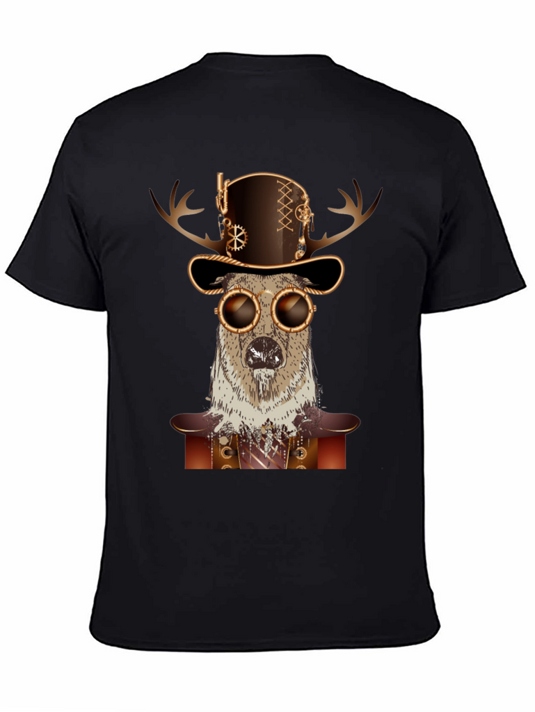 Embrace a touch of whimsy with this eye-catching black t-shirt featuring a unique steampunk deer design. This soft, comfortable tee showcases a detailed graphic of a deer adorned with steampunk-inspired accessories, including a top hat with gears, goggles, and a Victorian-era jacket. The design is vibrant and detailed, making it a standout piece in any wardrobe. Ideal for casual wear, conventions, or as a gift for steampunk enthusiasts and animal lovers alike, this t-shirt adds a quirky and stylish flair to any outfit. Get ready to turn heads and spark conversations with this conversation-starting tee!