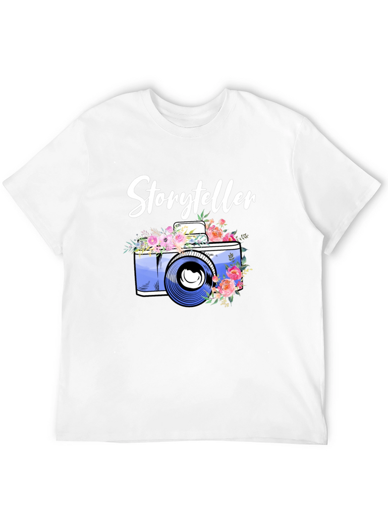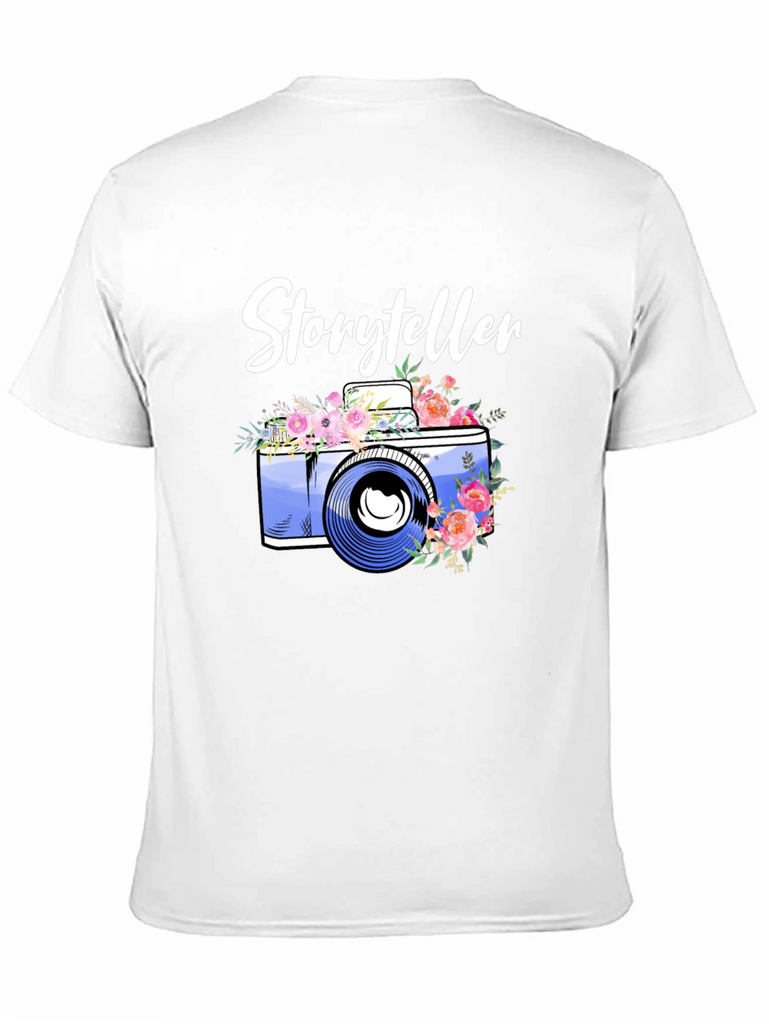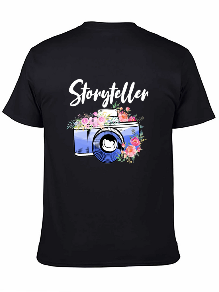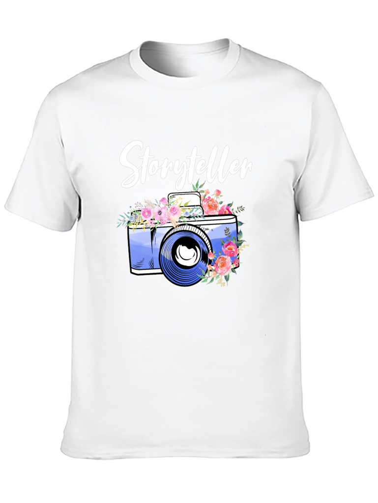 Capture your unique story with this stylish t-shirt! Featuring a charming design of a vintage camera adorned with delicate pink flowers, this black tee perfectly blends creative flair with everyday comfort. The word "Storyteller" is elegantly scripted above the camera, adding a personalized touch. Crafted from a soft, breathable fabric, this shirt is ideal for casual outings, photography enthusiasts, or anyone who loves to express their individuality through fashion. This eye-catching top will make a statement wherever you go. Express yourself and share your passion for storytelling!