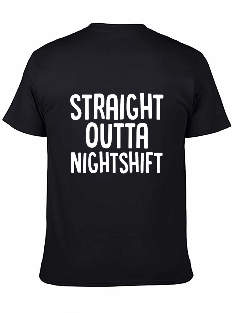 This classic black t-shirt features the bold, humorous statement "STRAIGHT OUTTA NIGHTSHIFT" in crisp white lettering. Crafted from what appears to be a soft and breathable cotton blend, this tee offers both comfort and style. It's the perfect way for night shift workers to express their post-shift mood or showcase their dedication to the job. Ideal for casual wear, relaxing at home, or gifting to a fellow night owl. Show off your unique sense of humor and night shift pride with this eye-catching t-shirt!