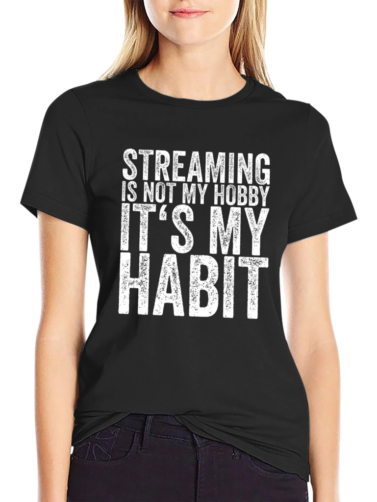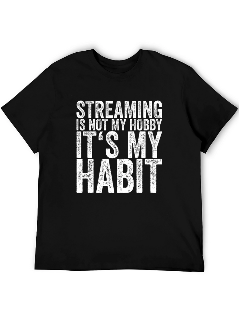 This bold black t-shirt features a striking white graphic that reads "STREAMING IS NOT MY HOBBY IT'S MY HABIT." The message is displayed in a distressed, block-letter font, adding a touch of edgy style. Made from a comfortable-looking fabric, this tee is perfect for casual wear or for expressing your passion for streaming. Show off your dedication to streaming and wear it to gaming events, streaming sessions, or everyday outings. It’s a great conversation starter and a fun way to let everyone know that streaming is more than just a hobby for you. This cool graphic tee is a must-have for any streamer or content creator.