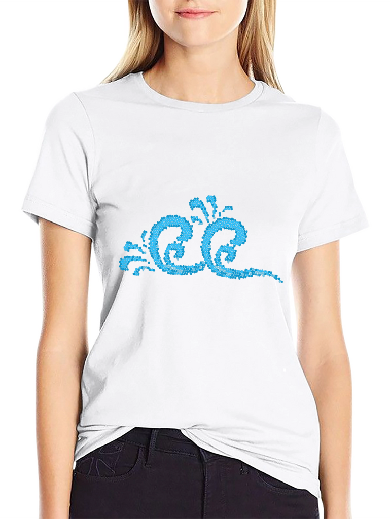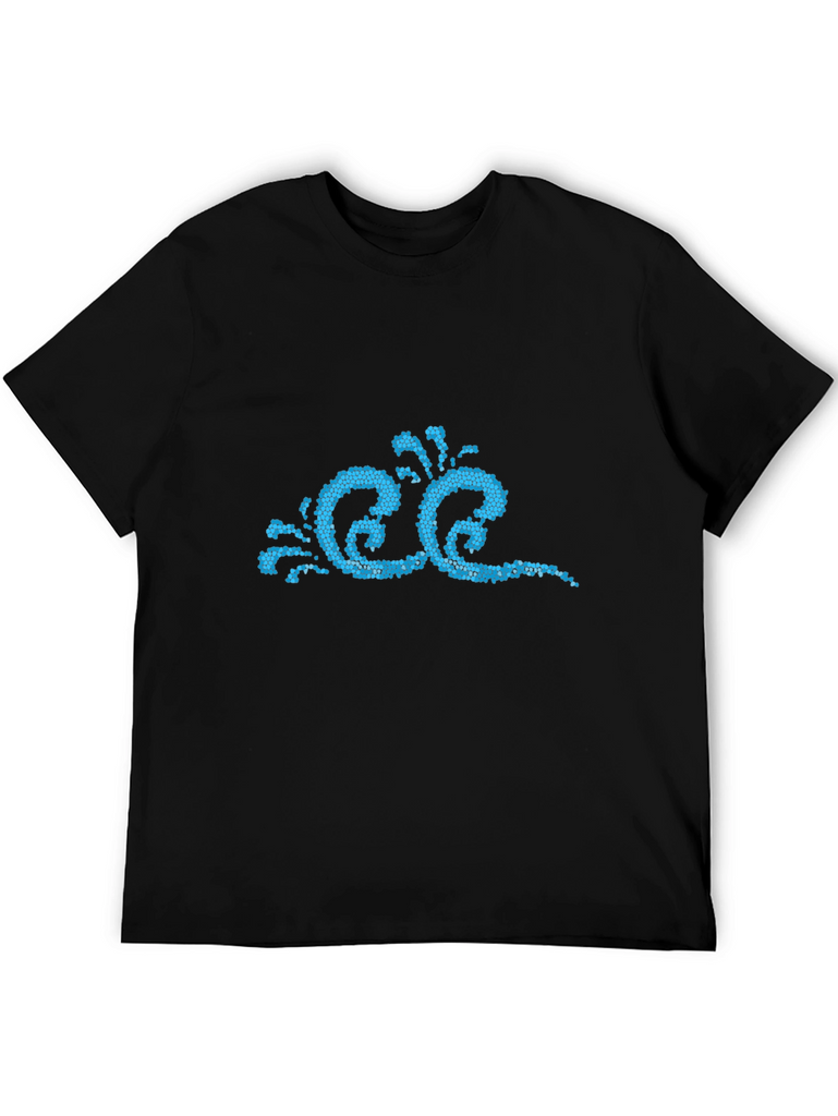 Elevate your casual wardrobe with this sleek black t-shirt. Featuring a vibrant blue wave-like design across the chest, this shirt adds a touch of unique style to any outfit. Made from a comfortable fabric, it's perfect for everyday wear. The intricate design catches the eye, making it a standout piece. Whether you're heading out for a casual day or simply relaxing at home, this t-shirt offers both comfort and style. Pair it with jeans, shorts, or joggers for a versatile look. Get ready to make a splash with this eye-catching tee!