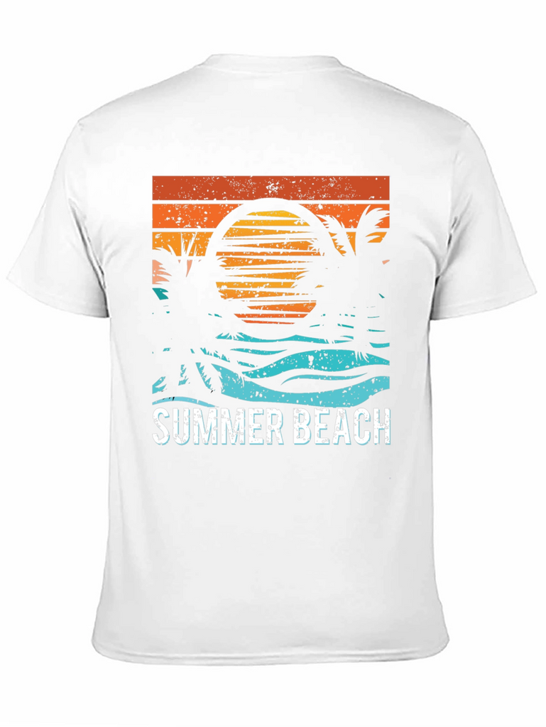 Embrace the summer vibes with this stylish black t-shirt featuring a vibrant 'Summer Beach' graphic. The design includes a retro-inspired sunset over a palm-lined beach and ocean waves. Made from a comfortable fabric, this tee is perfect for casual outings, beach days, or simply lounging in style. The bold graphic makes it a standout piece, ideal for expressing your love for summer and the beach. Add a touch of laid-back cool to your wardrobe with this must-have summer essential!