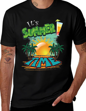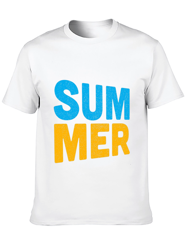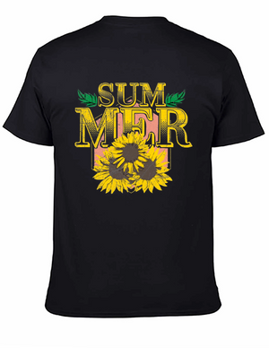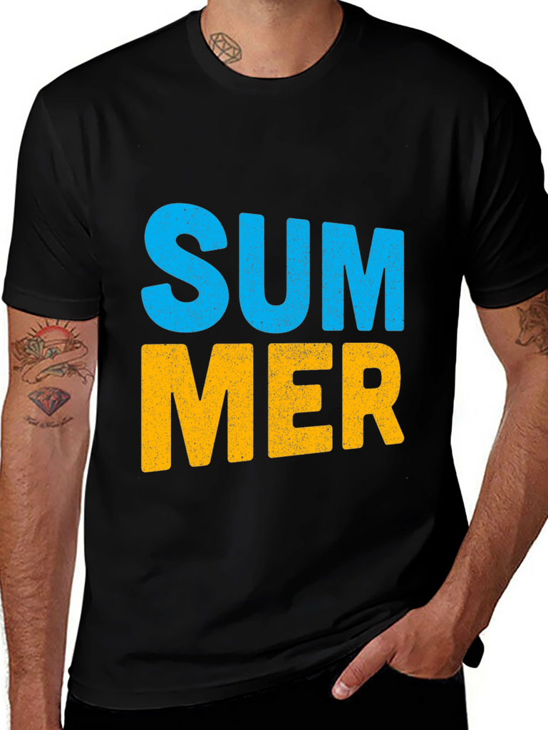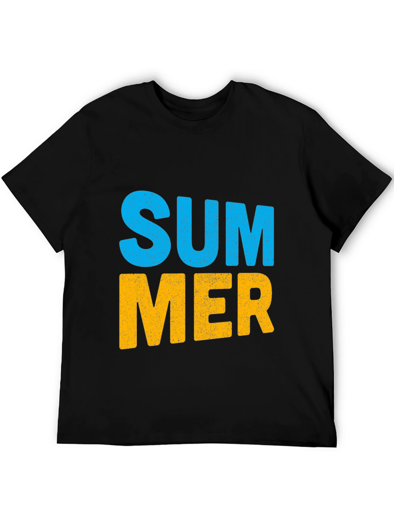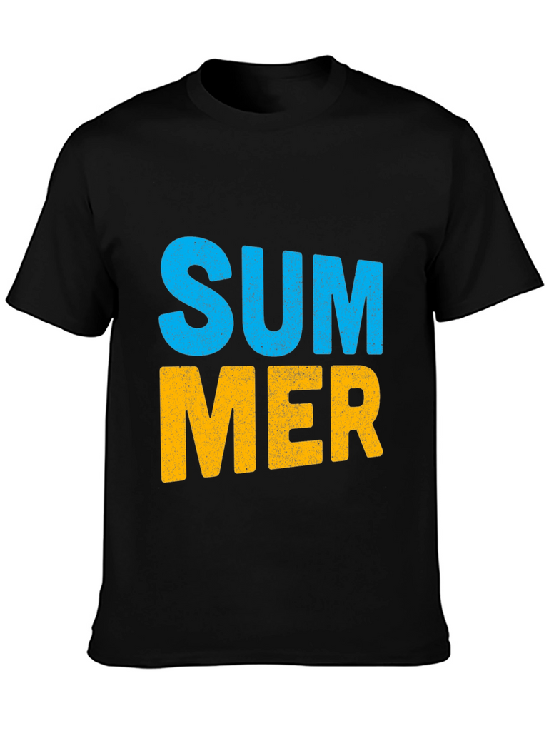 Embrace the summer vibes with this stylish black t-shirt. Featuring a bold "SUMMER" graphic print in vibrant blue and yellow, this tee is perfect for casual outings and sunny days. Made from soft, breathable cotton, it offers a comfortable fit and feel. The classic crew neck design ensures versatility, making it easy to pair with jeans, shorts, or khakis. This eye-catching t-shirt is an ideal addition to your wardrobe. Show off your love for the summer season with this awesome top!