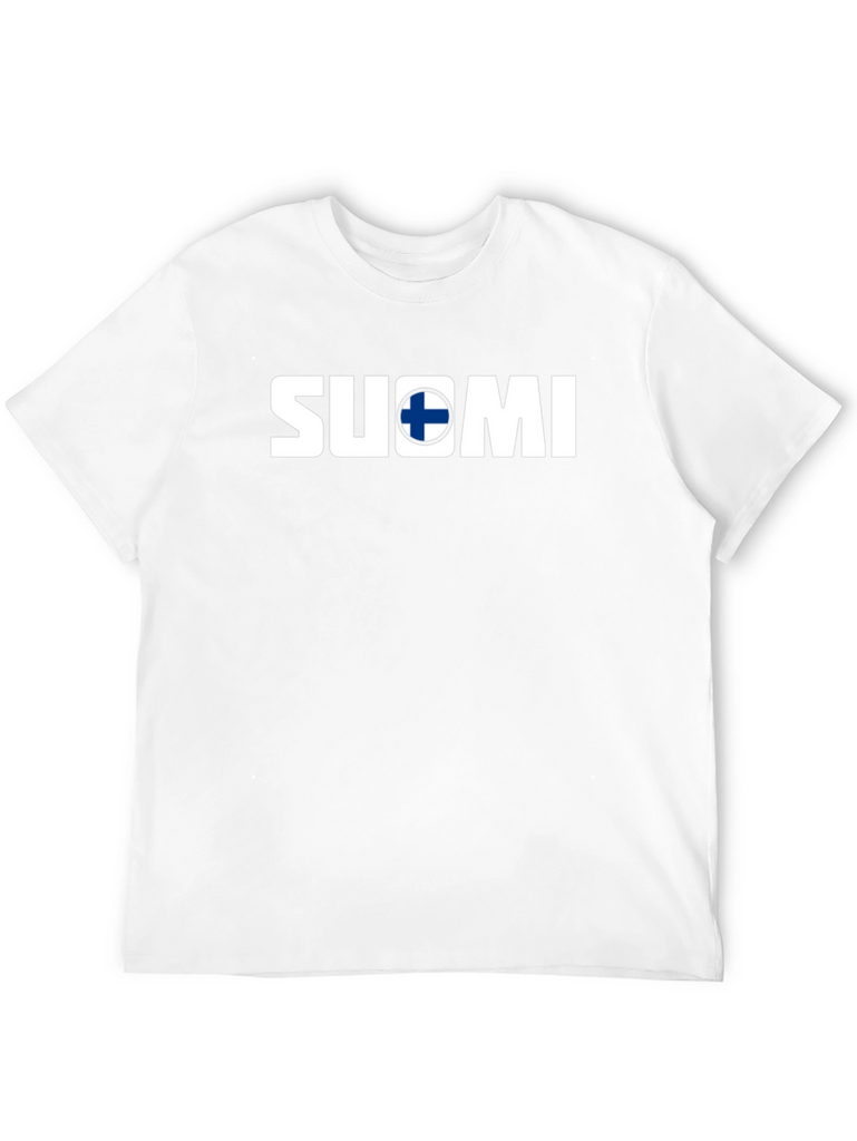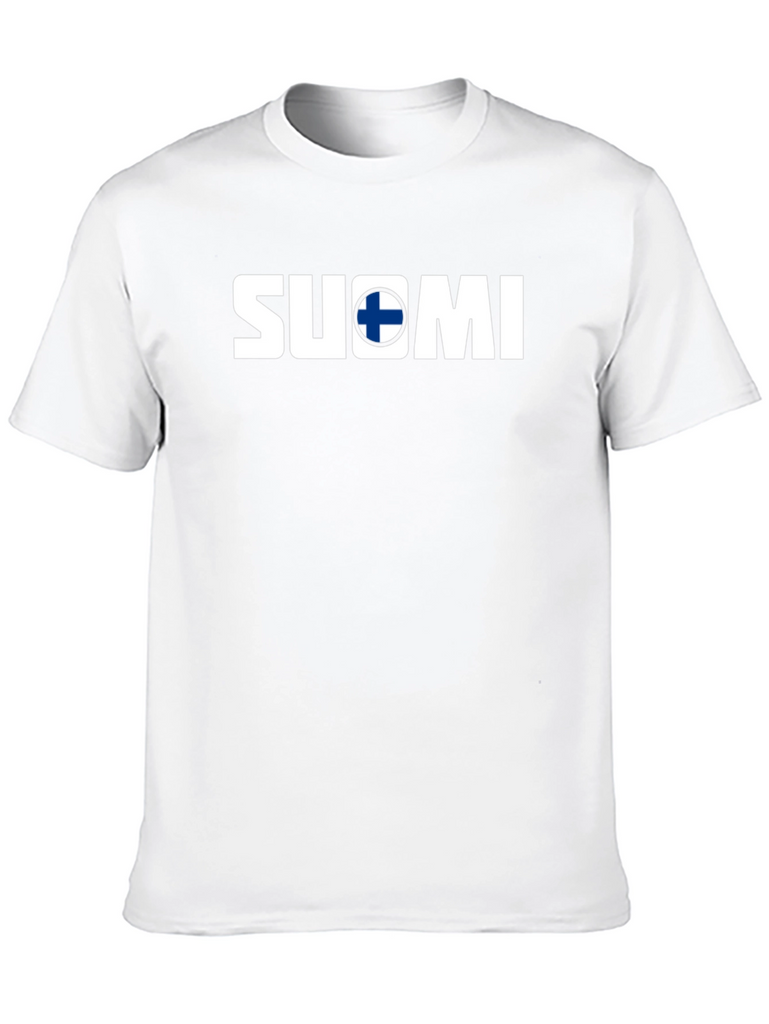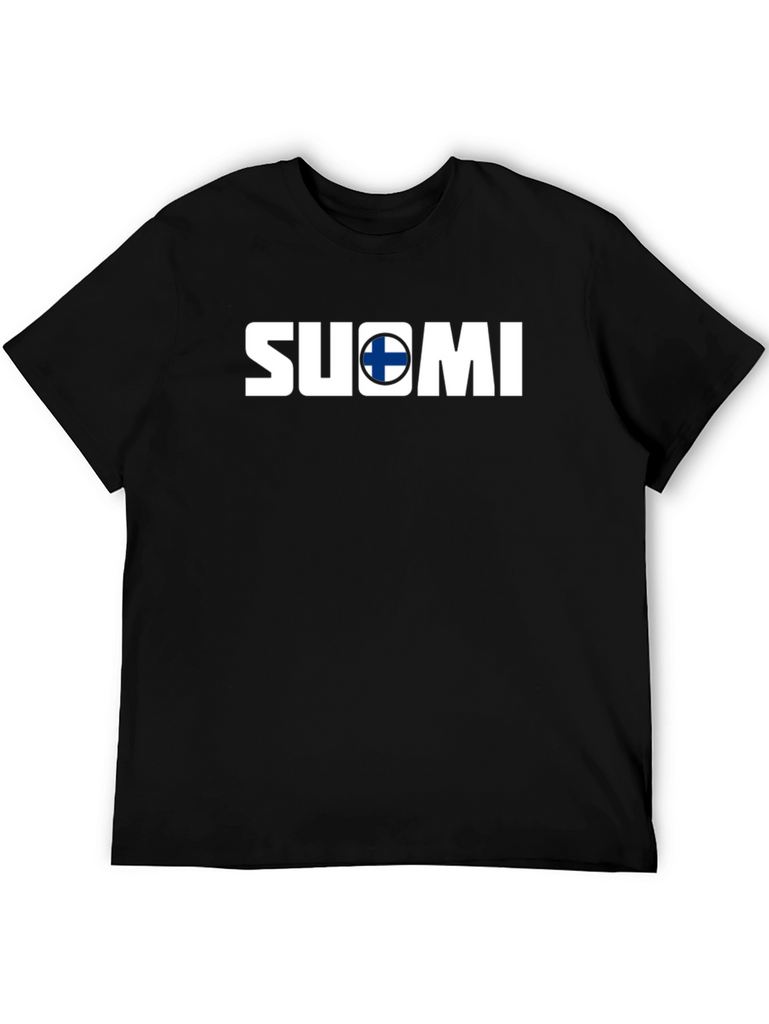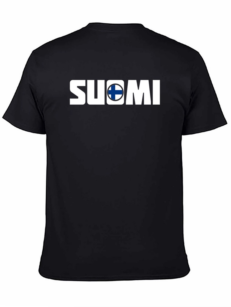 Show your Finnish pride with this stylish men's t-shirt. The shirt is black with "SUOMI" printed in white across the chest. The "O" in SUOMI is replaced with the Finnish flag, adding a touch of national pride. Made from comfortable material, this tee is perfect for casual wear, sporting events, or as a souvenir. The classic design makes it easy to pair with jeans, shorts, or athletic wear. Whether you're from Finland, have Finnish heritage, or simply admire the country, this shirt is a great way to show your appreciation. Get yours today!