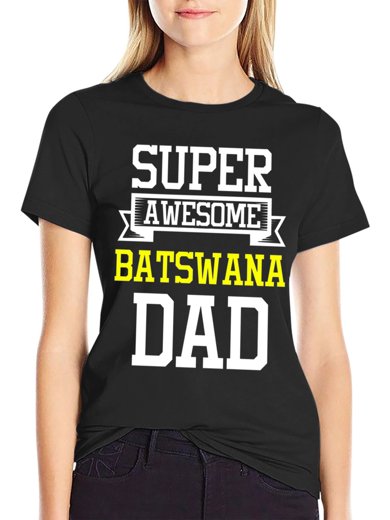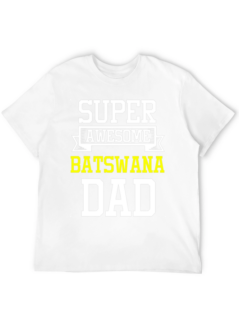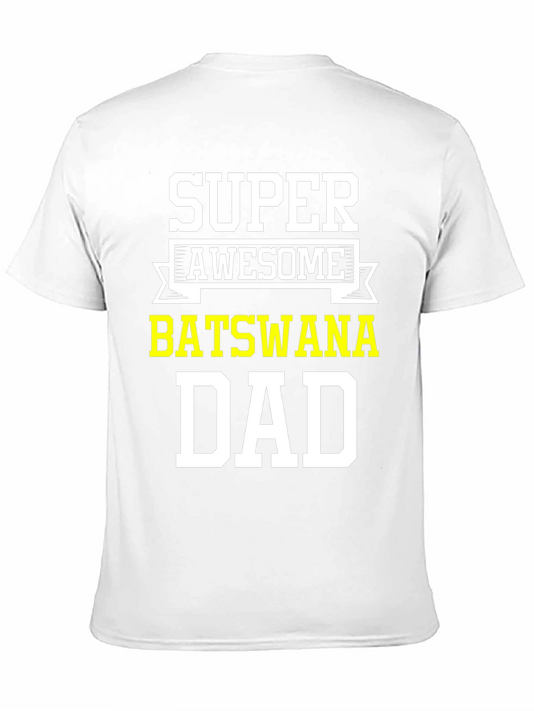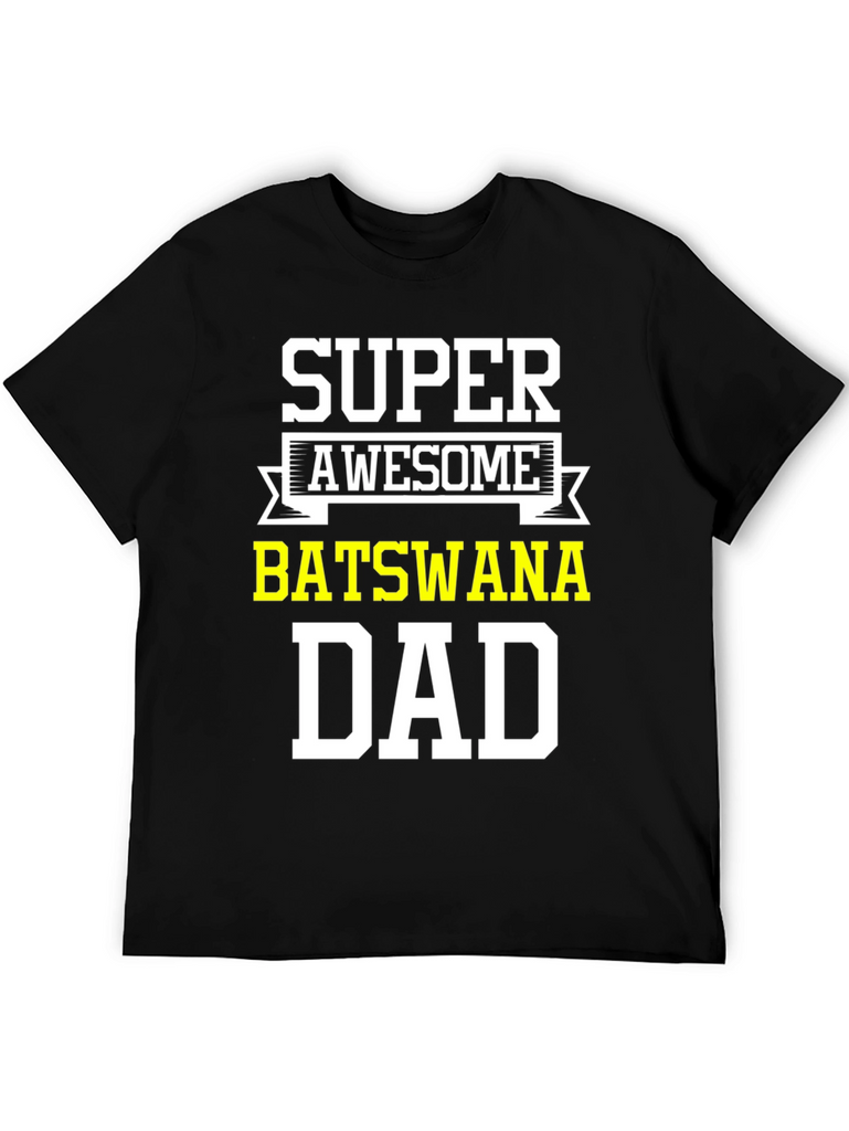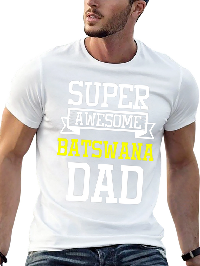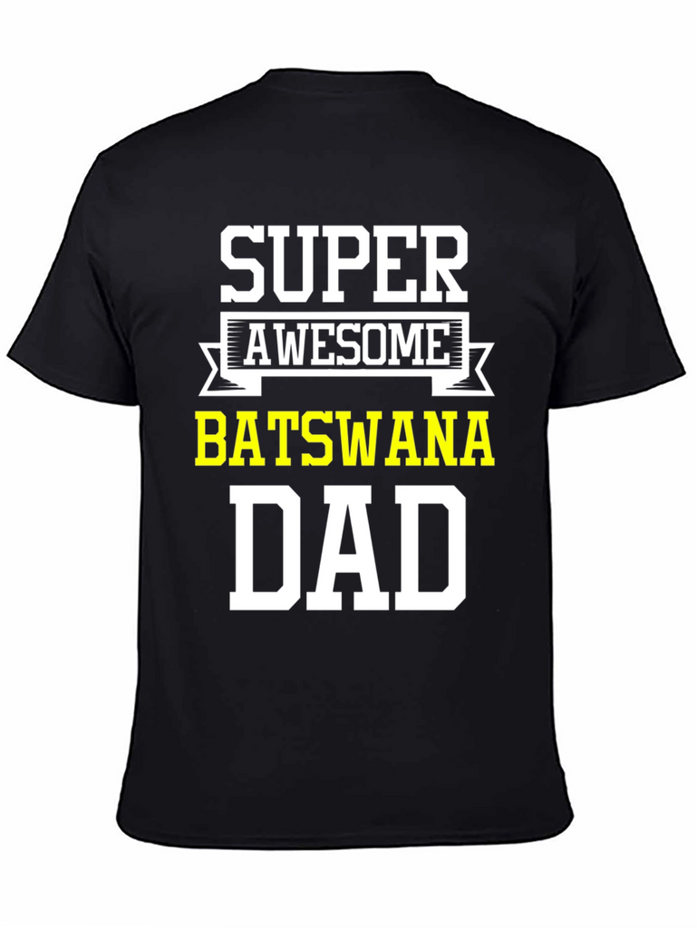 Show your Botswana pride with this awesome black t-shirt. Featuring the words 'Super Awesome' above 'Botswana Dad' in bold, white and yellow lettering, this tee is perfect for proud fathers from Botswana. Made from comfortable material, it's ideal for casual wear, family gatherings, or showing off your heritage. A great gift for Father's Day, birthdays, or any special occasion. Get yours today and let everyone know you're a super awesome Botswana dad!
