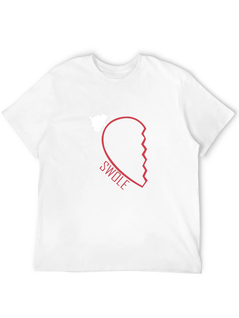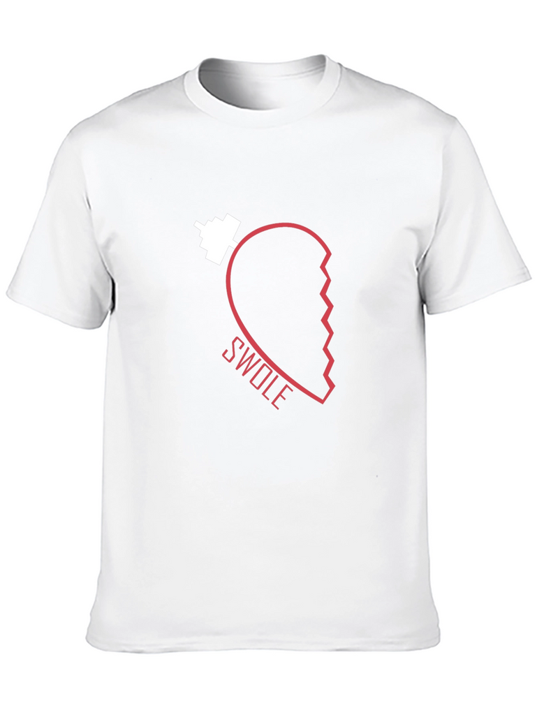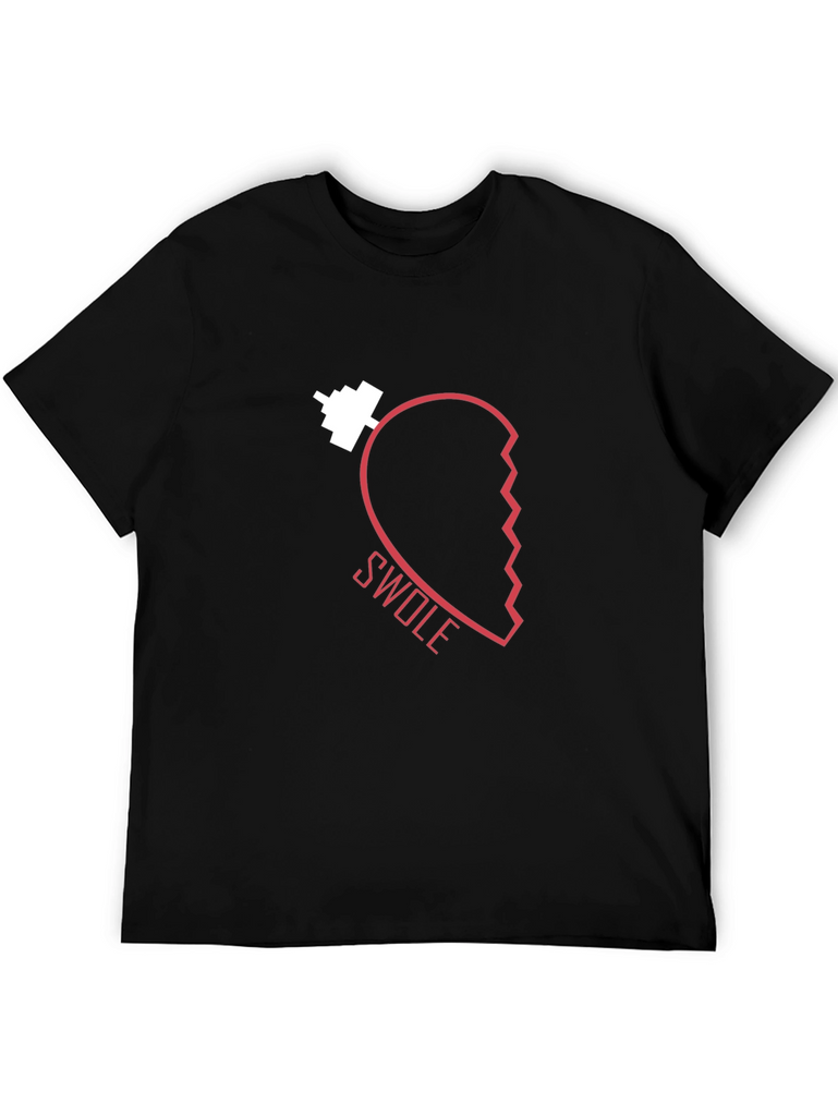 Show off your dedication to fitness with this unique Swol Heart T-shirt. Featuring a clever design that merges a weightlifting barbell with a broken heart shape, this shirt is a must-have for gym enthusiasts. The word "SWOLE" is displayed prominently, showcasing your commitment to gains. This stylish black tee is perfect for workouts, casual outings, or as a gift for the fitness lover in your life. Made from comfortable materials, it ensures breathability and durability, no matter how intense your training gets. Wear your passion and inspire others with this eye-catching t-shirt.