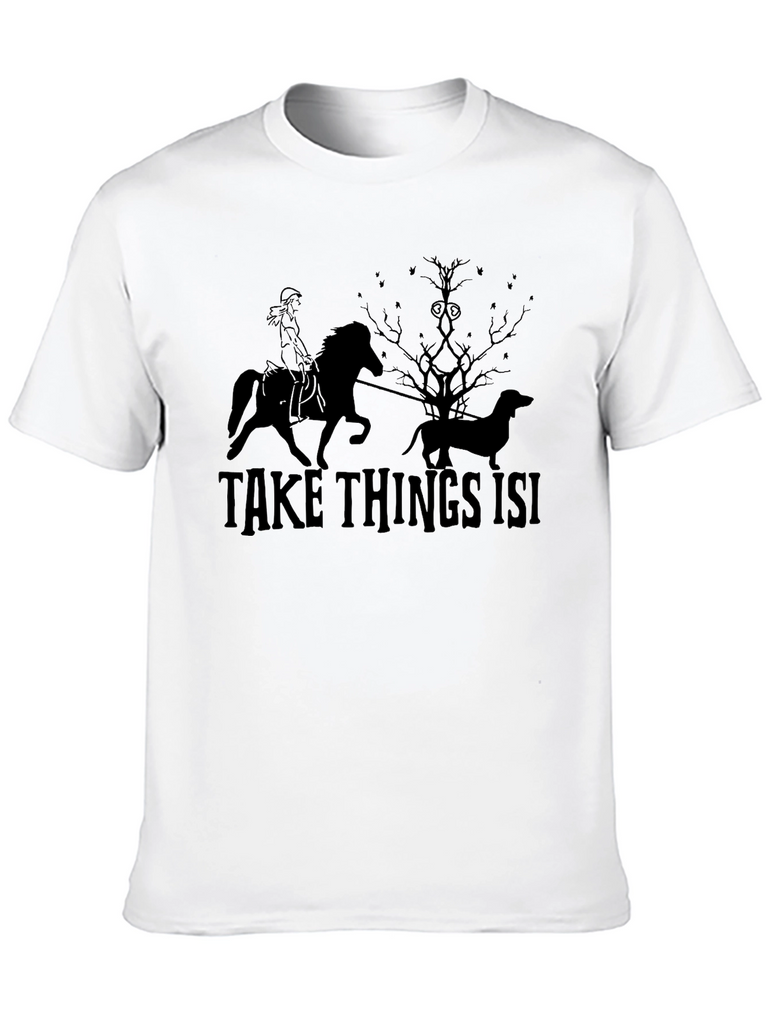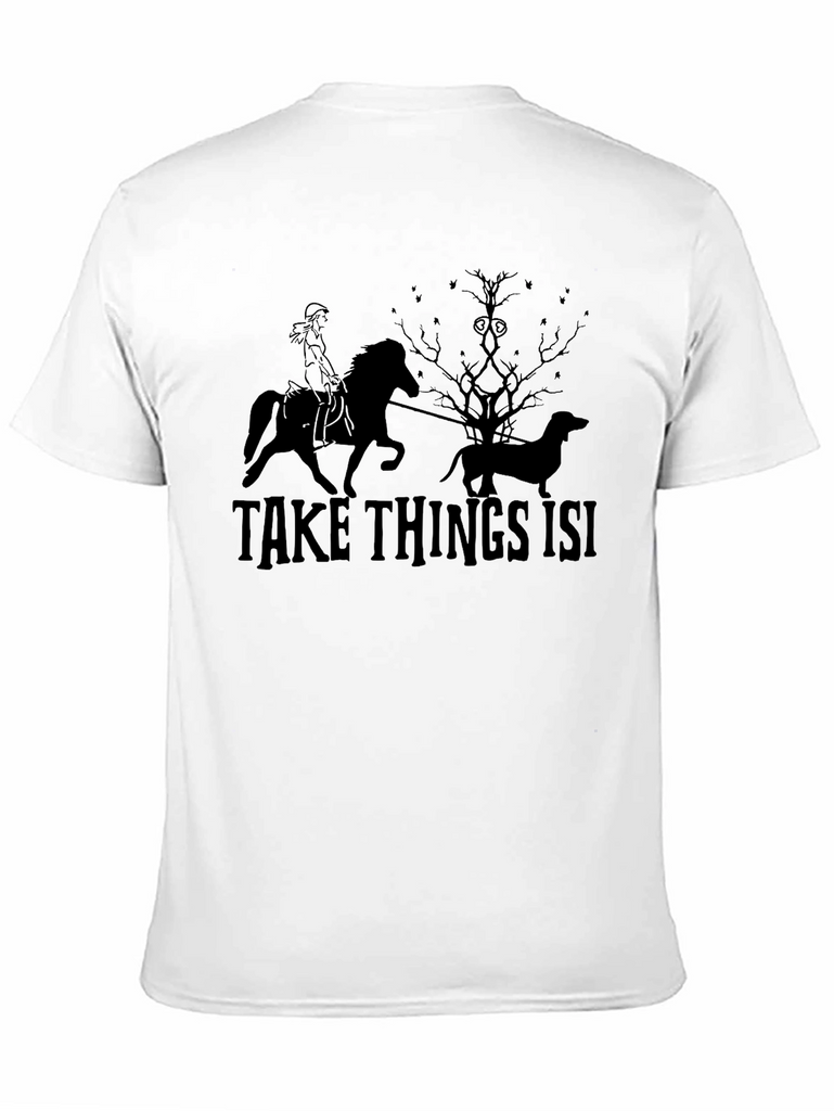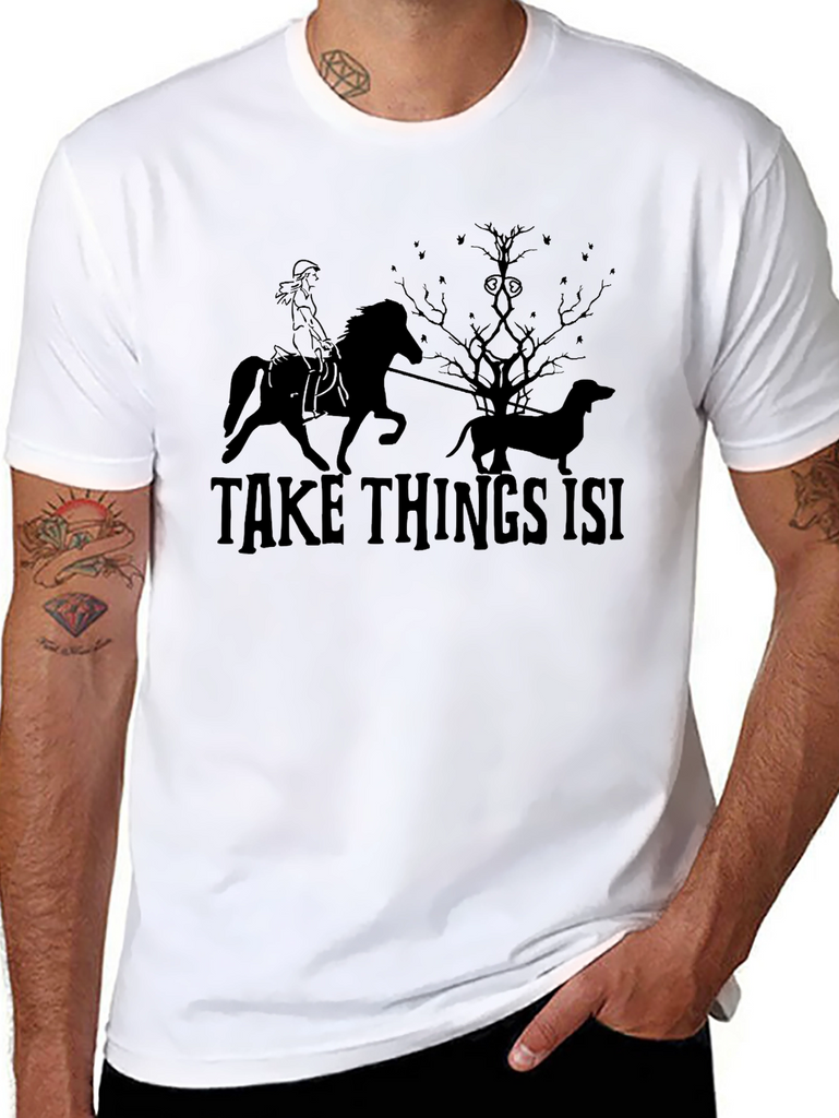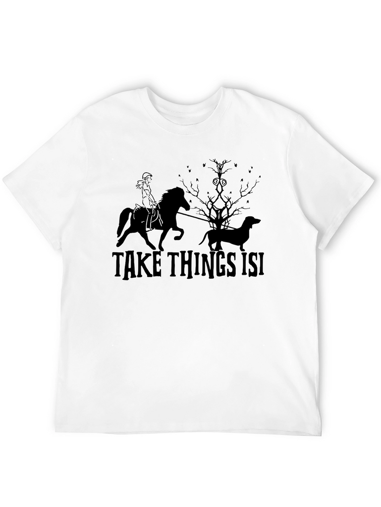 Show off your unique style with this comfortable black t-shirt. The graphic features a person riding a horse with a dachshund-pulled cart in a creative design, perfect for dog and equestrian lovers alike. This tee is made from a soft, breathable fabric for all-day comfort. Whether you're dressing casually or making a statement, this t-shirt will add a touch of personality to your wardrobe. Ideal for everyday wear or as a fun gift for friends and family.