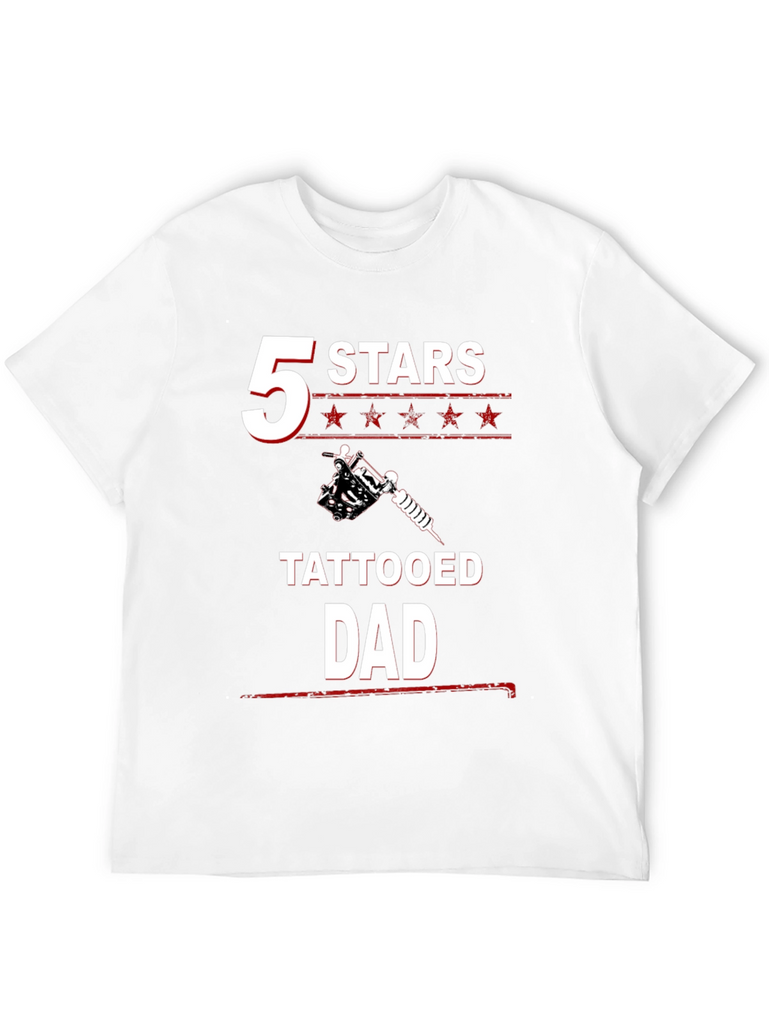 Show off your proud tattoo love with this bold '5 Stars Tattooed Dad' t-shirt. This black crew neck tee features a graphic design with a tattoo gun and the words 'Tattooed Dad'. The design is bold and eye-catching, making it a perfect gift for inked fathers. Made from comfortable materials, it's great for everyday wear. Wear it at the tattoo parlor, family outings, or casual events. This shirt is a great way to express your personality and passion.