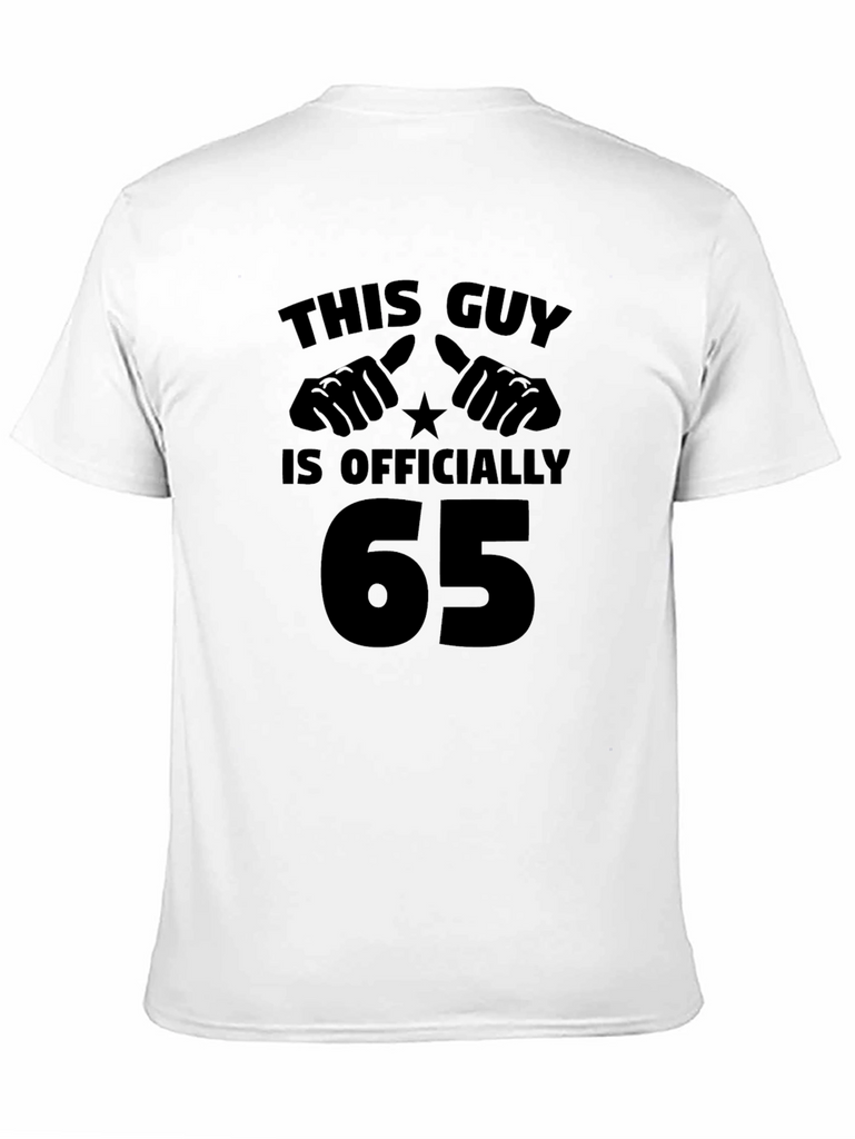 Celebrate the big 6-5 with this fun and festive t-shirt! Made from a comfortable, breathable black fabric, this tee is perfect for birthday celebrations and casual wear. The bold graphic design features hands with pointing fingers, a star, and the phrase "This Guy is Officially 65" in a striking font. It's a great way to show off your age with pride and humor. This short-sleeved shirt is an ideal gift for a milestone birthday, ensuring the birthday guy feels special and stylish. Get ready to party in style!