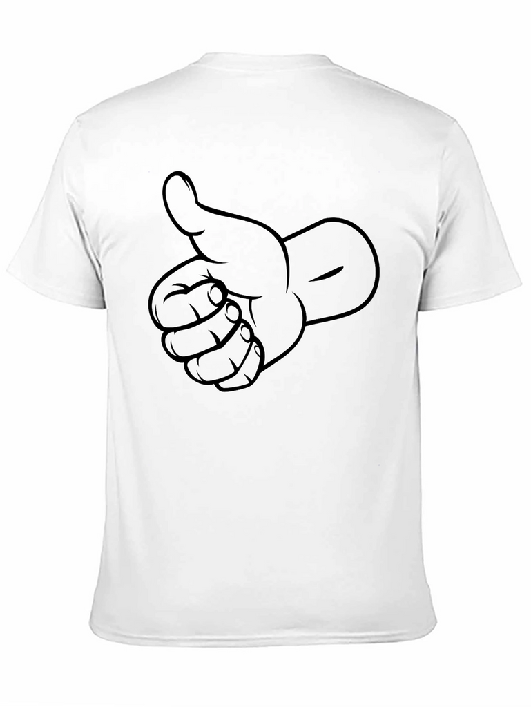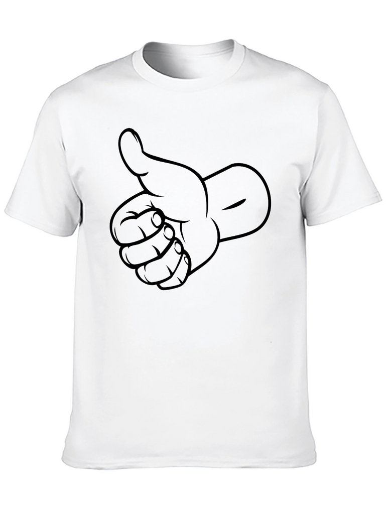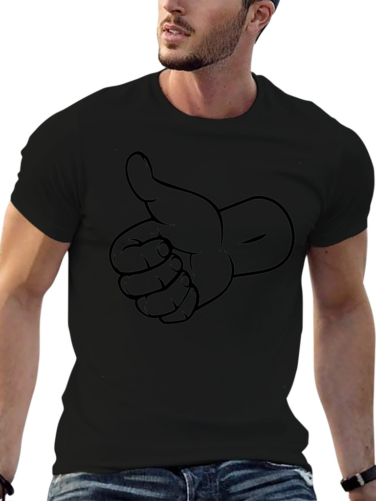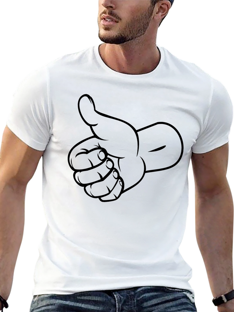 Show off your positive vibes with this bold graphic tee. Made from comfortable fabric, this t-shirt features a large thumbs-up design prominently displayed on the front. The solid color provides a clean canvas for the eye-catching graphic, making it a versatile piece for casual wear. Ideal for expressing yourself or adding a playful touch to your everyday style. Perfect for casual outings, social gatherings, or relaxing at home. Available in various sizes to ensure a great fit.