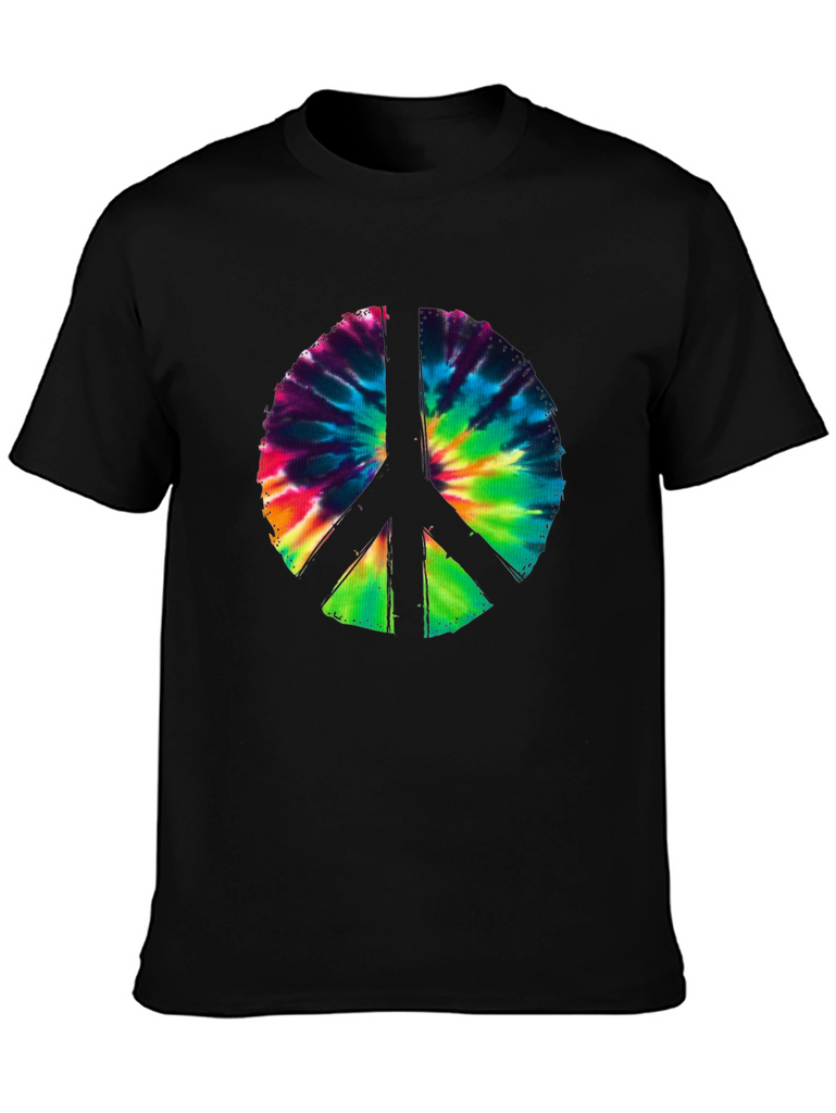 Express your inner hippie with this bold Tie Dye Peace Sign Graphic T-Shirt. The shirt features a vibrant, tie-dye peace sign design front and center. The soft fabric ensures all-day comfort. This tee is perfect for casual outings, music festivals, or simply relaxing at home. Makes a great gift for those who love retro fashion.
