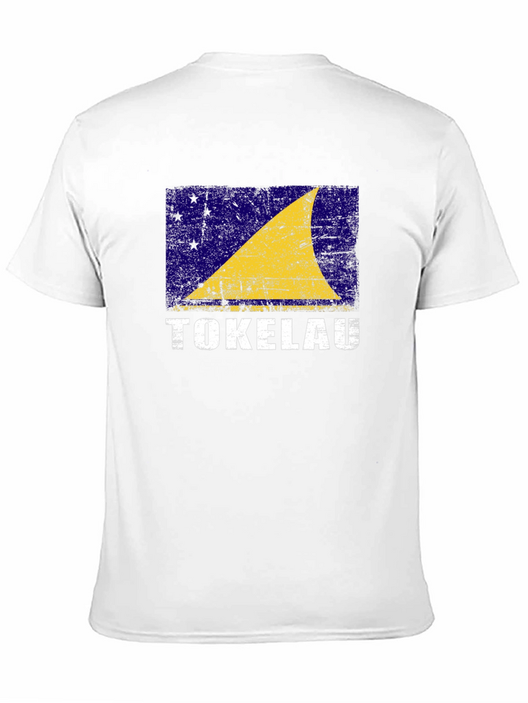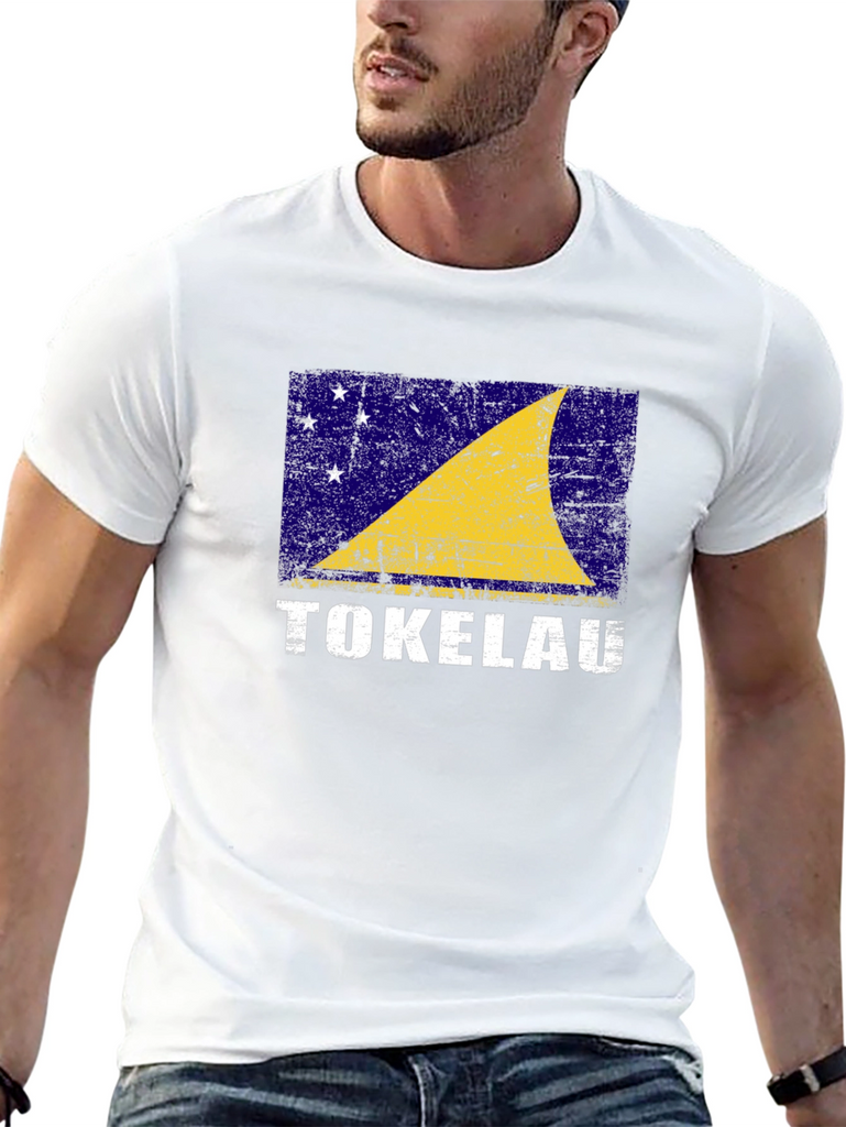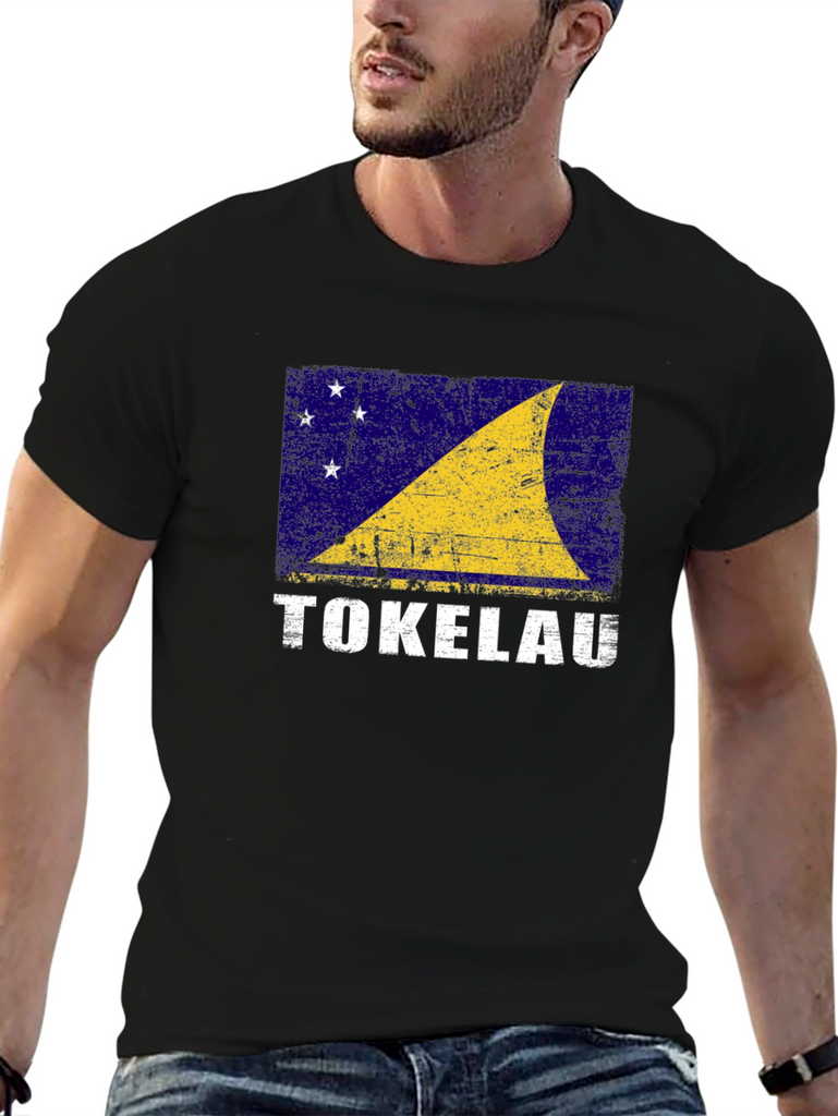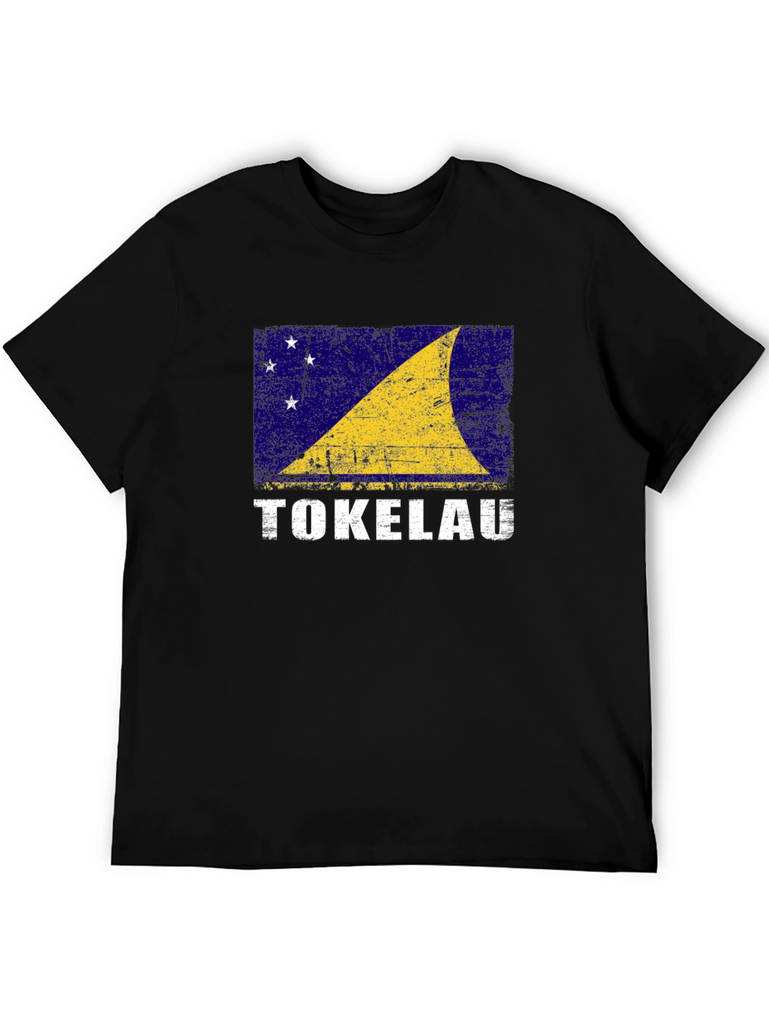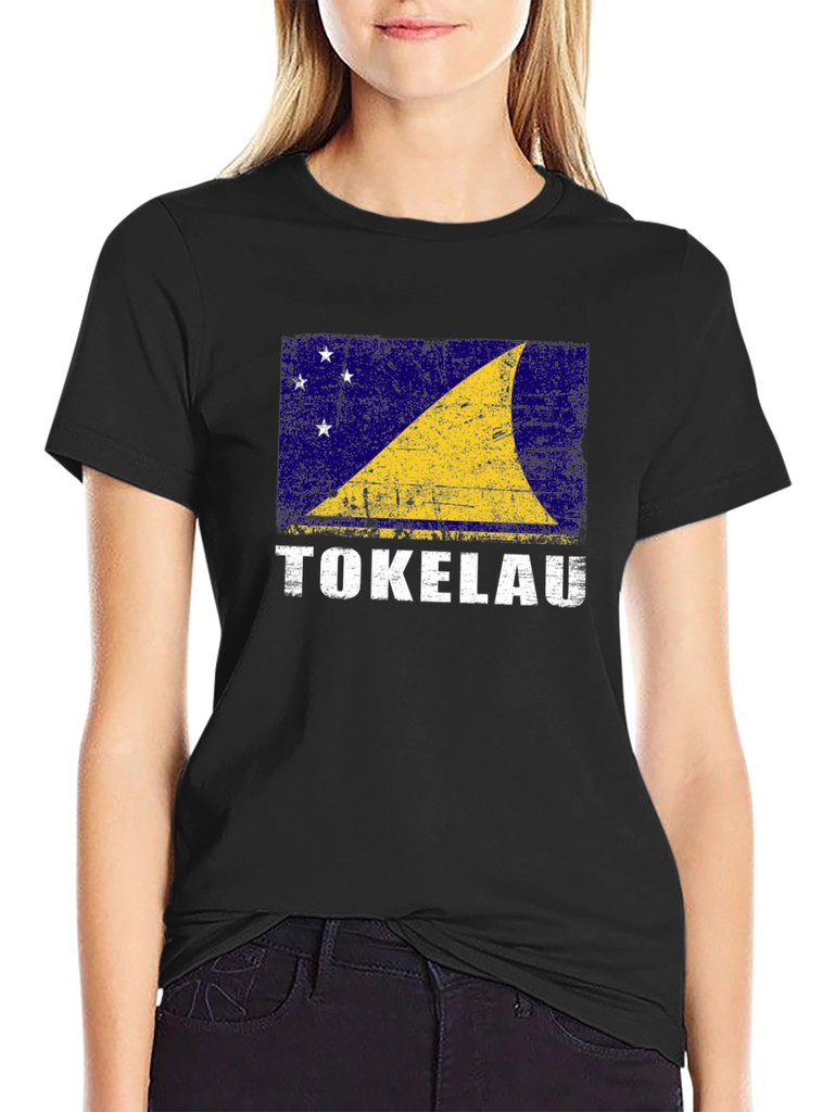 Show your love for Tokelau with this eye-catching graphic t-shirt. The design features the Tokelau flag, including its distinctive stars and stylized canoe sail, set against a vibrant blue background. 'TOKELAU' is printed in a bold, distressed white font below the flag. The shirt itself appears to be made from a comfortable black cotton or cotton blend, making it perfect for casual wear. Wear it to sporting events, cultural festivals, or just around town to display your Tokelauan pride. This unique t-shirt is a great conversation starter and a must-have for anyone with a connection to Tokelau.