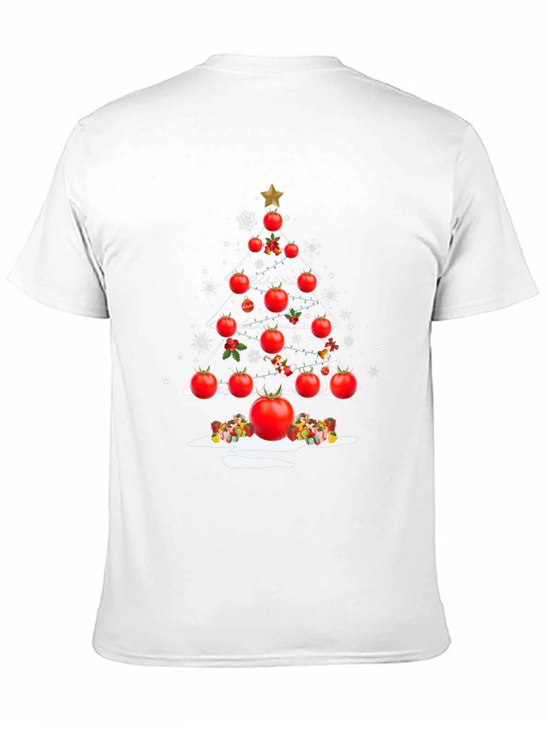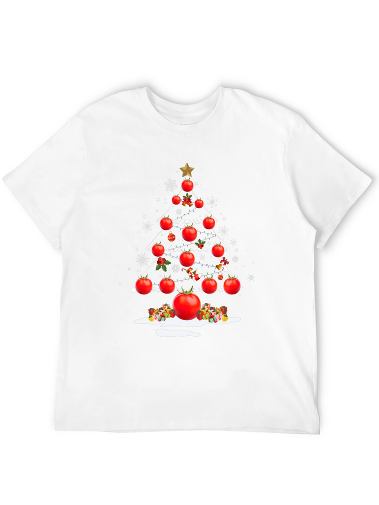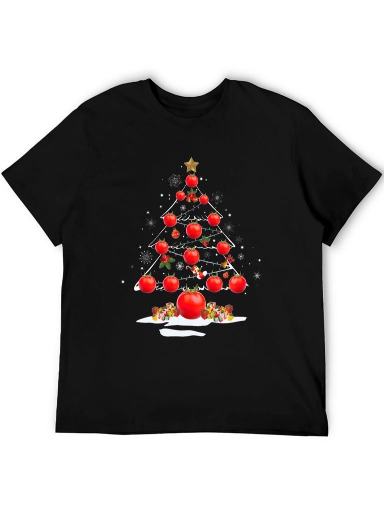 Spread holiday cheer with this unique Tomato Christmas Tree T-shirt! This eye-catching black tee features a festive Christmas tree design made entirely of vibrant red tomatoes. Atop the tree sits a golden star, adding a touch of traditional holiday sparkle. Dotted with snowflakes, twinkling lights, and a candy cane, the design also has beautifully wrapped presents at the base. Made from comfortable, breathable fabric, it's perfect for casual holiday gatherings, festive parties, or simply showing off your love for both Christmas and tomatoes. A fun and quirky addition to your winter wardrobe!