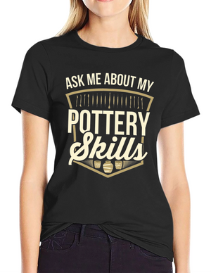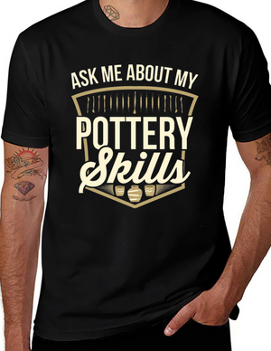 Show off your love for pottery with this eye-catching black T-shirt. Featuring a humorous "Totally Kiln It!" slogan and a vibrant graphic of various clay pots and jugs, this tee is perfect for potters, ceramics enthusiasts, and anyone who appreciates a clever pun. Made from a comfortable-looking fabric, this shirt is ideal for casual wear, pottery classes, or art studio visits. Express your passion for the craft with this unique and conversation-starting T-shirt.