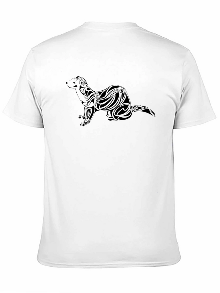 Show off your unique style with this striking black T-shirt featuring a tribal-inspired ferret graphic. The bold design showcases a sleek ferret silhouette, perfect for animal lovers and those who appreciate distinctive artwork. Made from a comfortable, breathable fabric, this tee offers a relaxed fit ideal for everyday wear. Whether you're headed to a casual outing or just relaxing at home, this T-shirt adds a touch of personality to any outfit. The shirt's simple design makes it versatile for layering or wearing on its own. Grab yours today!