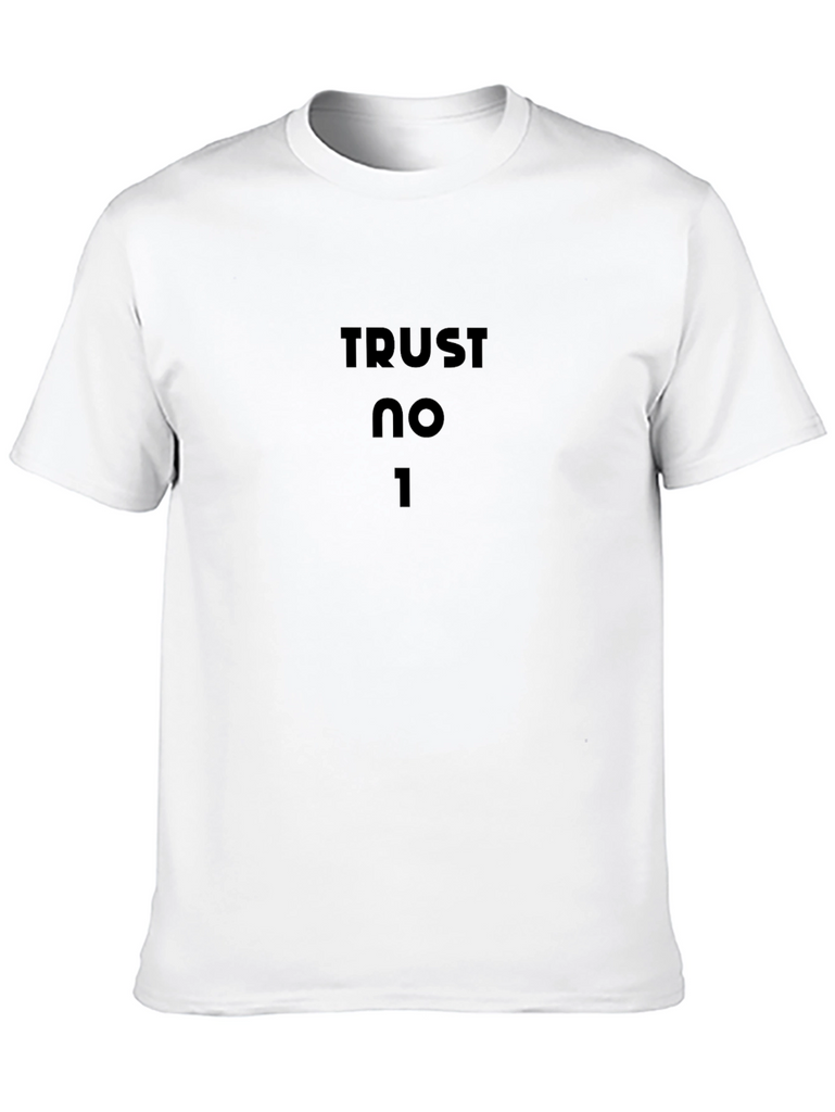 Showcase your unique style with this striking black t-shirt. The bold "TRUST NO 1" graphic makes a statement. Crafted from a soft, comfortable material, it's perfect for everyday wear. This classic crew-neck design offers a relaxed fit. Dress it up with jeans and a jacket, or keep it casual with shorts. Ideal for those who value individuality and self-reliance. Whether you're hitting the streets or chilling with friends, this tee will keep you looking and feeling your best. Make a statement without saying a word!