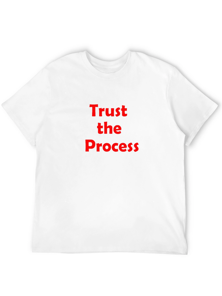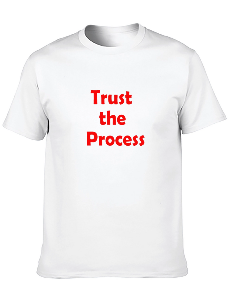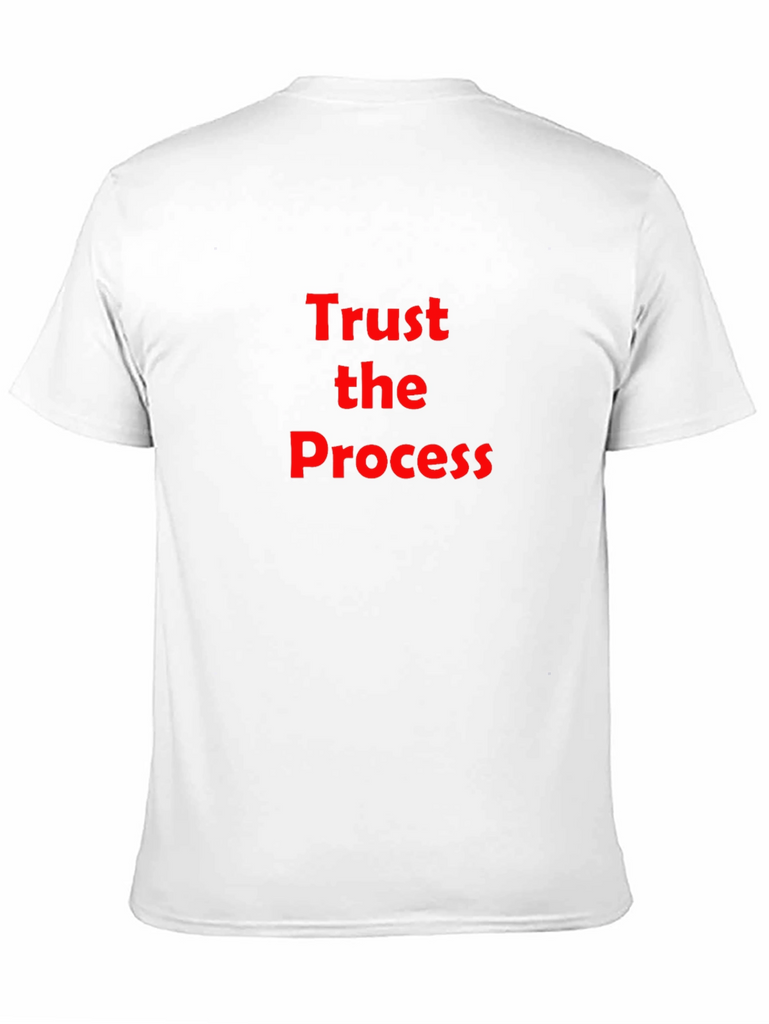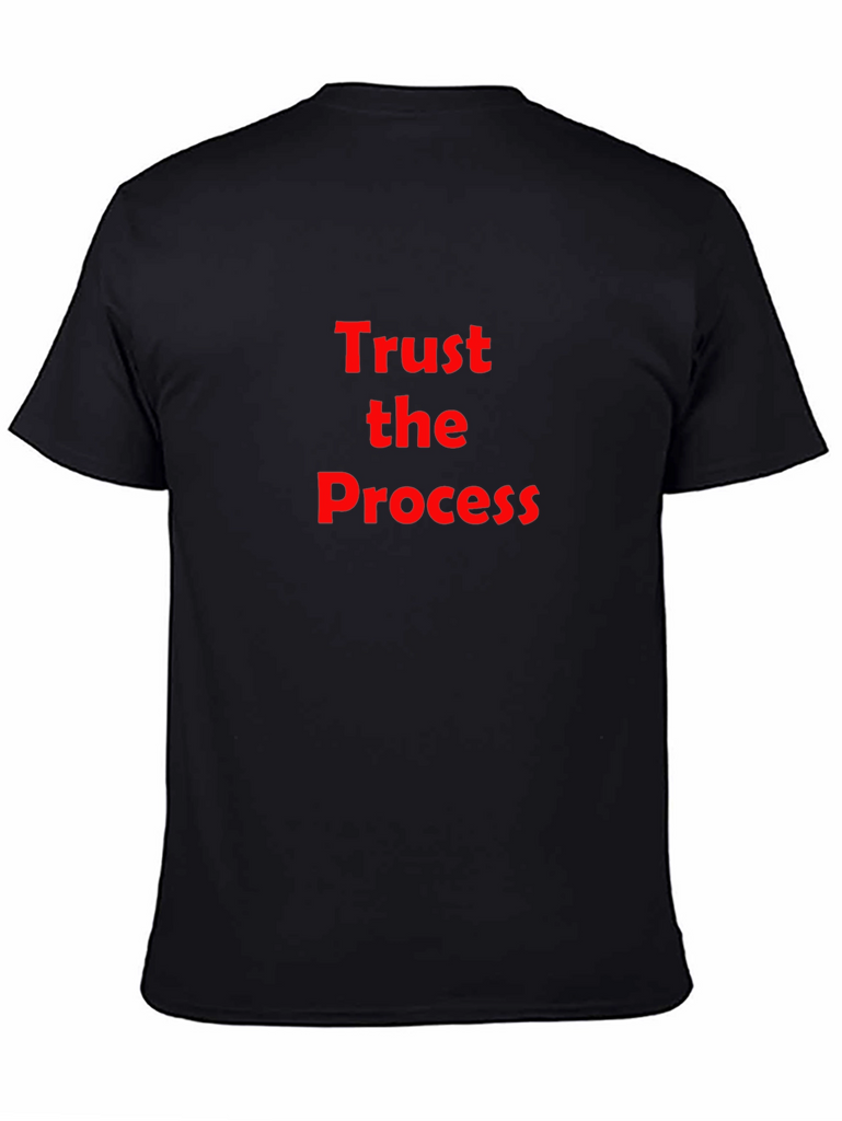 Show your support with this black 'Trust the Process' T-shirt. Featuring a bold, red text design, this classic tee is perfect for casual wear. The shirt appears to be made from comfortable, breathable material, ideal for everyday activities or workouts. Whether you're hitting the gym, running errands, or simply relaxing at home, this t-shirt lets you display your mindset with confidence. This T-shirt is sure to become a wardrobe favorite. Get yours today and embrace the journey!