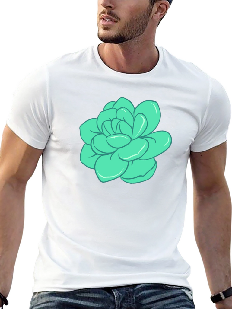 This classic black t-shirt features a vibrant turquoise flower graphic, adding a pop of color and personality to your wardrobe. Made from a comfortable-looking, breathable fabric, this short-sleeve tee is perfect for everyday wear. The eye-catching floral design makes it a stylish choice for casual outings, while the relaxed fit ensures all-day comfort. Pair it with your favorite jeans or shorts for an effortless, fashionable look. This unique graphic tee is sure to become a staple in your collection. Showcase your love for nature and stand out from the crowd with this must-have piece.