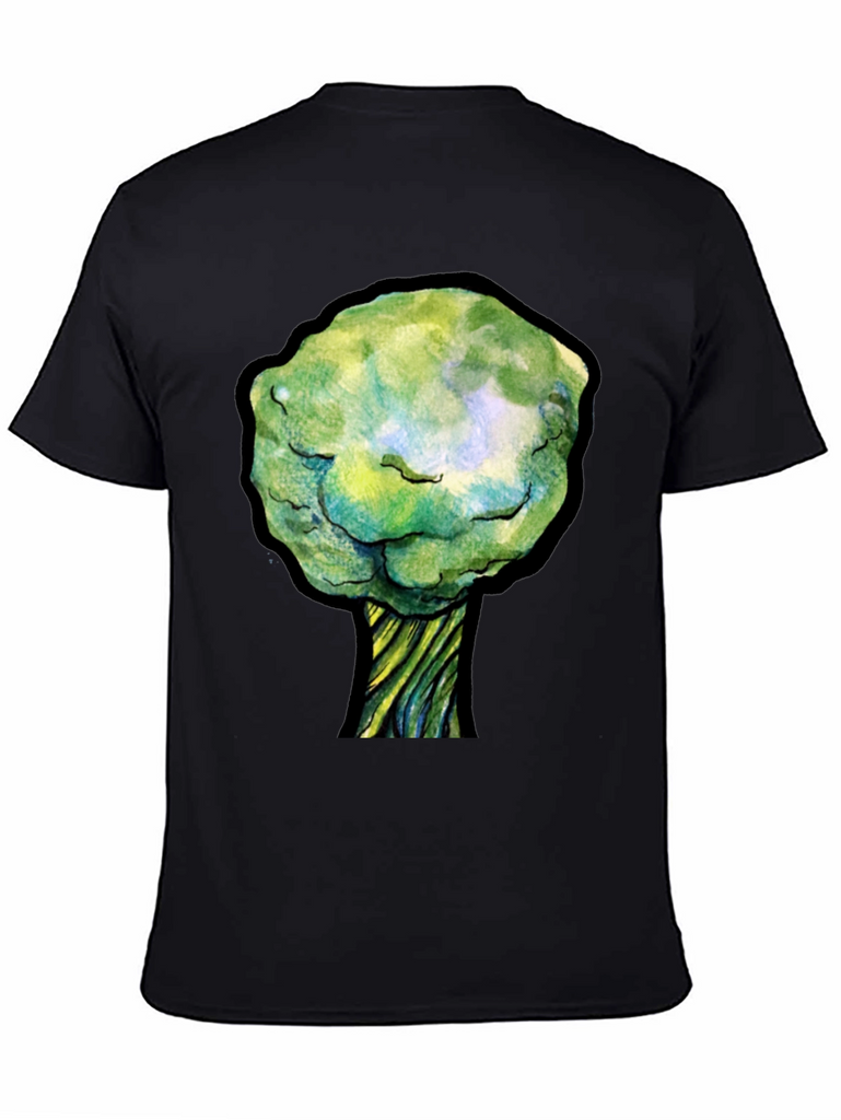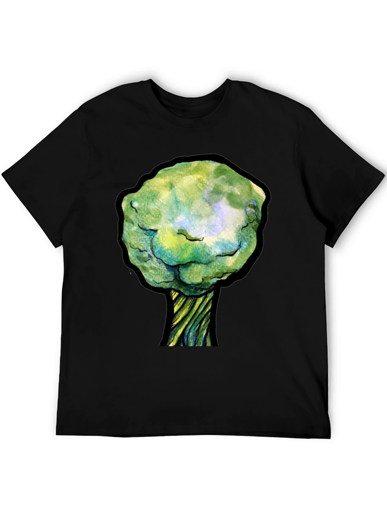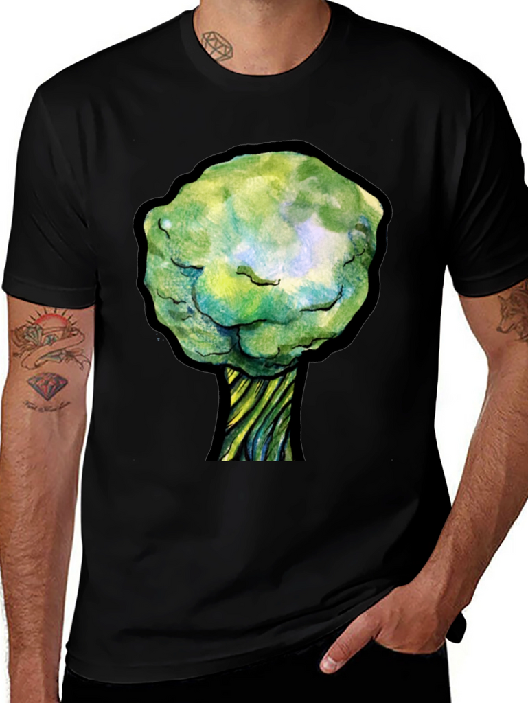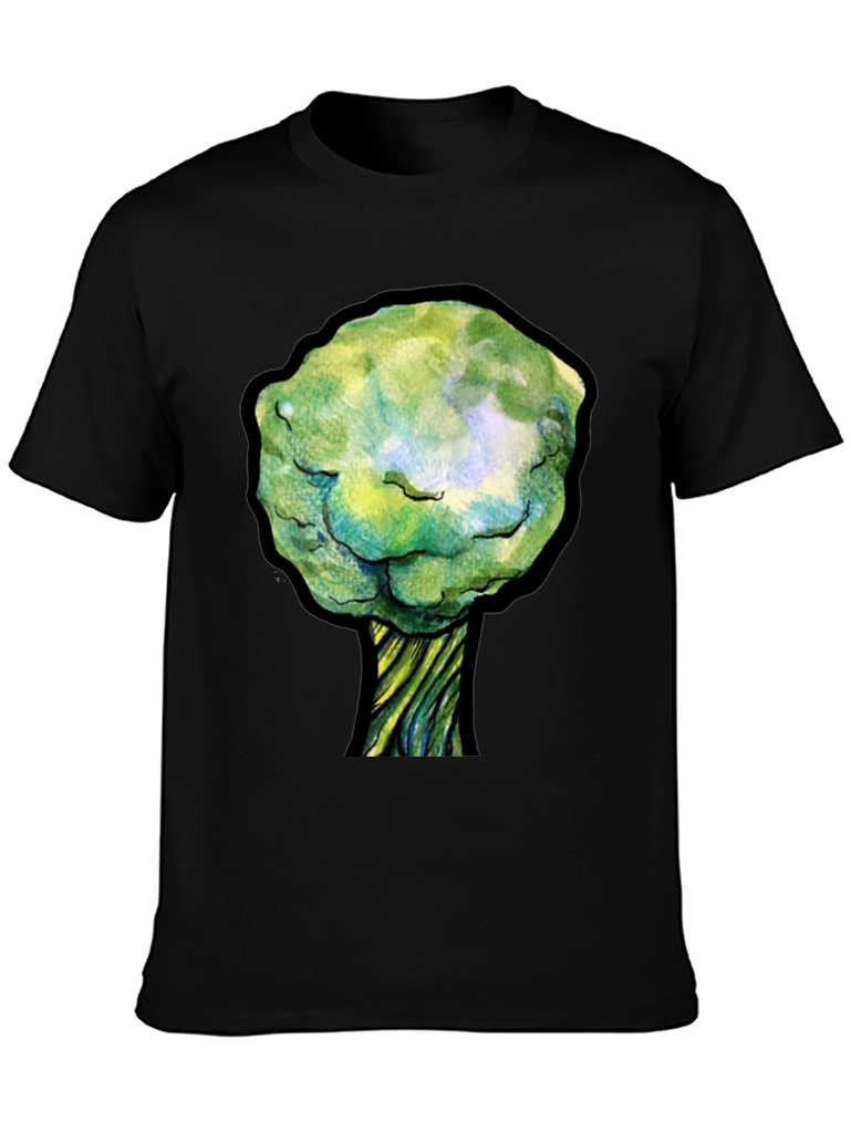 Show off your unique style with this eye-catching black t-shirt. This casual tee features a vibrant, stylized tree graphic with a lush, watercolor-esque canopy in shades of green and blue, contrasted by a textured, twisting trunk. The design has a bold black outline. Perfect for everyday wear, this comfortable shirt is sure to turn heads. Ideal for nature lovers, art enthusiasts, or anyone looking to add a pop of color and creativity to their wardrobe. Wear it casually with jeans, or dress it up with a jacket for a more put-together look. A comfortable and stylish addition to your closet.