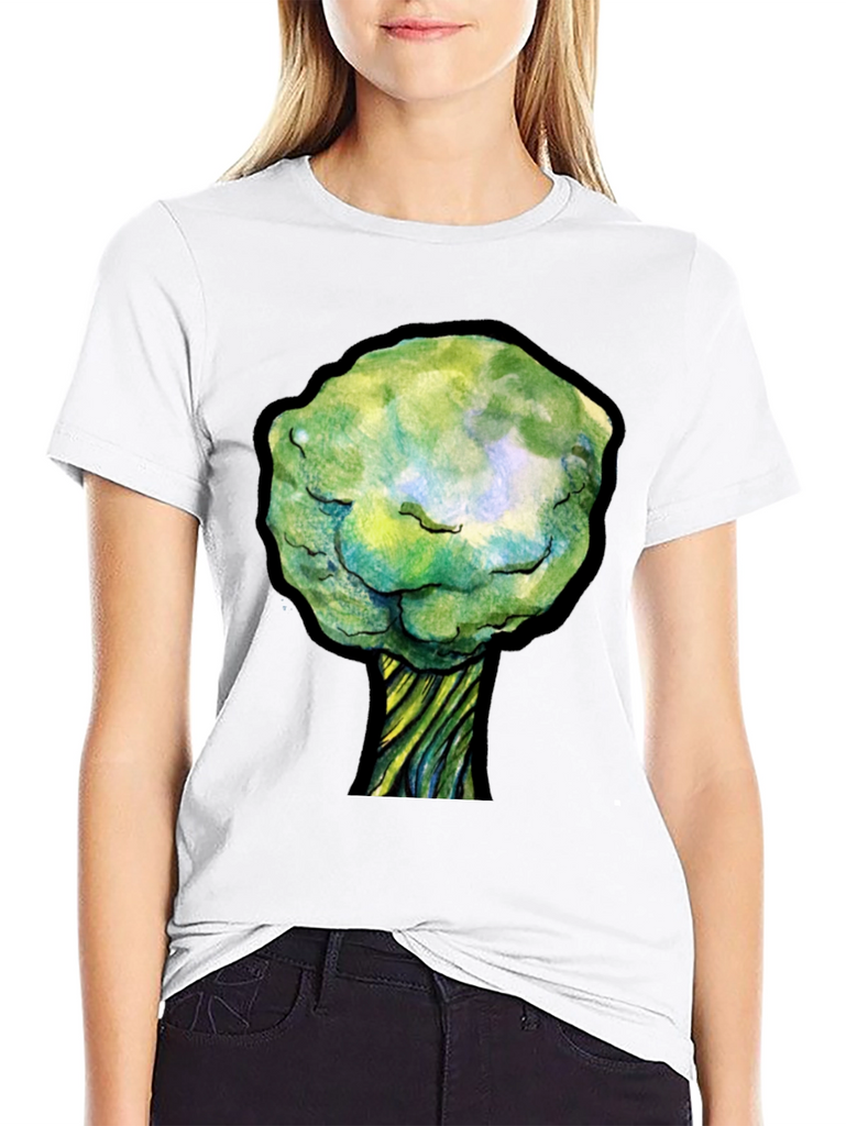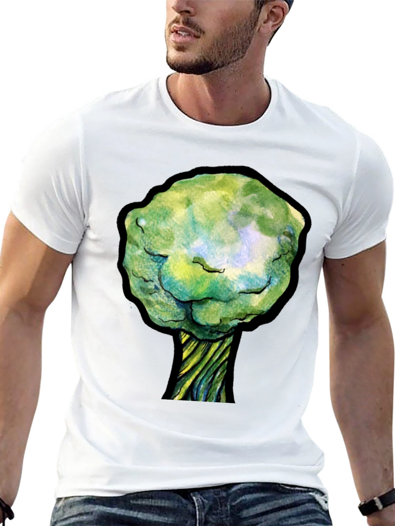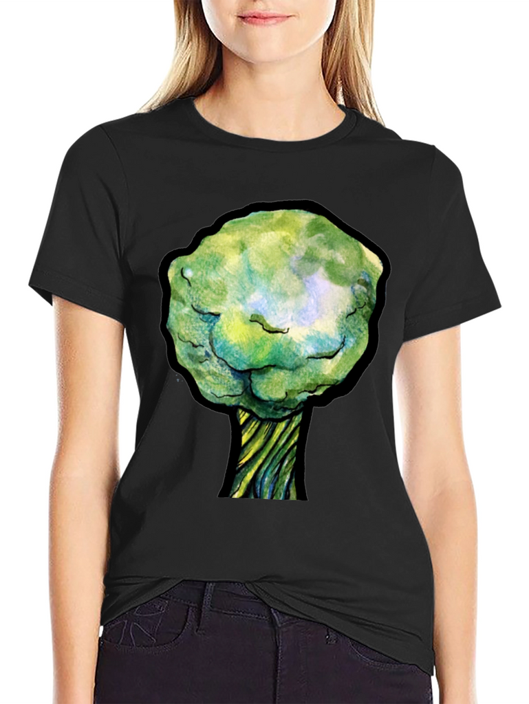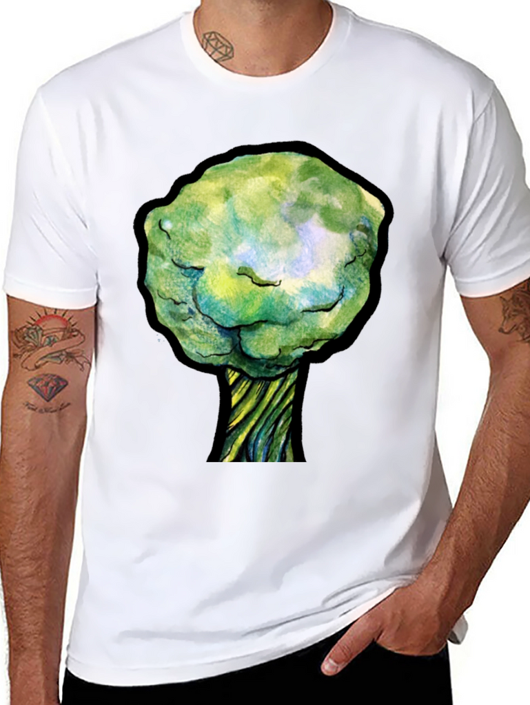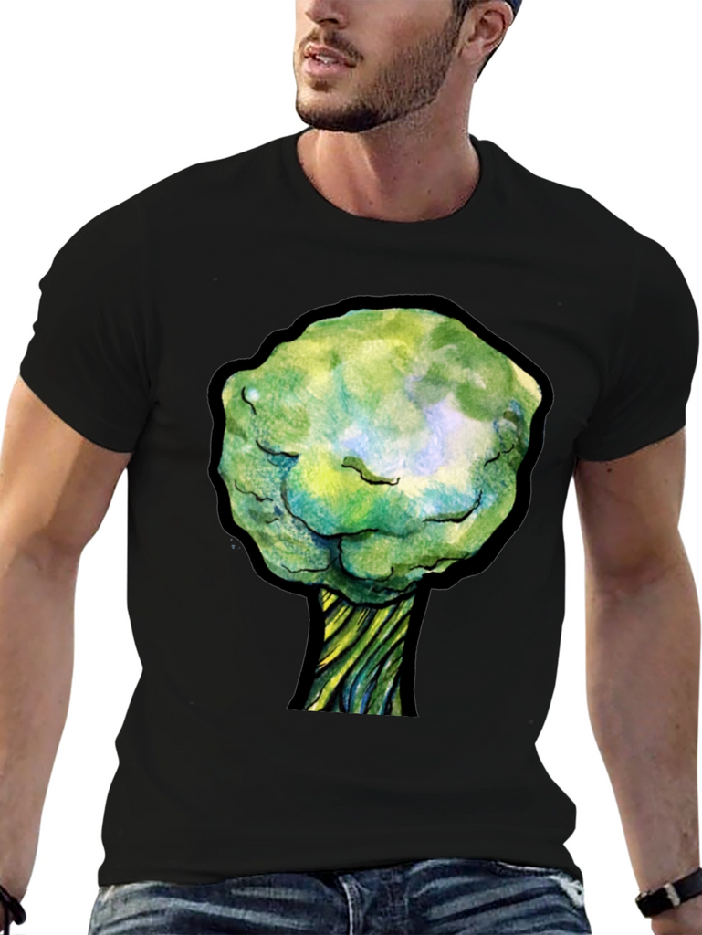 Show off your unique style with this eye-catching black t-shirt. This casual tee features a vibrant, stylized tree graphic with a lush, watercolor-esque canopy in shades of green and blue, contrasted by a textured, twisting trunk. The design has a bold black outline. Perfect for everyday wear, this comfortable shirt is sure to turn heads. Ideal for nature lovers, art enthusiasts, or anyone looking to add a pop of color and creativity to their wardrobe. Wear it casually with jeans, or dress it up with a jacket for a more put-together look. A comfortable and stylish addition to your closet.
