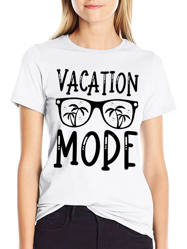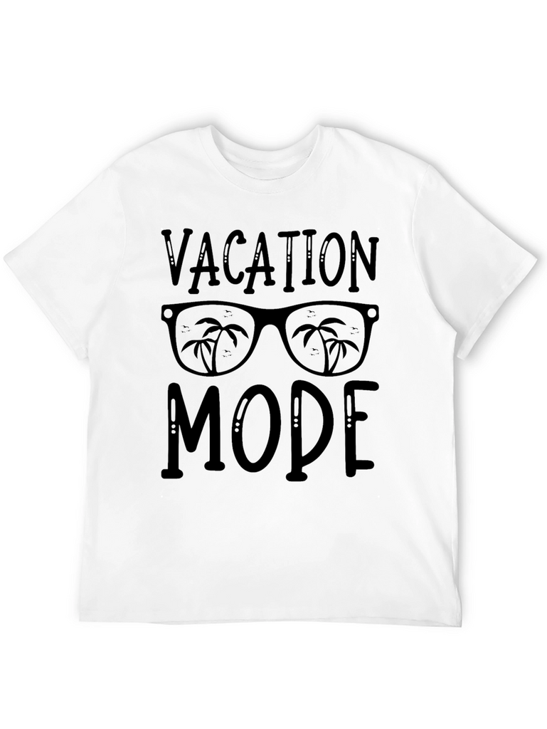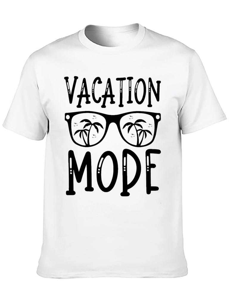 Get into vacation mode with this stylish black graphic t-shirt! Featuring the words "VACATION MODE" with a cool sunglasses design reflecting palm trees, this shirt is perfect for your next getaway. The relaxed fit and soft fabric ensure all-day comfort, whether you're lounging by the pool or exploring a new city. Dress it up with shorts or wear it casually with jeans. This tee is a must-have for any traveler or anyone dreaming of their next vacation. Upgrade your wardrobe and let everyone know you're in vacation mode!