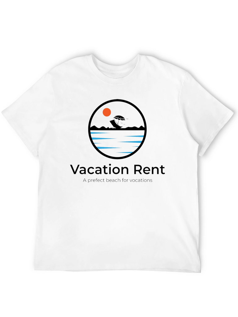 This black t-shirt features a stylish beach-themed graphic, perfect for vacation vibes. The design includes a sunset, ocean waves, and a relaxing beach scene inside a circle. Below the graphic, the words "Vacation Rent" are printed. Made from a soft, comfortable fabric, this tee is ideal for casual wear, beach outings, or simply showing off your love for vacation. A great gift for travel lovers or as a stylish addition to your own wardrobe. A prefect beach for vocations.