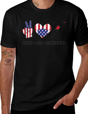 Show your support for vaccination with this bold, black t-shirt. The shirt features the powerful message "Vaccination Saves Lives" in eye-catching orange and yellow lettering. Made from a soft, comfortable fabric, this tee is perfect for everyday wear. Its classic fit and casual style make it versatile for various occasions, from casual outings to awareness events. Wear it proudly to spark conversations and promote a vital message of public health. Let your attire reflect your values with this impactful and meaningful t-shirt.