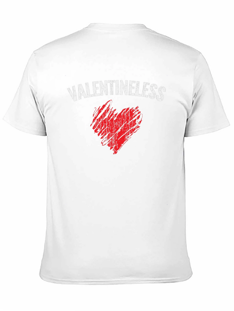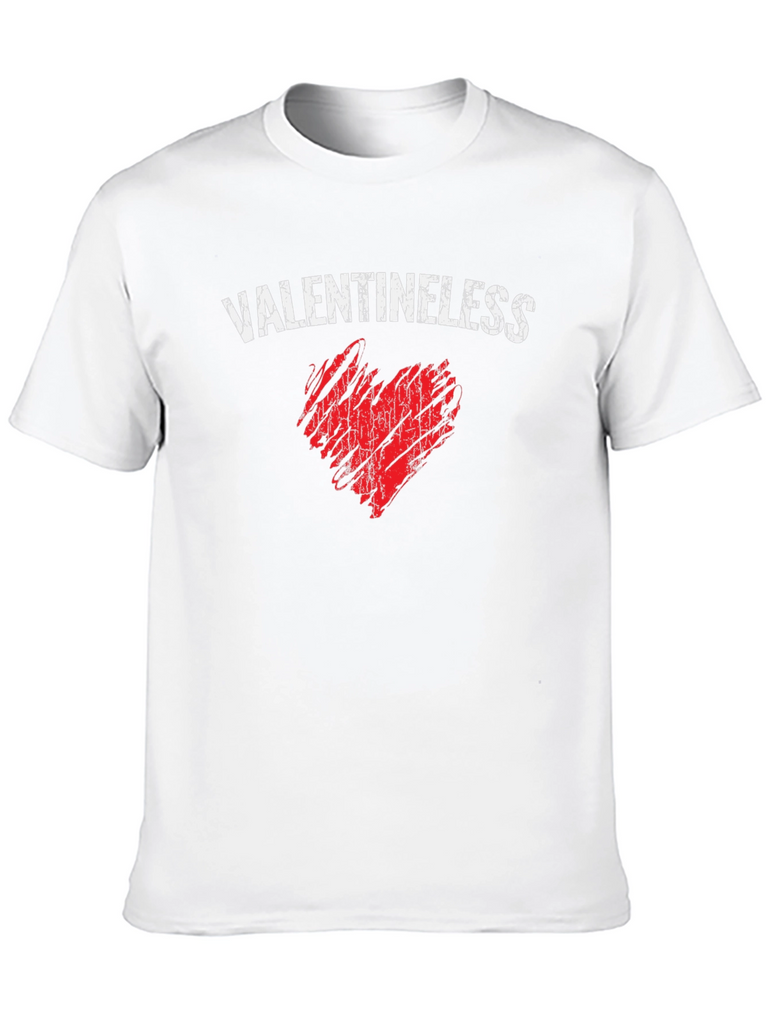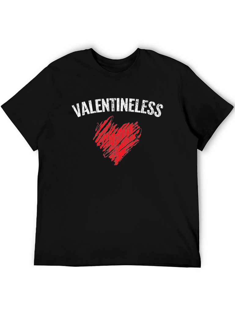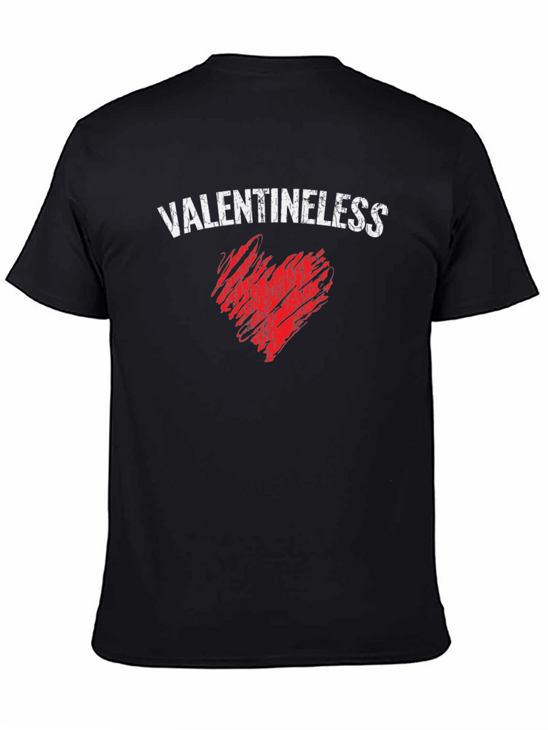 Embrace your single status with this bold and humorous 'Valentineless' graphic t-shirt. Made from a soft, comfortable black fabric, this tee features a distressed-style white text design and a striking red, scratched-out heart graphic. The short-sleeve design is perfect for casual wear, while the witty slogan makes it an ideal choice for those who prefer to celebrate self-love over traditional Valentine's Day romance. Wear it proudly on February 14th or any day you want to showcase your independent spirit. This shirt is sure to spark conversation and turn heads.