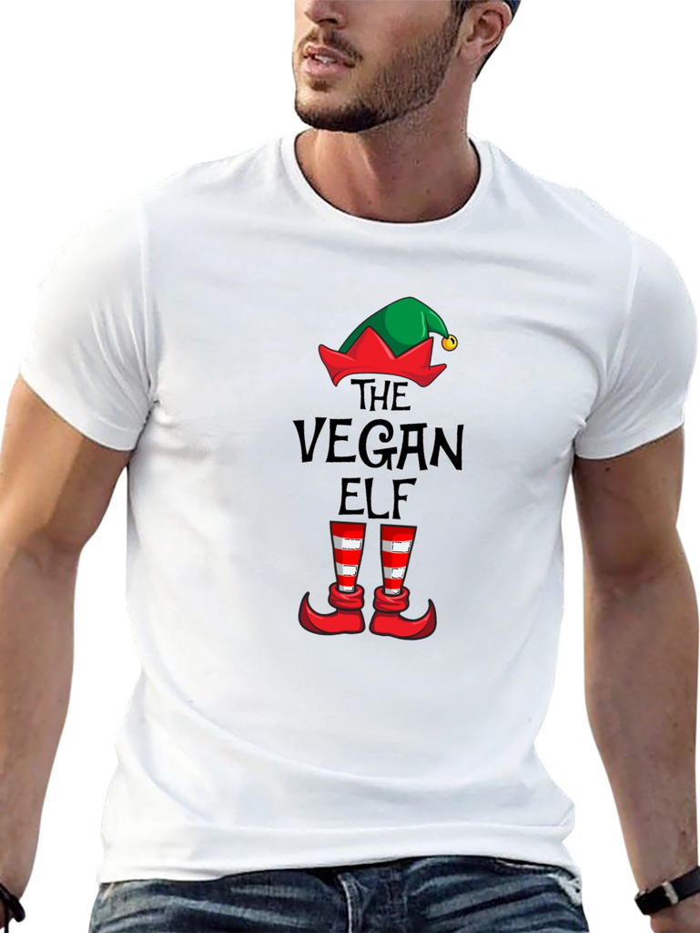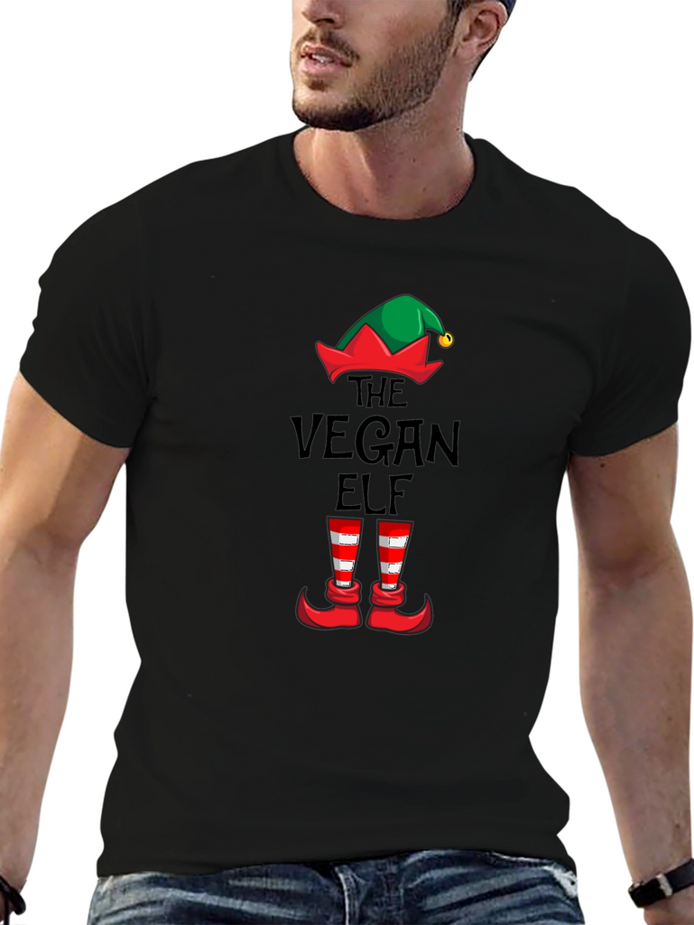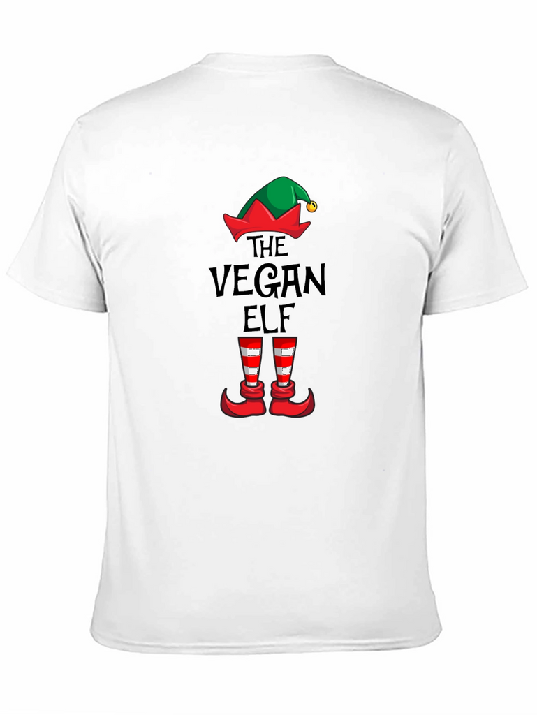 Spread holiday cheer with this fun and festive "Vegan Elf" t-shirt. The design features a playful elf hat with a golden bell and striped elf shoes. This shirt is perfect for vegan Christmas celebrations, holiday parties, or casual everyday wear. Show off your plant-based lifestyle with this unique and eye-catching tee. A great gift idea for the compassionate vegan in your life.