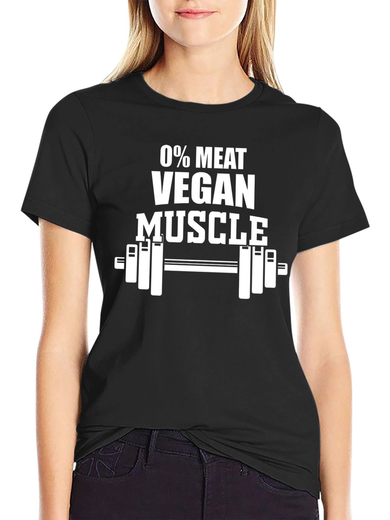 Showcase your plant-powered physique with this bold "0% Meat Vegan Muscle" T-shirt. The design features a barbell graphic combined with a clever slogan, perfect for vegan athletes and fitness enthusiasts. Made from a soft, breathable black fabric, this tee offers both comfort and style. Its classic fit makes it ideal for workouts, casual outings, or simply spreading the vegan message. Wear it proudly at the gym, health food stores, or your next vegan meetup. Make a statement about your commitment to a healthy, sustainable lifestyle with this eye-catching T-shirt.