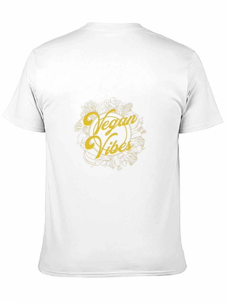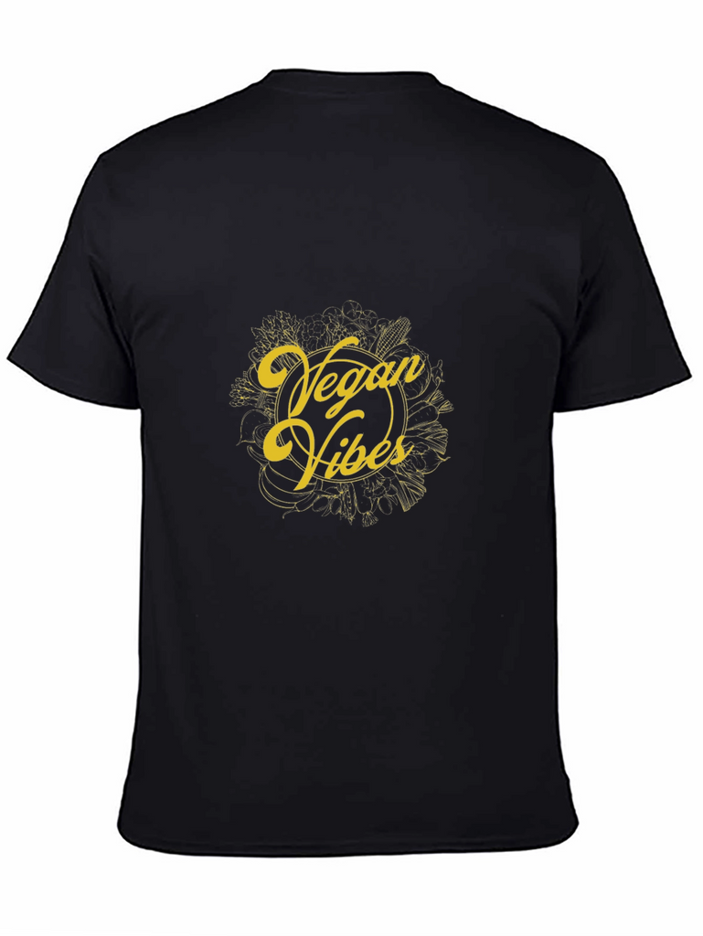 Express your love for veganism with this stylish black t-shirt. The shirt features a unique "Vegan Vibes" design in a striking yellow color, surrounded by a decorative arrangement of vegetables. Made from a soft and comfortable fabric, this tee is perfect for everyday wear. Whether you're hitting the gym, running errands, or simply relaxing at home, this t-shirt will keep you feeling and looking great. Show off your plant-based pride and spread positive vibes wherever you go with this must-have wardrobe staple.