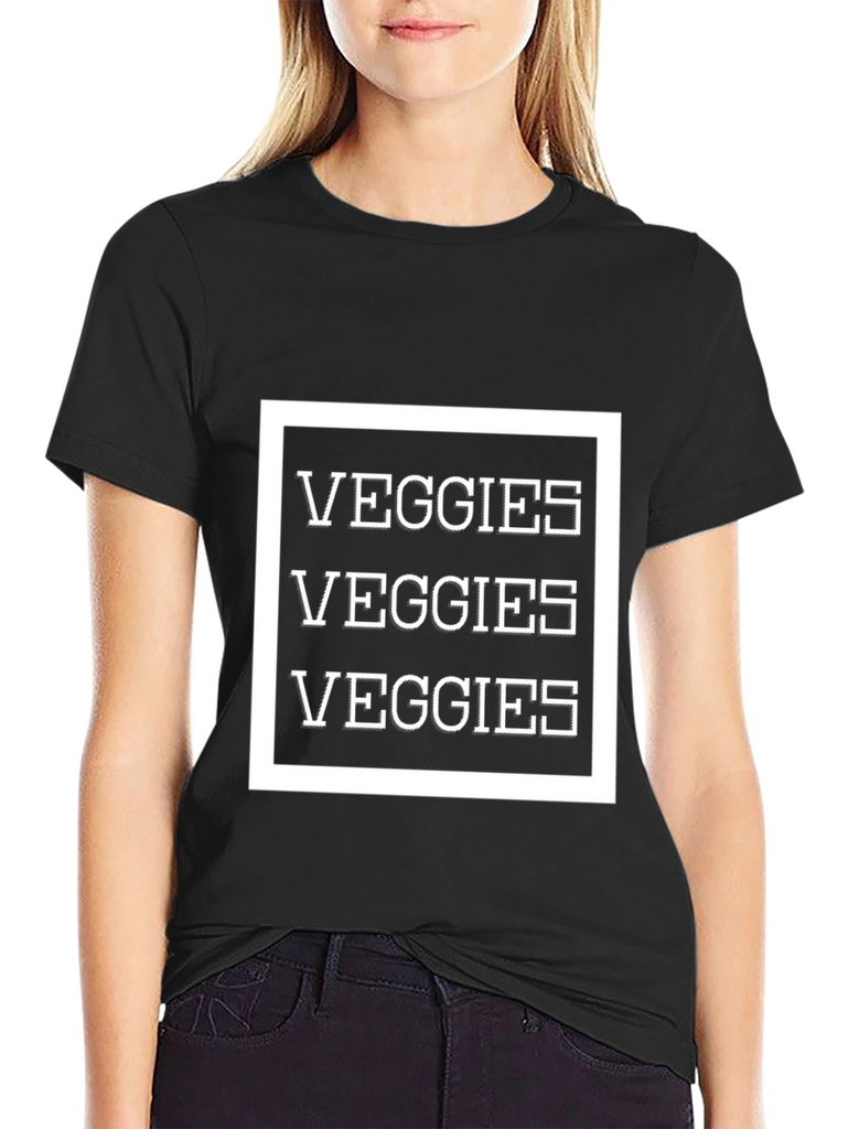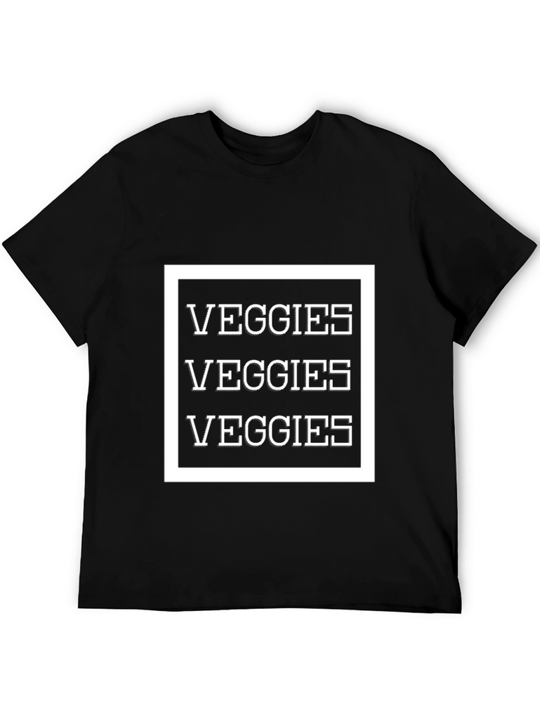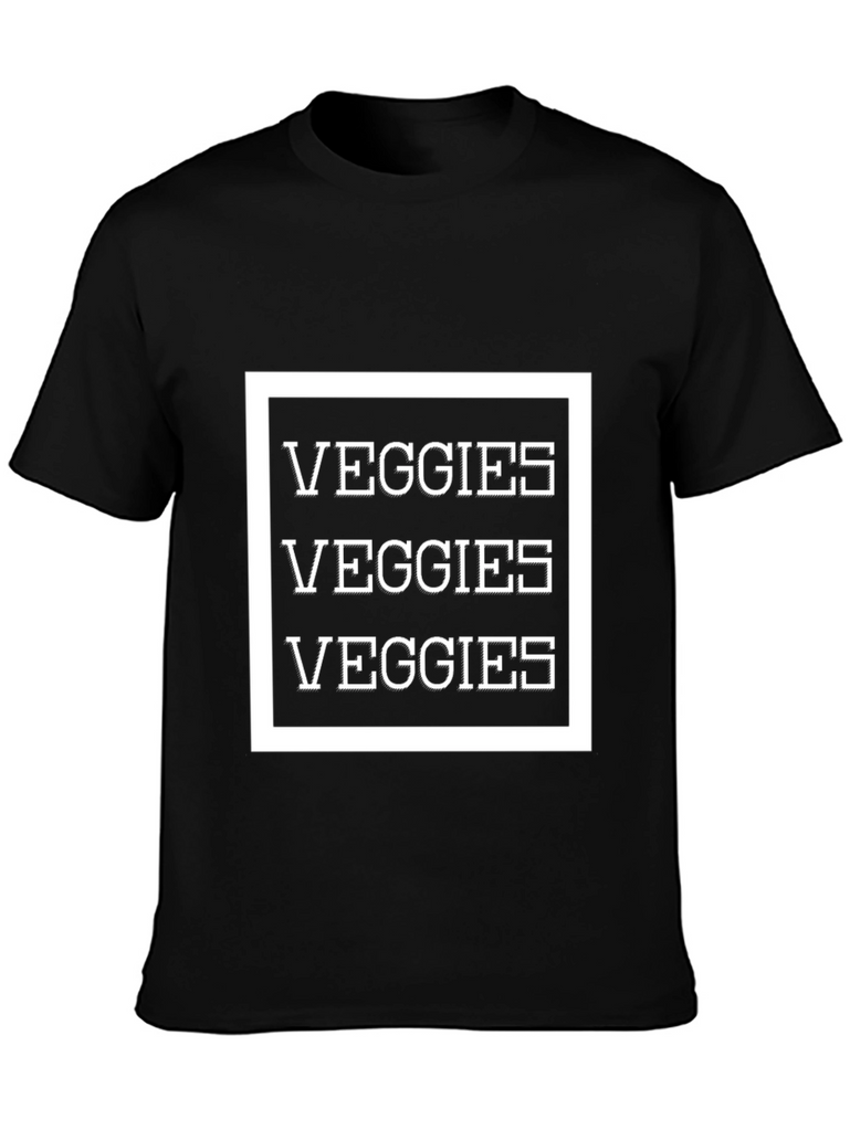 Embrace a fun and healthy lifestyle with this eye-catching black graphic t-shirt! The shirt features a bold, repeated "VEGGIES" print in a classic white font, set within a square design on the chest. Made from a comfortable-looking fabric, this tee is perfect for casual wear, gym sessions, or simply expressing your love for veggies. Its simple yet stylish design pairs effortlessly with jeans, shorts, or leggings, making it a versatile addition to any wardrobe. Show off your fun side and healthy habits!