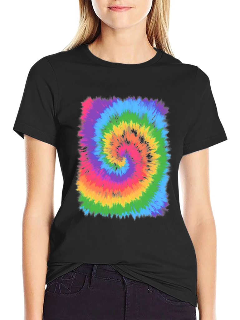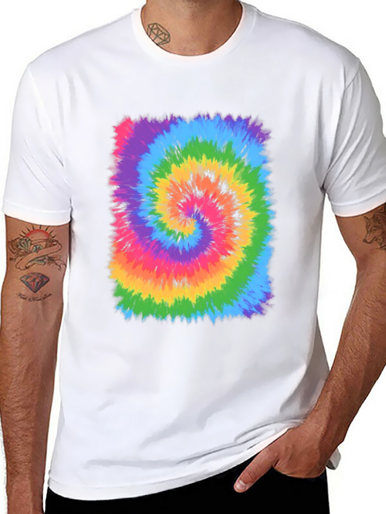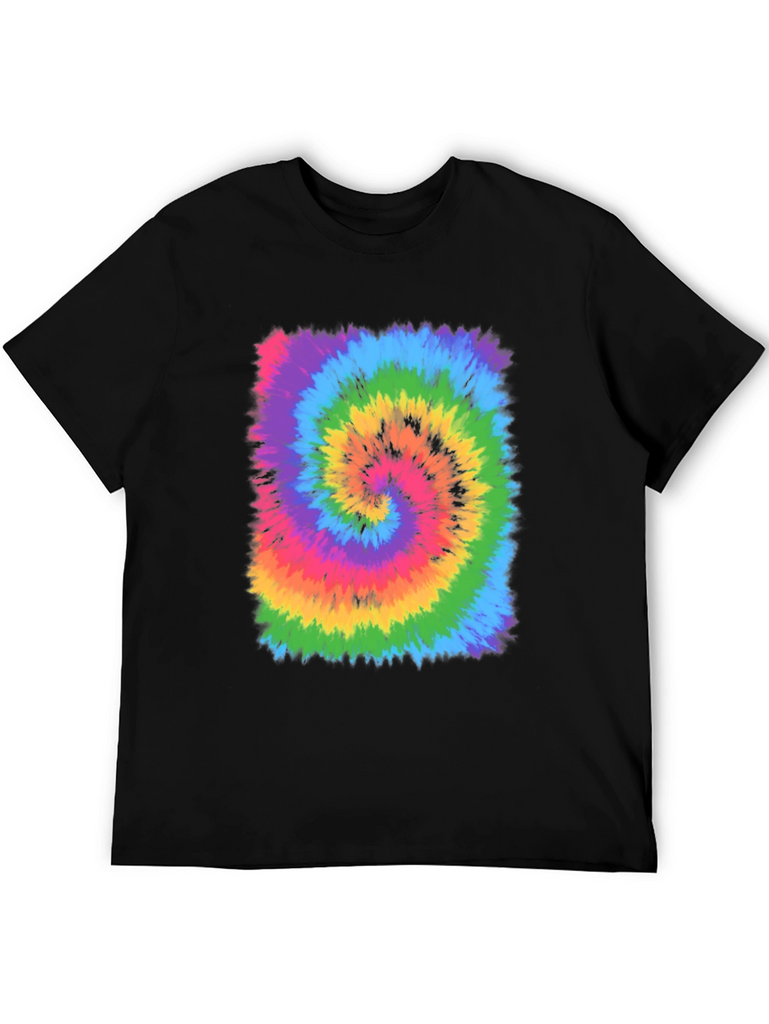 Showcase your groovy side with this vibrant tie-dye swirl graphic t-shirt. Featuring a mesmerizing array of colors including rainbow, blue, green, yellow, orange, and pink, this tee is sure to turn heads. The classic crew neck and short sleeves make it a comfortable and versatile choice for everyday wear. Made from soft, breathable fabric, this shirt is perfect for concerts, festivals, or casual outings. Add a pop of color and retro charm to your wardrobe with this eye-catching tie-dye masterpiece. Pair with jeans, shorts, or a skirt for a fun and stylish look.