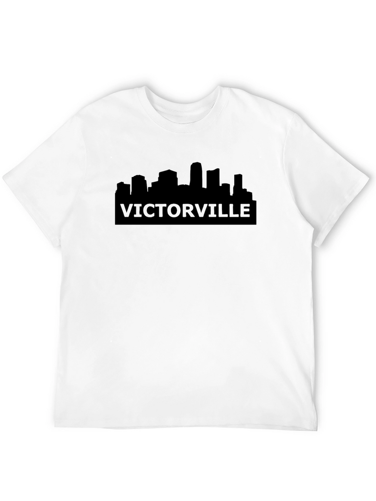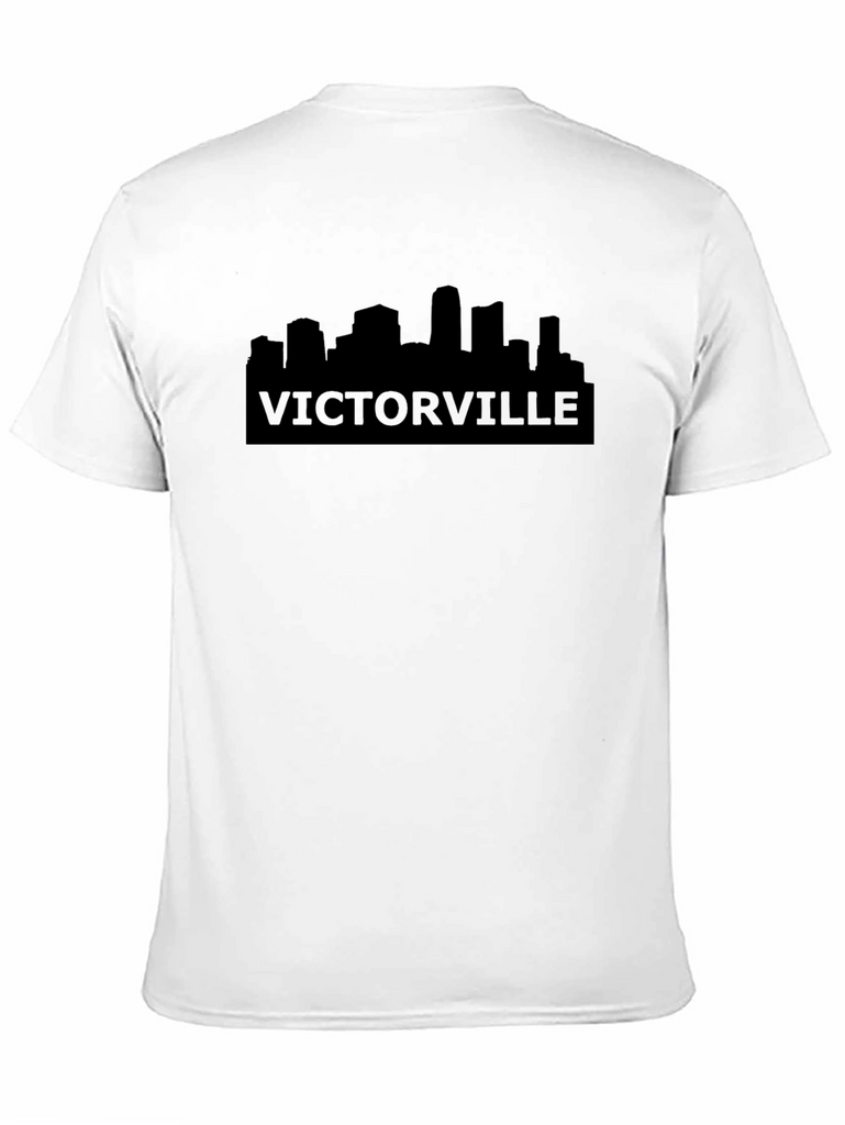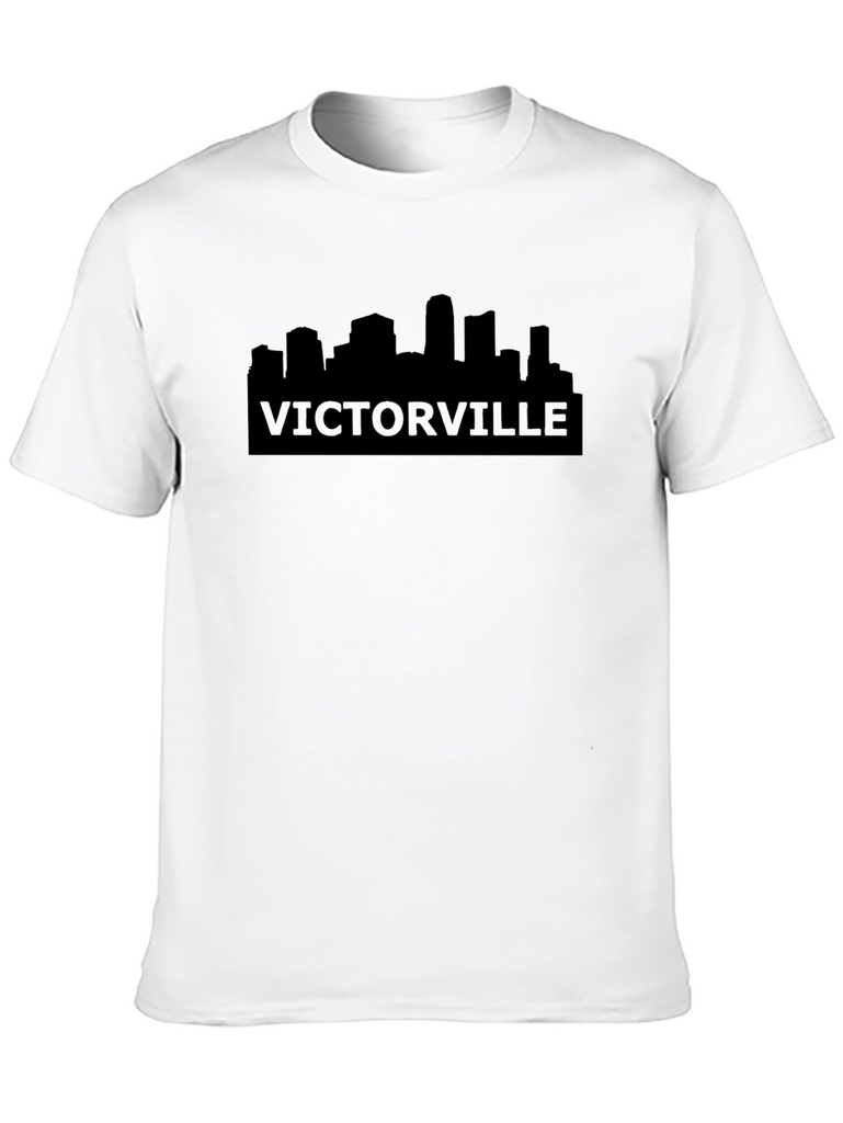 Show your town pride with this Victorville skyline t-shirt. The tee features a minimalist silhouette of the Victorsville skyline and the town name, rendered in a dark shade on a black background. The design gives it a modern, understated look. Made from a comfortable, breathable fabric, this t-shirt is perfect for everyday wear. The classic cut ensures a relaxed fit for any casual occasion. Whether you're a lifelong resident or just love the vibe of Victorville, this shirt is a subtle yet stylish way to show your appreciation. Dress it up or down; it pairs well with jeans, shorts, or even a casual jacket.
