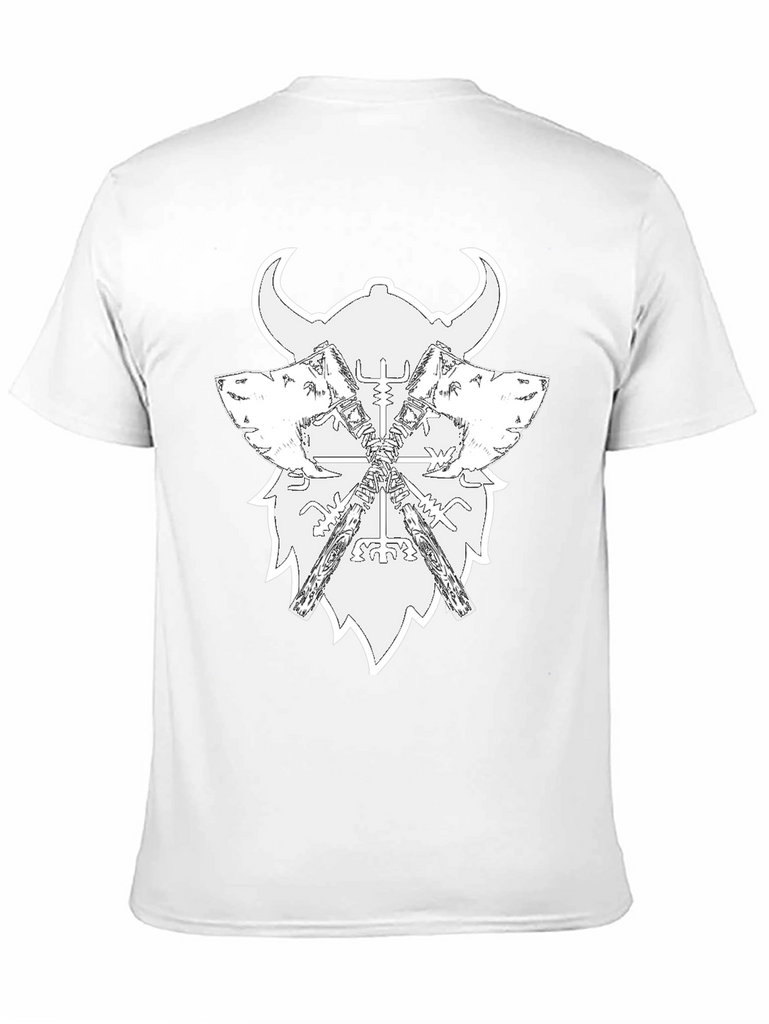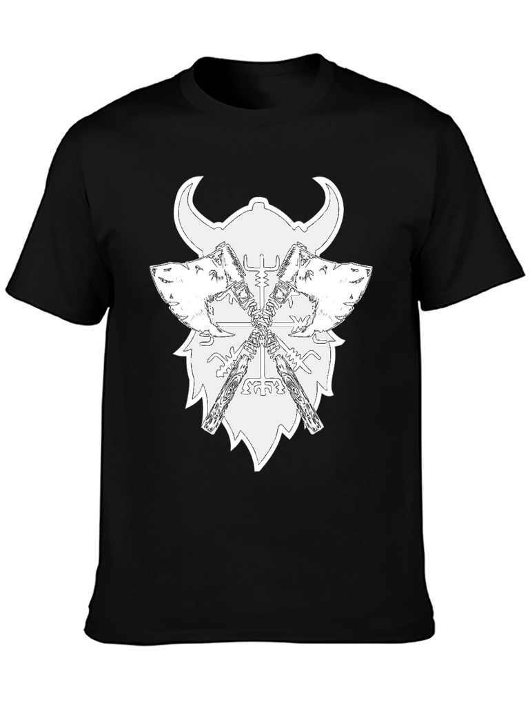 Show your inner warrior with this striking Viking-themed t-shirt. The shirt features a bold graphic of crossed axes overlaid on a Viking helmet. The black material provides a sleek backdrop for the detailed white design. This tee is perfect for casual wear, historical events, or simply showcasing your love for Viking culture. Made from comfortable, breathable fabric for all-day wear. Make a statement with this one-of-a-kind t-shirt. A must-have for any Viking enthusiast!